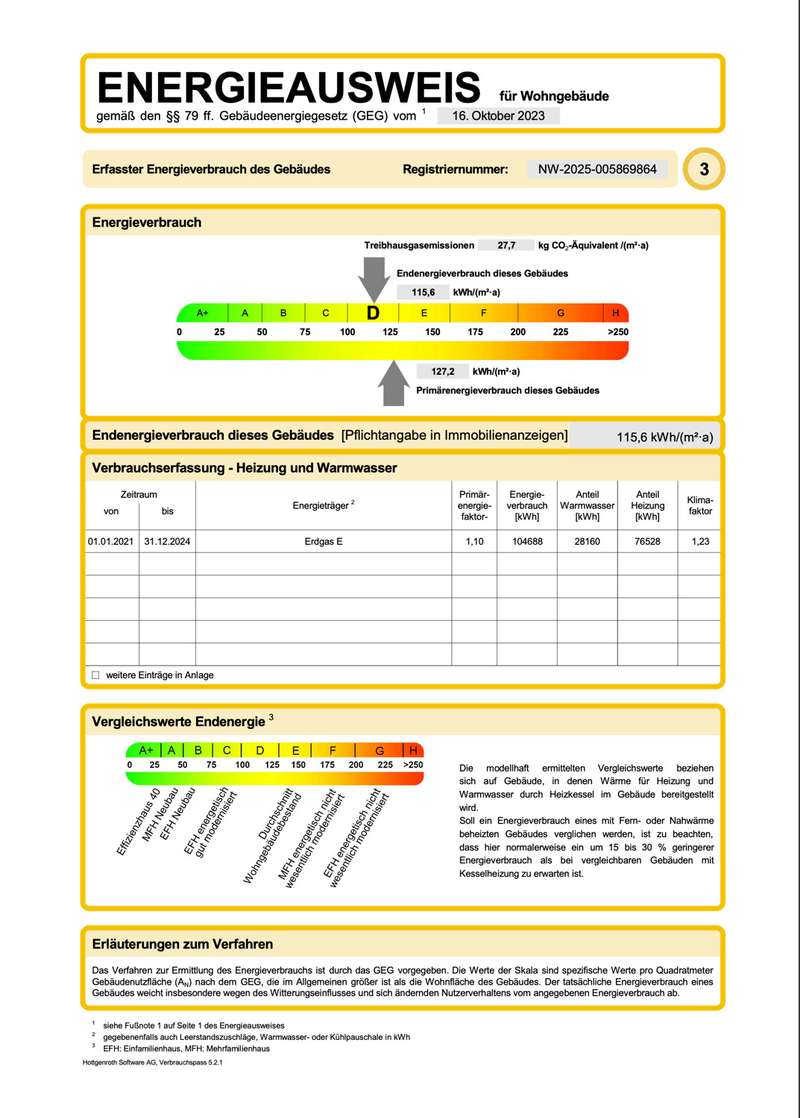 This property is presented to you by: Julian Daut & Laura Stolke Office: 05241 - 211 99 90 Spacious 4-room apartment in a two-family house | quiet living in a mature residential area This well-kept top-floor apartment is located in a two-family house built in 1985 and offers a comfortable amount of space for a variety of living requirements on a living area of around 110 m². The apartment has a total of four rooms, including three possible bedrooms that can be used flexibly as children's rooms, study rooms or guest rooms. The living/dining area forms the heart of the apartment. Generous window areas provide pleasant lighting and create a friendly atmosphere. From here, you have direct access to the west-facing covered loggia. Turn your loggia into a second living room and round off the evening here with a glass of wine. The generously proportioned kitchen is located separately from the living area and is equipped with a functional fitted kitchen, creating plenty of space for cooking together. The daylight bathroom, which is equipped with both a bathtub and a shower, also promises comfort. The underfloor heating installed on this floor ensures even heat distribution and a cozy feeling in all rooms. To round things off, the loft has practical storage space. Further amenities include a private cellar room, which offers additional space for hobbies and supplies, as well as a carport. With an optimal room layout, a quiet location and functional features, this apartment presents itself as your new home. We look forward to presenting this condominium to you in person and would be happy to arrange a viewing appointment. Please understand that only written inquiries with a full address and telephone number can be processed. A viewing can only take place with a financing confirmation. Should you require further assistance in this regard, we will be happy to put you in touch with our colleagues at VON POLL FINANCE.