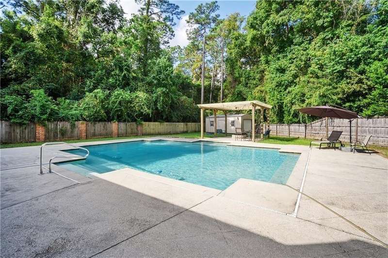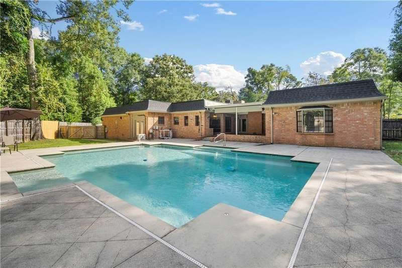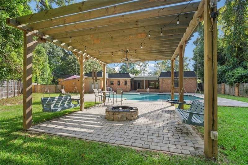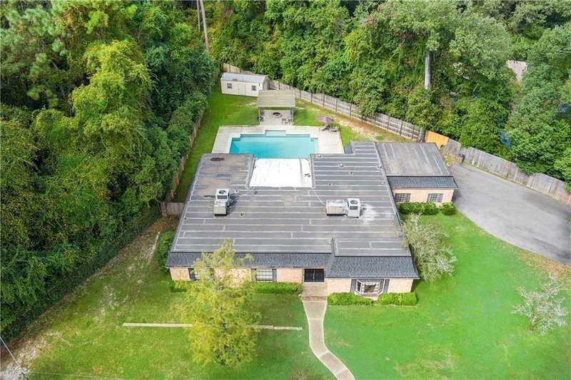 If you are looking for a private oasis in your back yard, quick access to Navco Park / Dog River, I-10 and I-65 then look no further! This 3 bedroom 2.5 bath home offers just over 3500 square feet and could easily be turned into a 4 or even 5 bedroom home (the front room is 16X22). The master bedroom is huge (23X20) and the master bath has been completely update to include a large tiled walk in shower. There is a separate office space off of the kitchen and away from the rest of the home, as well as a 2 car garage. Walking out the living room there is a large covered patio (20X21) that offers a shaded view of the privacy fenced back yard, over sized pool (25X32 not counting the sitting areas) and recently installed pergola (18X16) with multiple swings and a firepit. The back yard is amazing and also has large storage shed (12X24) with power. There is a covered outdoor cooking space off of the covered patio that is also accessible from the kitchen. There is a 2 car garage but there is also ample room on the large parking pad for multiple vehicles, a boat, you name it and no one is going to complain about it because there is no HOA and no restrictions.... your yard, your boat, no problems! The home is located in a great neighborhood for walking, biking, etc. It is very quiet and secluded and you won't even feel like you are in Mobile! So many possibilities for this home! (Note: All measurements and information provided deemed accurate but is to be verified by the buyer or the buyer's representative.)
