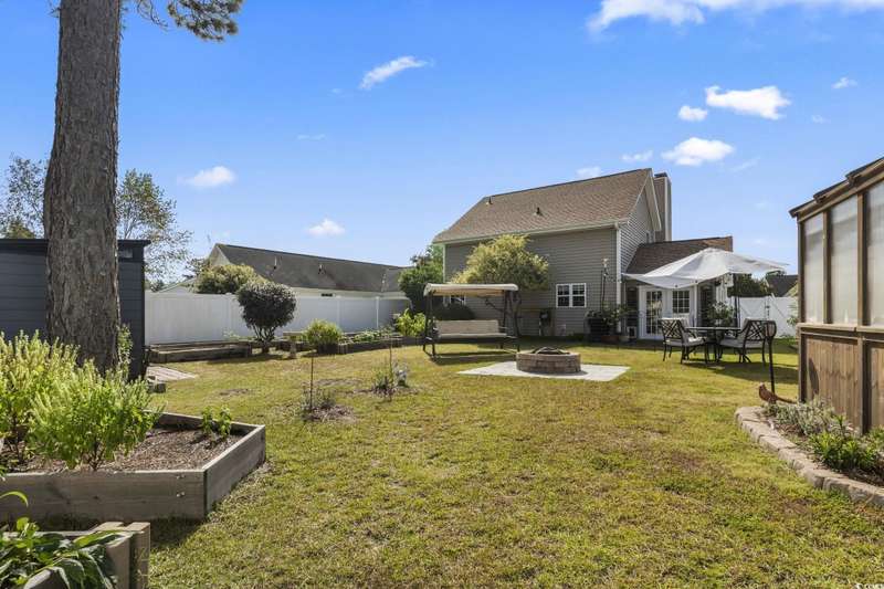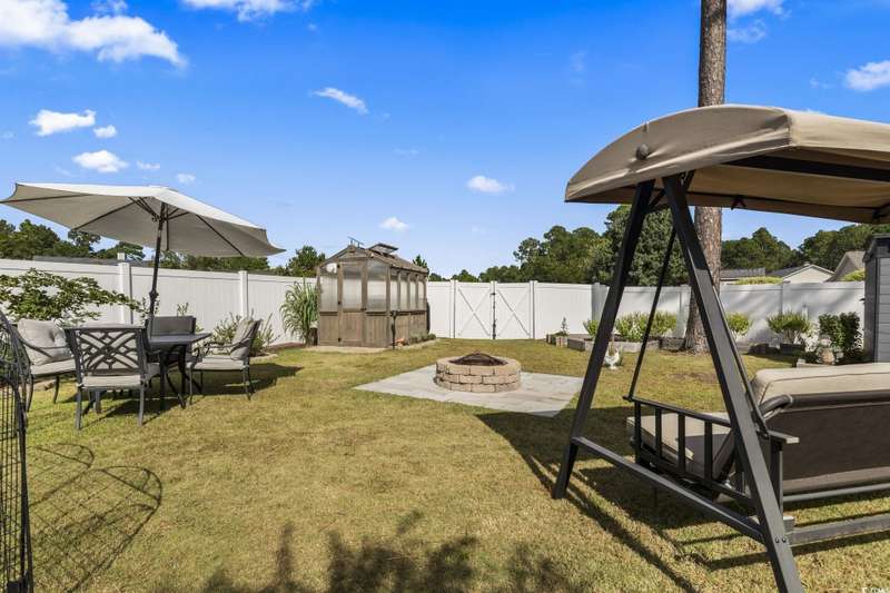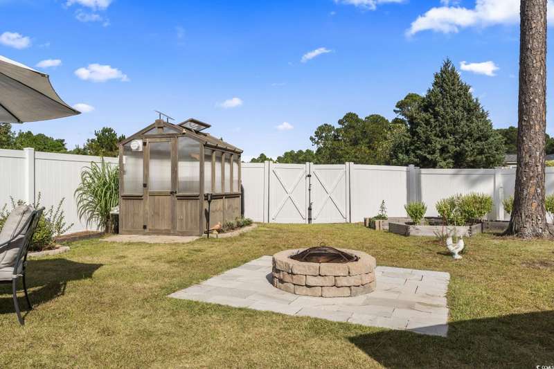 Welcome to this beautiful 3-bedroom, 2.5-bath home nestled in the highly desirable Southgate community of Carolina Forest. From the moment you arrive, this meticulously maintained property welcomes you with warmth and curb appeal. Enjoy peace of mind with recent updates, including a new water heater 2025, new carpet and roof 2023, washer and dryer 2023 and lot's of storage. Love the outdoors? This backyard is your personal oasis. Step outside to find a greenhouse, storage shed, firepit, and raised garden beds — perfect for gardening, entertaining, or simply relaxing. Open the gate of your privacy-fenced yard to unwind by a serene pond, where you can sit and watch the ducks. Located just minutes from top-rated schools, shopping, dining, and only a few miles from the beach, this home offers the perfect blend of comfort and convenience. There are too many extras to list. Call today to schedule your private showing and see everything this amazing home has to offer.