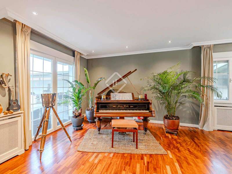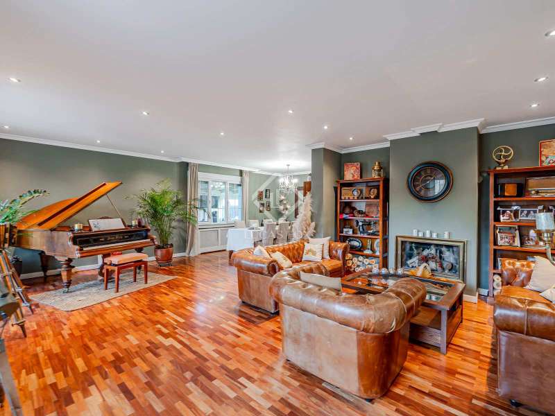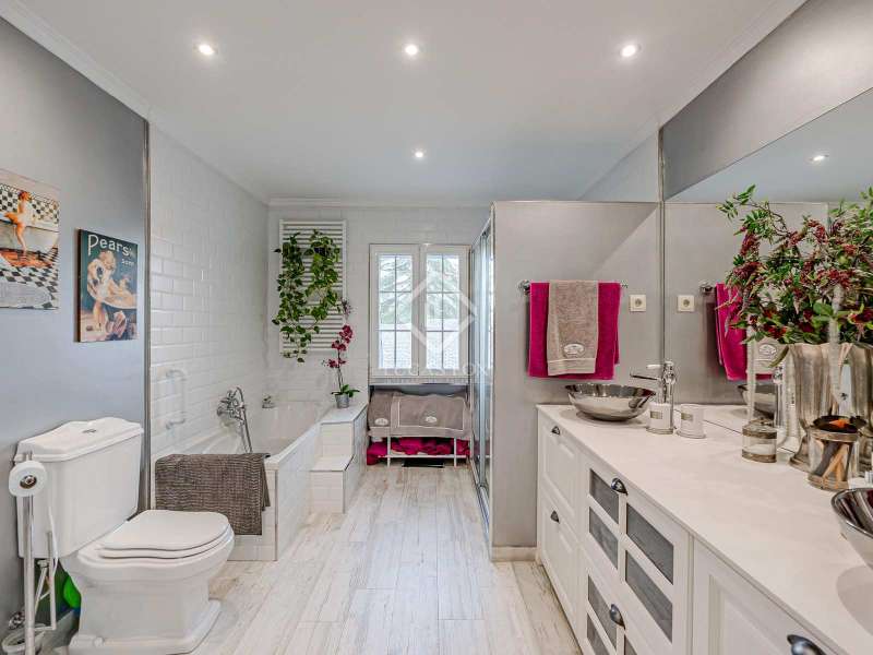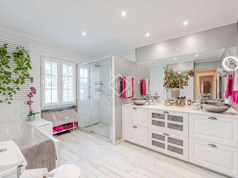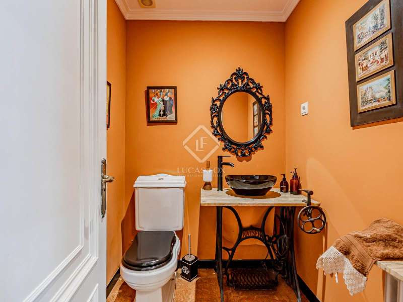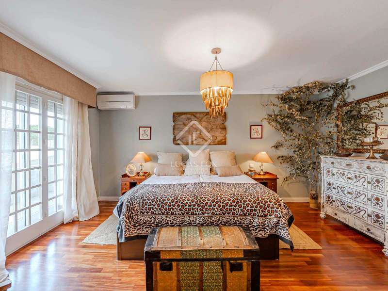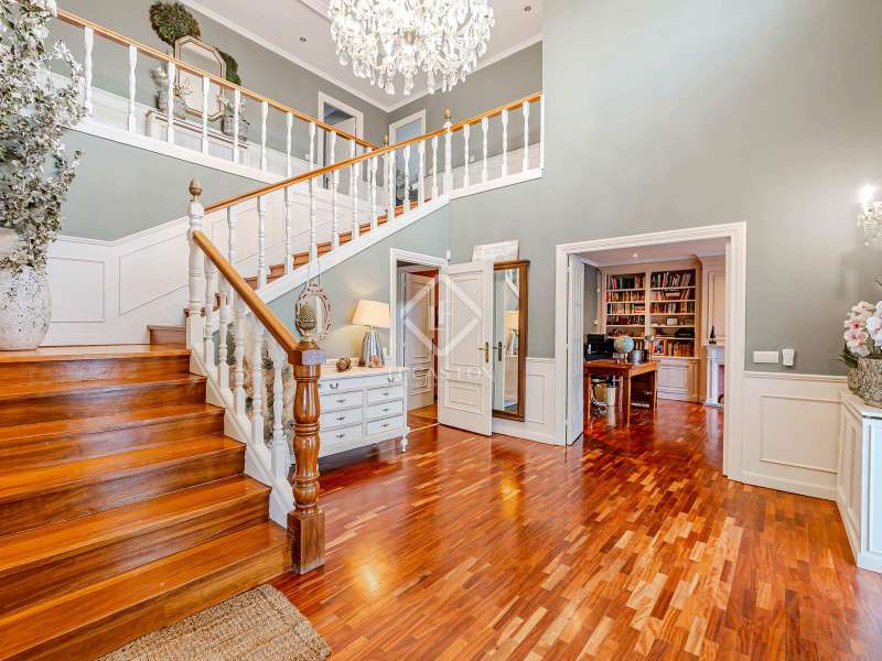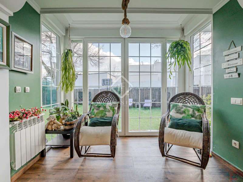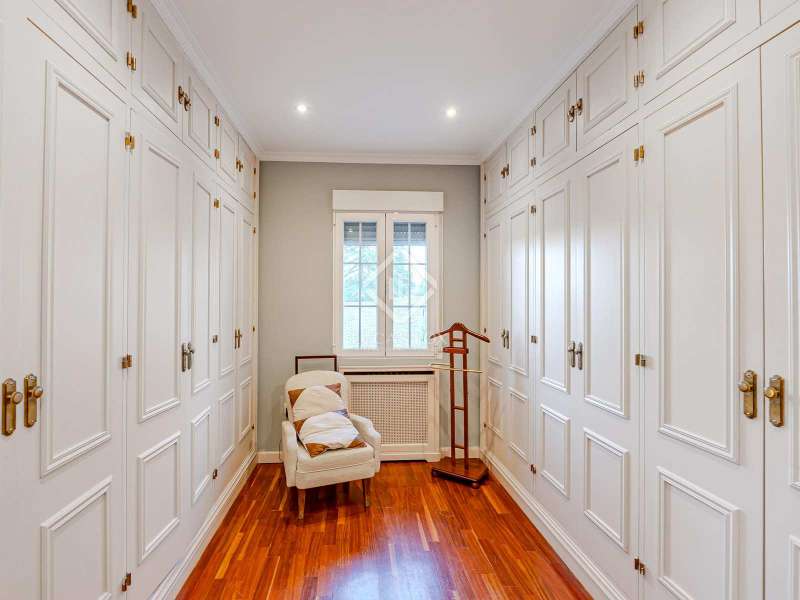 Lucas Fox Las Rozas presents in the heart of Villafranca del Castillo this spectacular independent villa with a classic European style and a marked identity that makes it truly special and unique. In its 631 m² built on a flat plot of 1603 m², it has 5 double bedrooms, 3 living rooms with fireplace, study library, leisure living room with pool table, sports area with gym, sauna and hammam, and a beautiful garden with a water pool. salty The charming villa is located just 10 minutes by car from Moncloa and with quick access to the A6. Villafranca is a residential area of independent villas, in a private development with 24-hour security. The property offers an excellent layout over 2 floors, and is completely renovated with a high level of finishes and materials. On the main floor , we are greeted with an elegant hall with a huge Murano glass chandelier, and a wide and majestic wooden staircase. The large dining room living room and a large study library with spectacular views of the front garden are distributed on both sides. Connected directly to the dining room from the living room, the kitchen is integrated with a very cozy office and access to the rear garden . On this ground floor, we also find a games living room with billiards and fireplace, as well as a bedroom, a full bathroom and a guest toilet. On the first floor we find a large hall that gives access to four double bedrooms. The main bedroom suite is a spectacle in terms of privacy and dimensions, as it has a bedroom with a King Size bed, a beautiful living room with a fireplace, a large bathroom with a bathtub and shower, and is connected to two completely independent dressing rooms. This bedroom has access to a private and discreet terrace that offers unique views of the garden. Two other double bedrooms are connected to each other by a large and complete bathroom and the fourth bedroom has a third complete bathroom next to it. The property has wide stairs and huge windows that give a lot of clarity and spaciousness to the environment. The large windows are of top quality: double climalit glass with air chamber and thermal break. Exterior, next to the pool, there is a barbecue area, a complete bathroom with a dressing room to serve this area and a pleasant covered gallery or porch, as a picnic area, which creates a perfect chill-out and rest area. in various environments. In the back garden of the property we can find the sports area, with a gym, putting green, games area, Finnish sauna, hammam and jacuzzi. Likewise, it has 12 solar panels that give it daytime energy autonomy, LPG heating (liquefied gas in radiators), air conditioning and interior and perimeter alarm. It has a large closed garage for 2 cars with direct access to the property, a covered garage for 2 more cars with electric charging stations and a large area in the garden where guests' vehicles can be parked. This house is ideal for demanding people who want to live in a unique villa with a special and discreet atmosphere, surrounded by nature and at the same time, with a high quality of life very close to the centre of Madrid, surrounded by natural green spaces and wonderful views. . Contact us to organize a visit. You can also visit us at our Lucas Fox Property Lounge, Las Rozas, at 8 Camilo José Cela Street, so we can discuss your requirements in more detail.