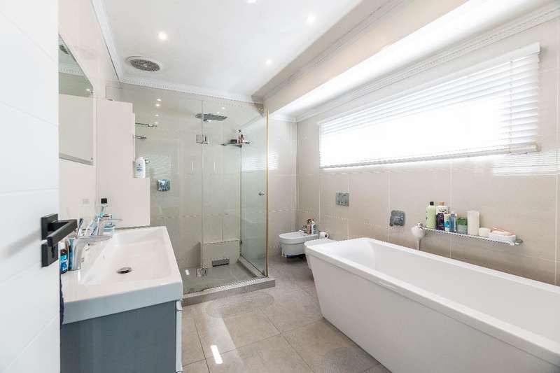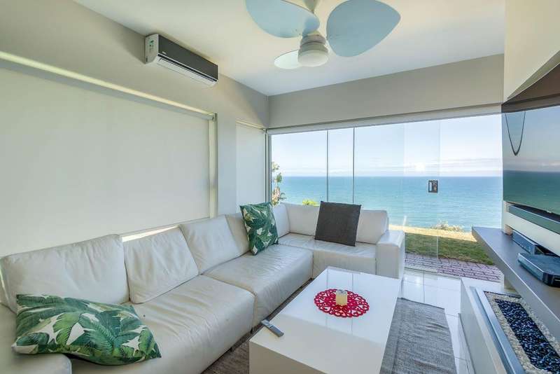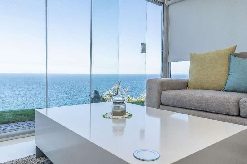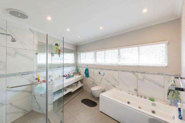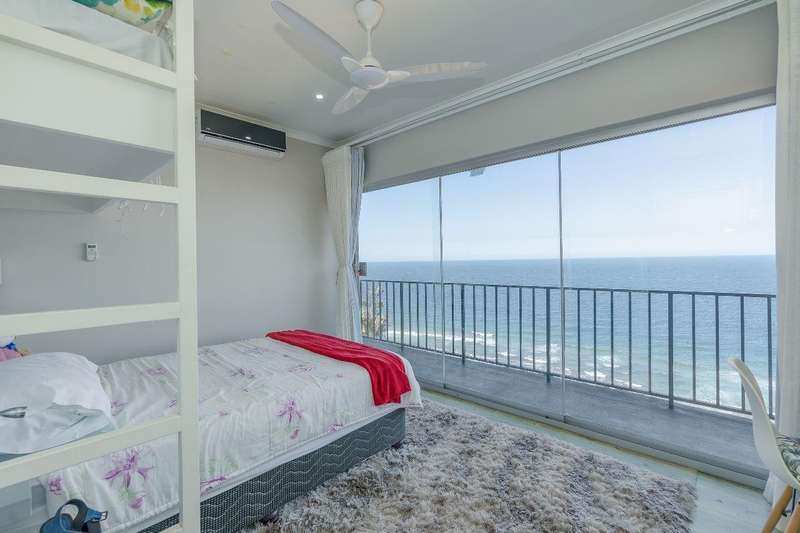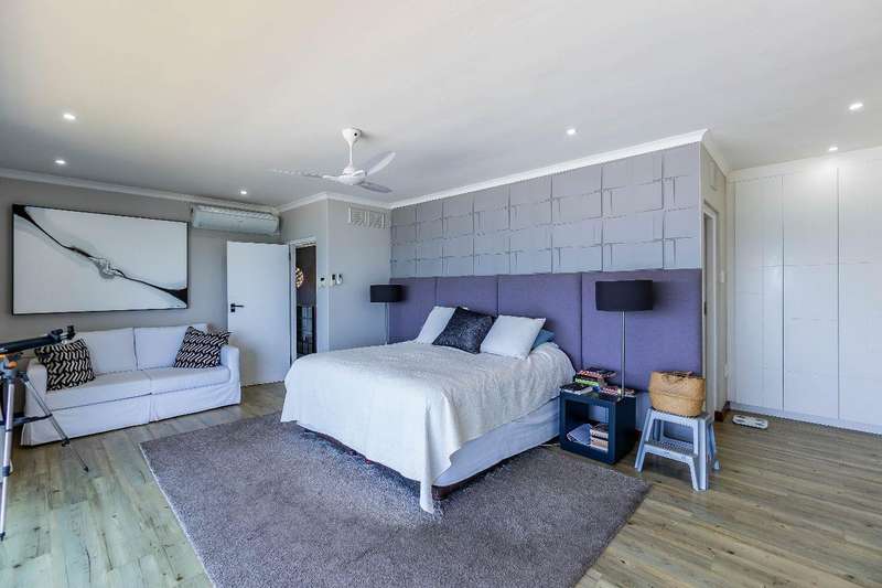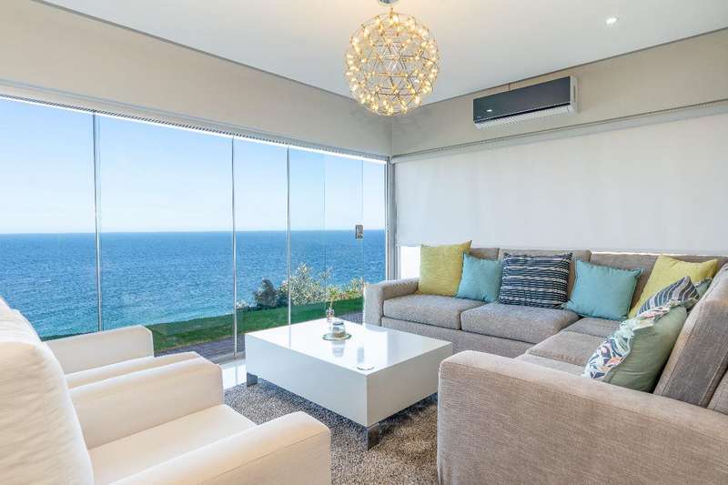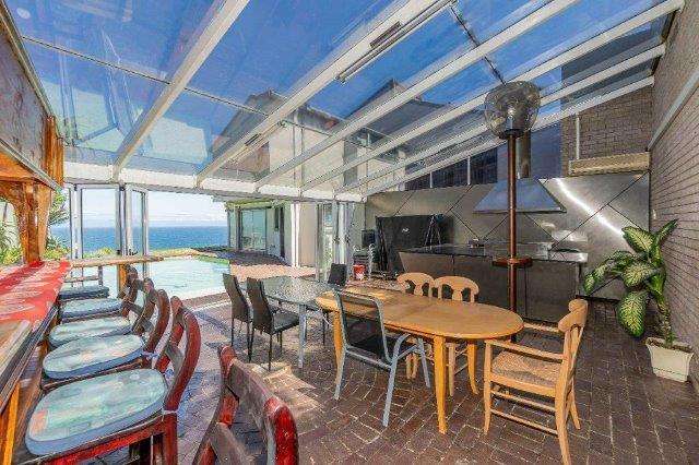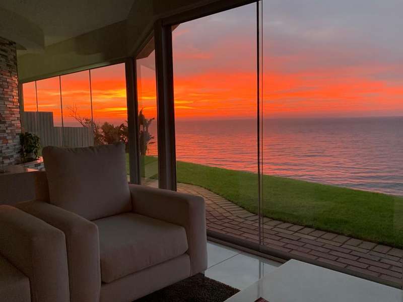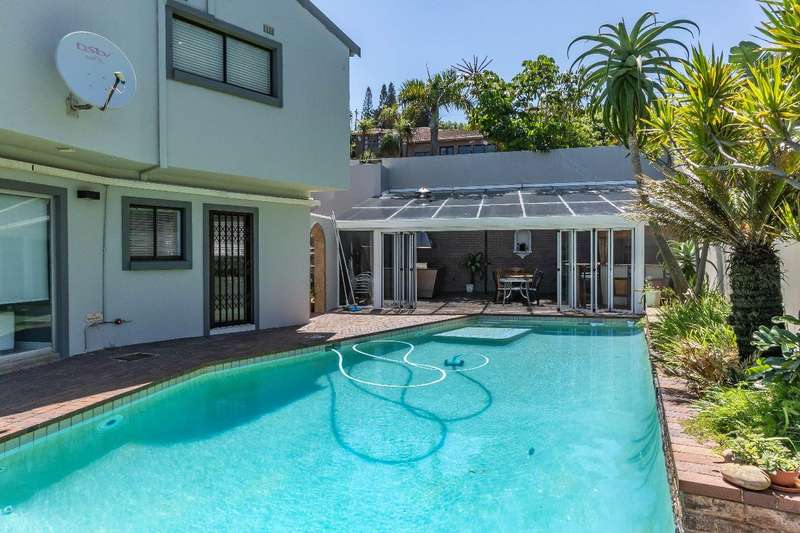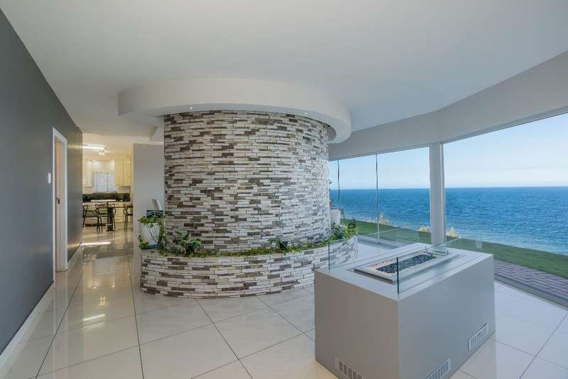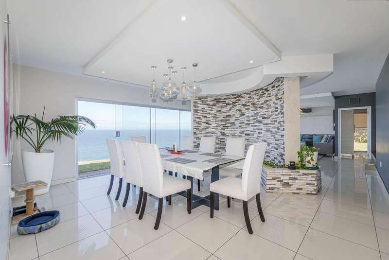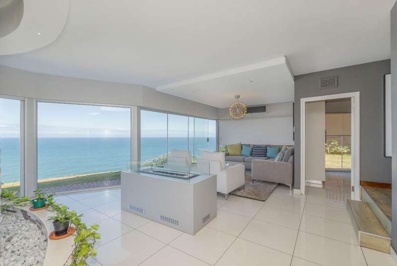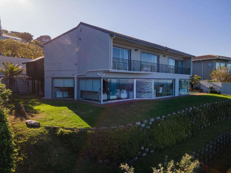 Double Storey house on the edge of a sea-facing cliff. The house offers 3 bedrooms upstairs all with sea views and a bedroom downstairs which is currently used as a study The main bedroom has an ensuite with both shower and bath. The main bedroom is fitted with built in Soft closing cupboards/wardrobe and has a lovely vanity dresser. There is a sea-facing balcony which runs across the length of the house. The second bathroom has a Scandi Jet bath All bathrooms are fitted with Tivoli, Hans Grohe, Geberit Sanware All sea-facing doors have frameless glass doors. Downstairs consists of an open plan lounge and dining area.The lounge has a gas fireplace. The lounge and dining room are split by a curved load-bearing wall. The wall has been turned into a feature wall, with mosaic cladding tiles and an overhead water feature running the length of the curve, which cascades water over the tiles This area has a study with fitted office shelving, cupboards and movable office drawers. There is a TV room which has a gas fireplace under the TV This room is fitted with electric blinds Outside has a medium-sized swimming pool There is also a large entertainment area alongside the pool with a fiberglass roof. Inside you have a large bar with under-counter bar fridge, there is a large custom-made gas braai with a extraction fan. There is a wash/laundry room. Servants shower and bathroom. Additionally there is another room with bathroom There are two geysers, one of which is solar-powered. A two-car garage which is tiled. The gates and garage door are automated, with a backup battery At night the ocean waves are easily heard. There are whales and dolphins that are visible daily during the winter season. On weekends, you can often see Sailboats, Fishing boats, ski paddlers and the occasional ocean liner on the horizon.