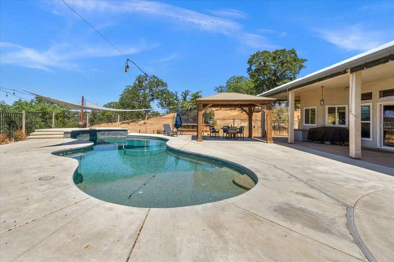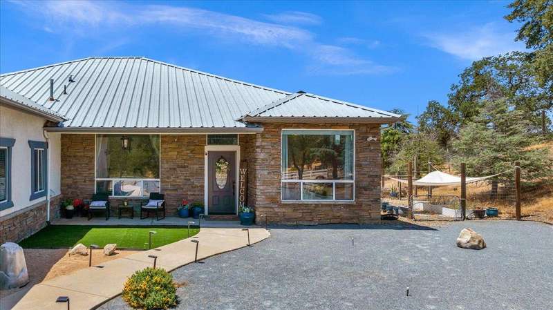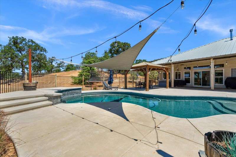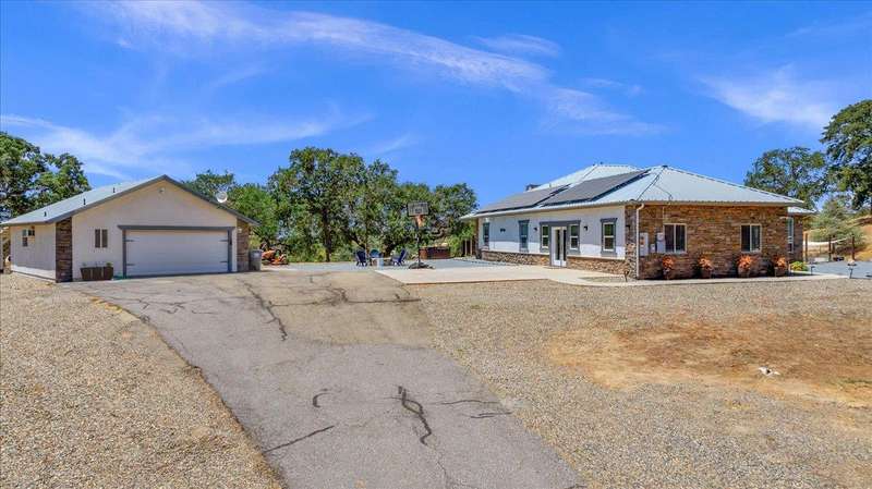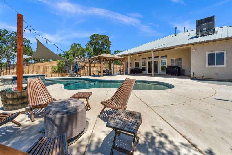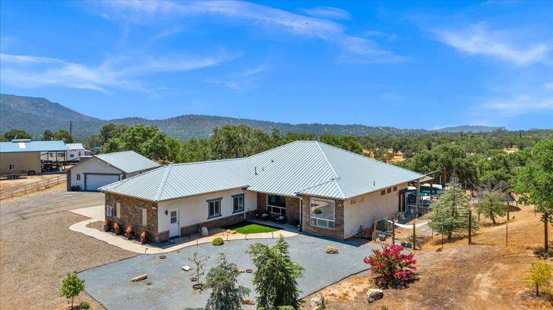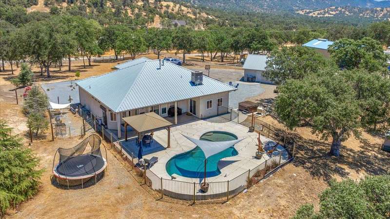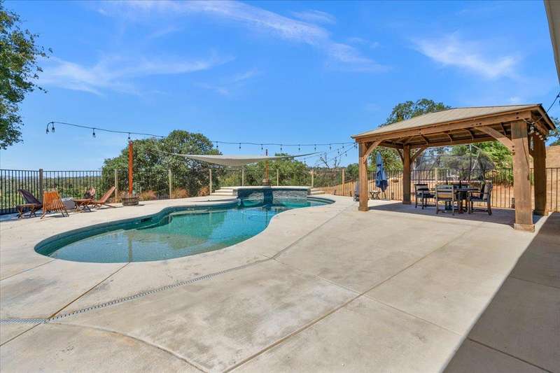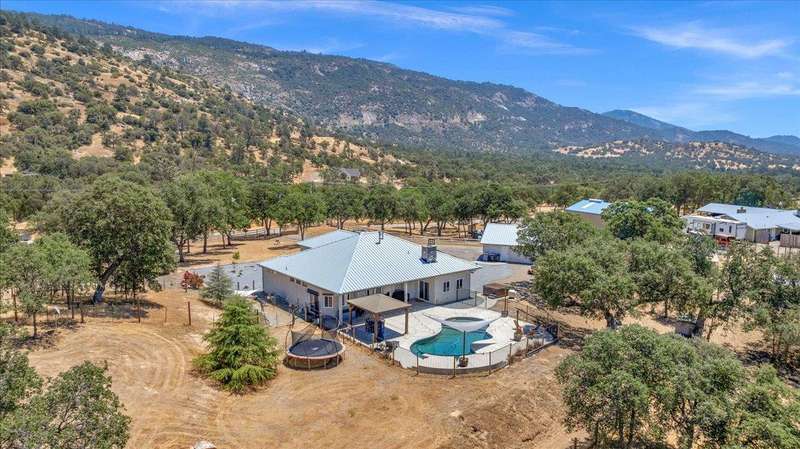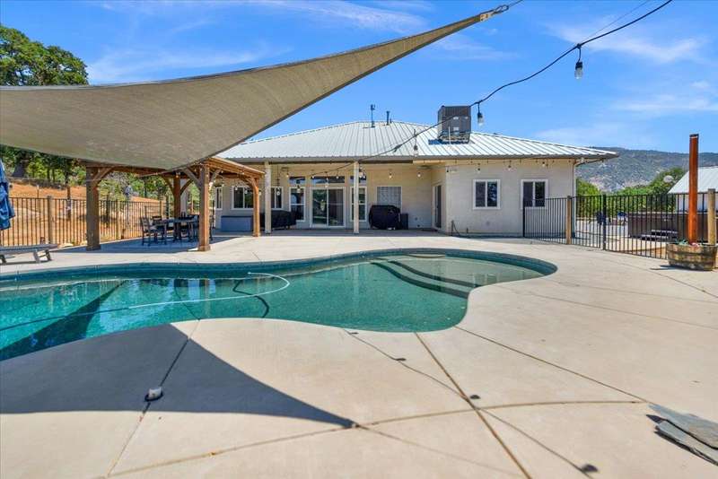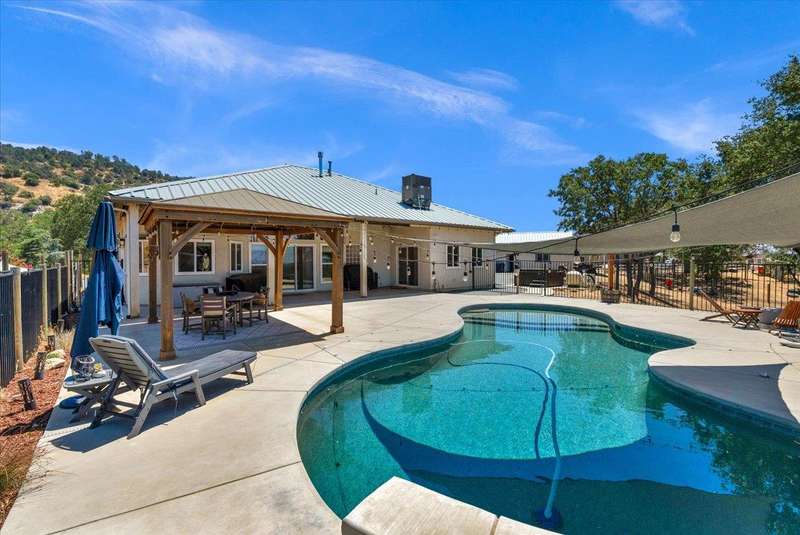 This beautifully updated 5-bedroom, 3-bath home spans just over 3,000 sq ft. and is nestled behind a gated, paved entrance on more than 4 acres. This property offers privacy and space to live, work, and entertain.Inside, you'll find a thoughtfully designed floorplan featuring a formal dining room, dedicated office, and a large game room ideal for hosting or easily adapted for multi-generational living. The modern kitchen and living areas are tastefully updated with high-end finishes, creating an inviting atmosphere throughout.Step outside to your personal retreat with a sparkling pool and patio area, and a spa, all with beautiful mountain views. Beyond that, there is a detached garage with a gym and bathroom, animal pens, and plenty of room to roam. Enjoy energy efficiency and savings with financed, not leased, solar panels.This home offers room to grow, room to relax, and room to thrive. Don't miss this opportunity!