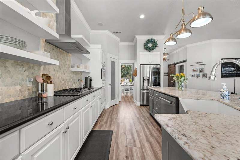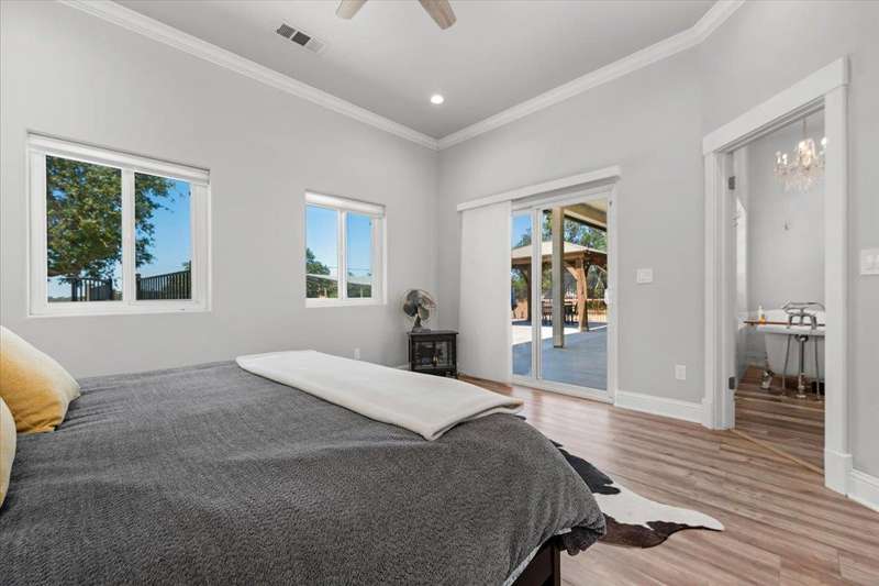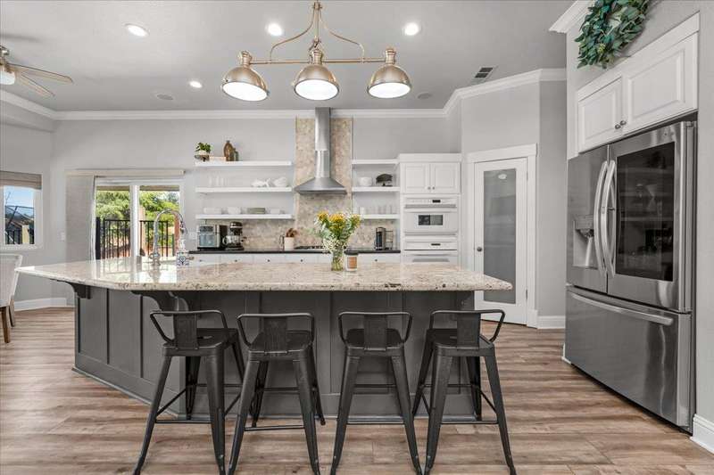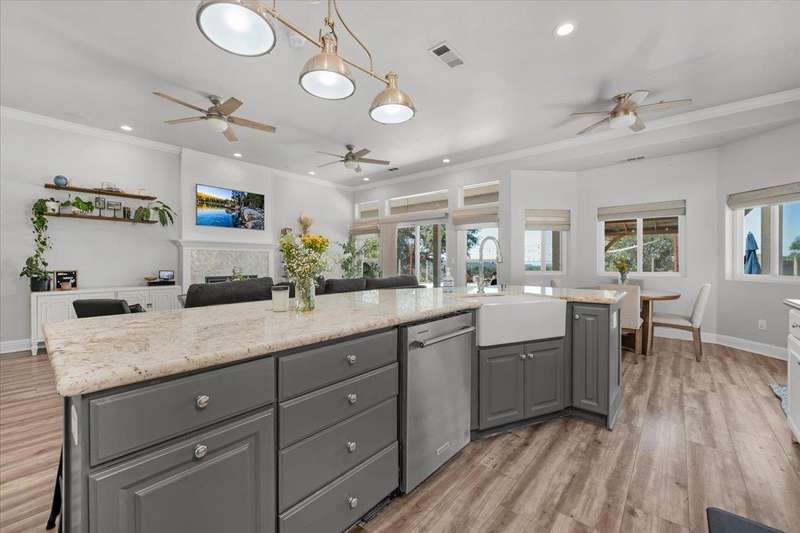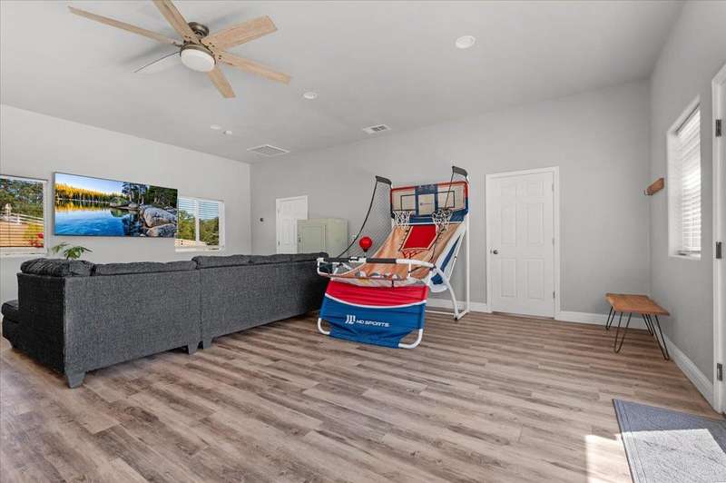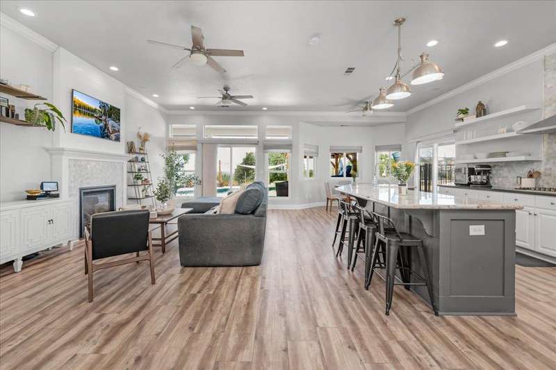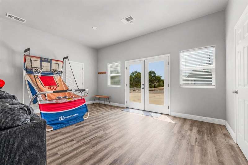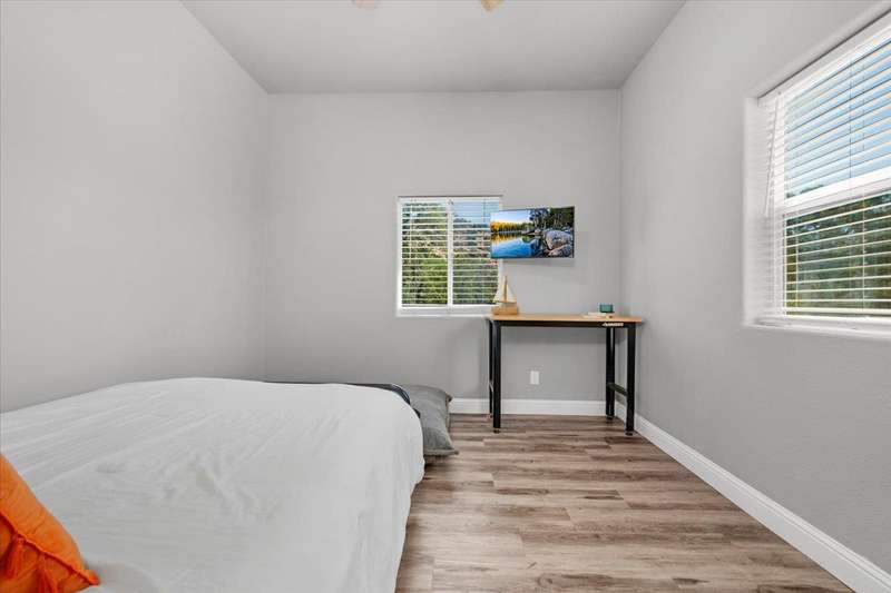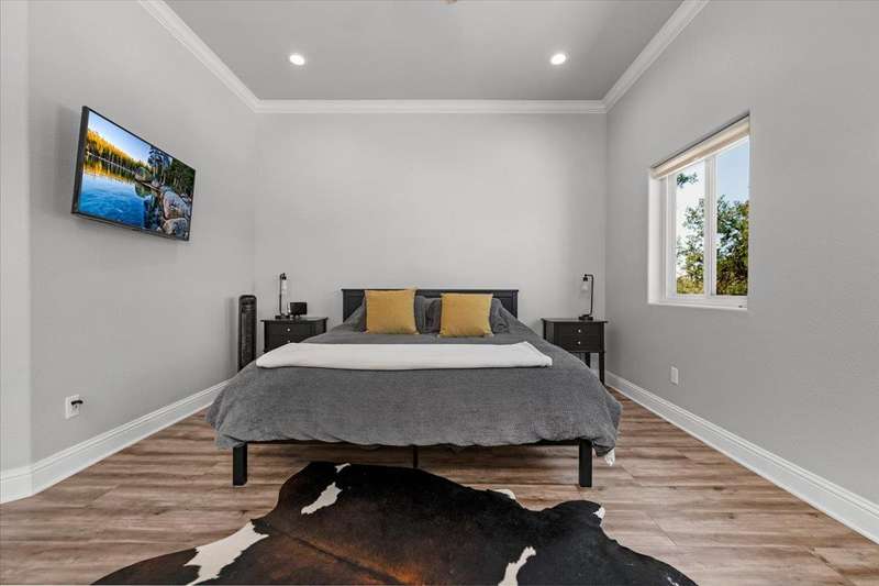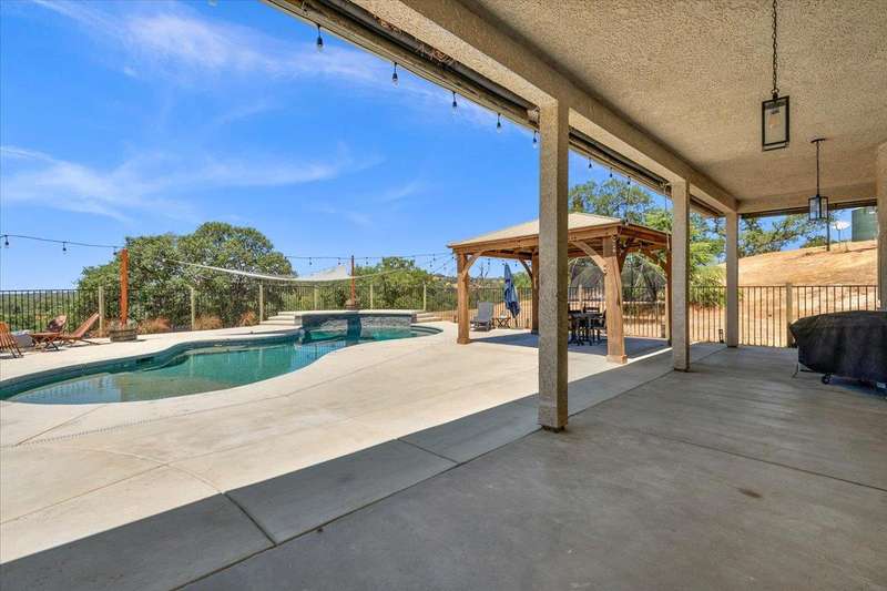 This beautifully updated 5-bedroom, 3-bath home spans just over 3,000 sq ft. and is nestled behind a gated, paved entrance on more than 4 acres. This property offers privacy and space to live, work, and entertain.Inside, you'll find a thoughtfully designed floorplan featuring a formal dining room, dedicated office, and a large game room ideal for hosting or easily adapted for multi-generational living. The modern kitchen and living areas are tastefully updated with high-end finishes, creating an inviting atmosphere throughout.Step outside to your personal retreat with a sparkling pool and patio area, and a spa, all with beautiful mountain views. Beyond that, there is a detached garage with a gym and bathroom, animal pens, and plenty of room to roam. Enjoy energy efficiency and savings with financed, not leased, solar panels.This home offers room to grow, room to relax, and room to thrive. Don't miss this opportunity!