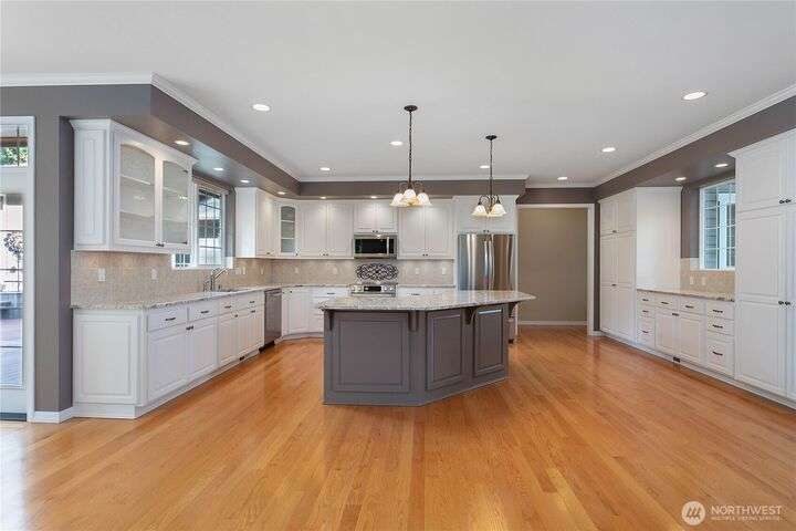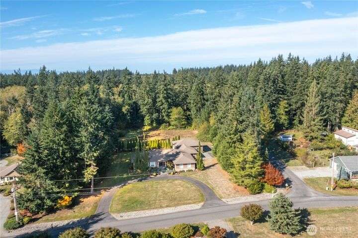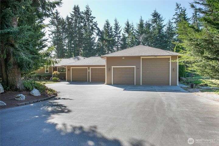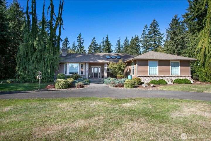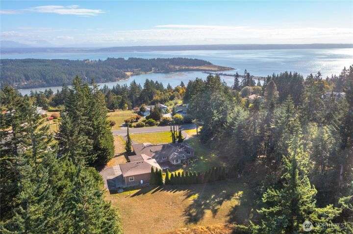 Beautiful single-level home on 5.21 acres! Enjoy peaceful living with territorial & mountain views, plus a peek at the bay from this spacious 3,016 SF home built in 2004 & meticulously maintained ever since. The naturally bright floor plan features 3 bdrms plus office/den, an open living room, dining area & kitchen, perfect for everyday living & entertaining. Quality details throughout include hardwood floors, 2 fireplaces & recently replaced heat pump & water softener. Step outside to a stunning backyard retreat with huge deck & patio for relaxing or gatherings. Attached 4-car garage offers one oversized bay plus additional office or workshop space. Beautiful landscaping, 2 driveways, & plenty of parking complete this exceptional property.