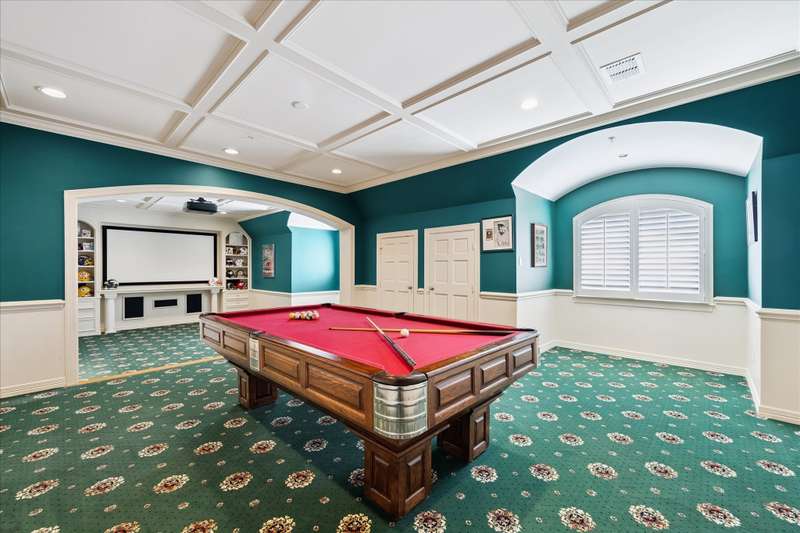Location! Location! Location! Outstanding home with impeccable millwork, stately façade, inviting interiors & incredible location! ROOF 2025*. This home features a grand-scale family room with 12ft ceiling that opens to the spacious kitchen, light-filled breakfast room & covered back patio. The kitchen is the heart of the home w/ expansive breakfast bar, central island & quality cabinetry. Entertain with ease at the full bar w/ ice maker and beverage fridge, + a separate wine room. Stunning dining room w/ Iconic Gracie wallpaper. Handsome library with fireplace, richly paneled walls & soaring ceiling. Oversized primary suite w/ tray ceiling & spa-like marble bath with jetted tub, glass shower, large vanity area & huge closet with packing island. Exercise room down. Upstairs game & media rooms w/ wet bar. Generous secondary bedrooms. Large backyard complete with bocce court & firepit. Oversized 3-car garage with built-in workshop. Home office. Gated parking + Circular Drive.*per Seller.
