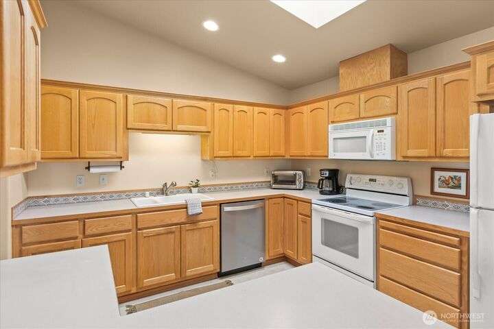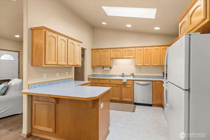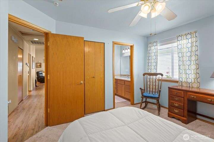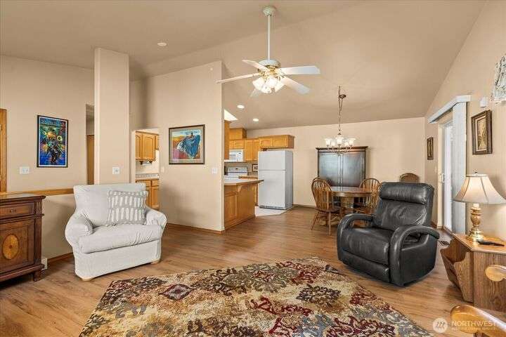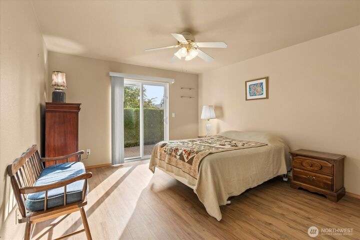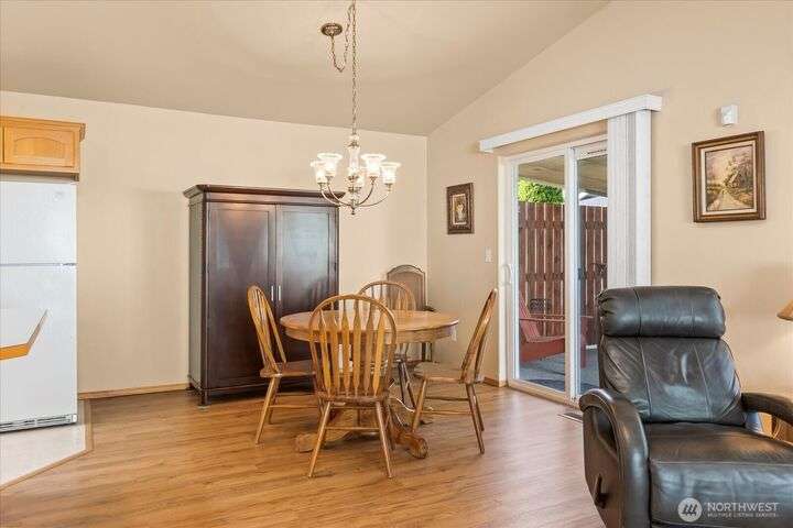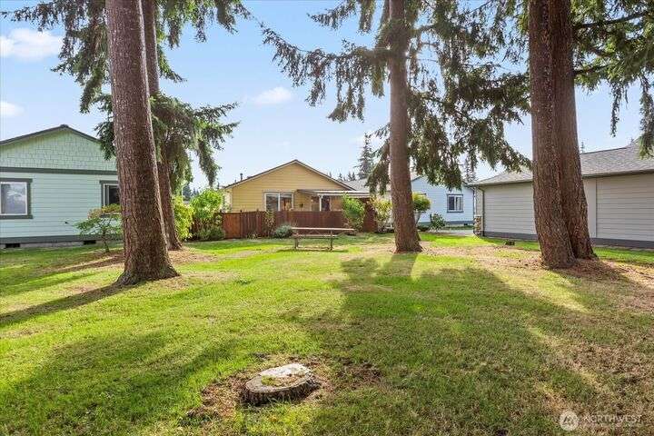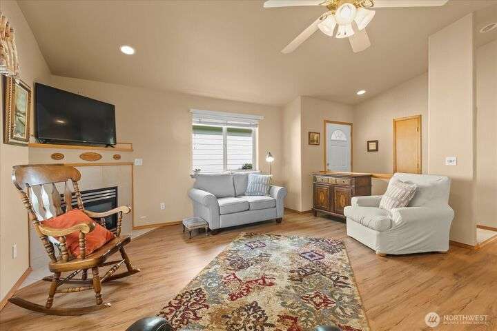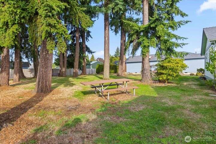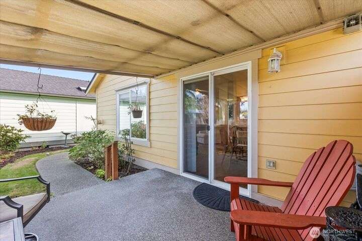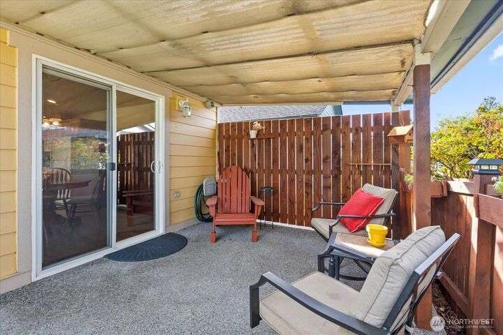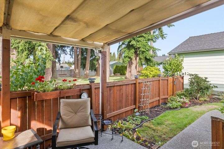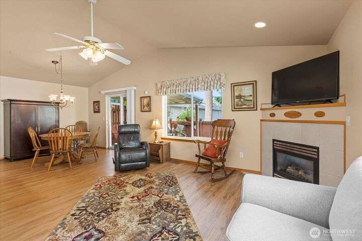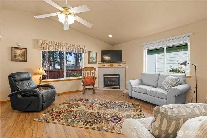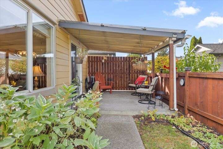 Charming 1-level cottage (no stairs!) in highly sought after 55+ community in Marysville! Centrally located, this light and bright 1,198 sq ft home features an open concept floor plan with vaulted ceilings, newer LVP flooring throughout, gas fireplace and A/C! Primary bedroom with ensuite, walk-in closet and access to private patio with room for a hot tub. The covered back patio overlooks a community park and partially fenced yard. Newer roof and exterior paint too! HOA includes lawn maintenance and onsite RV storage area! Community garden area with gazebo, firepit and horseshoes. Easy access to I-5 and amenities.