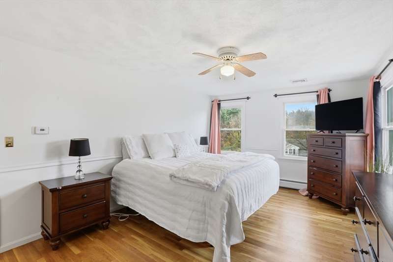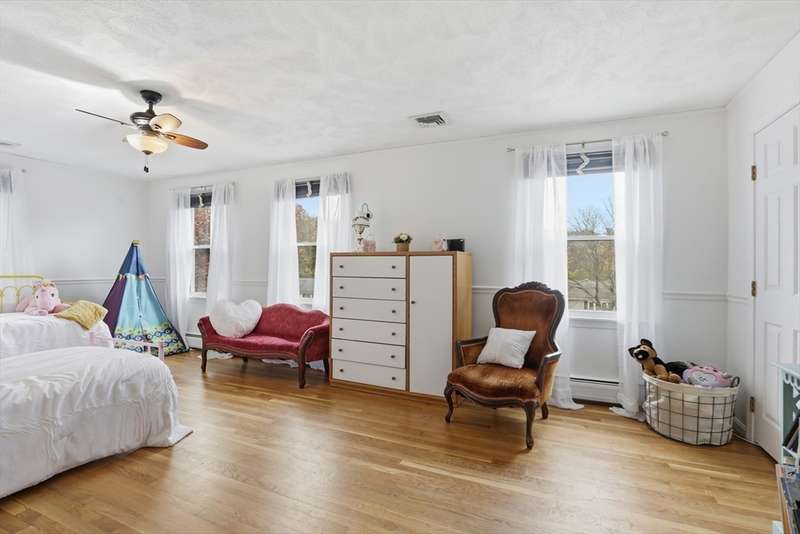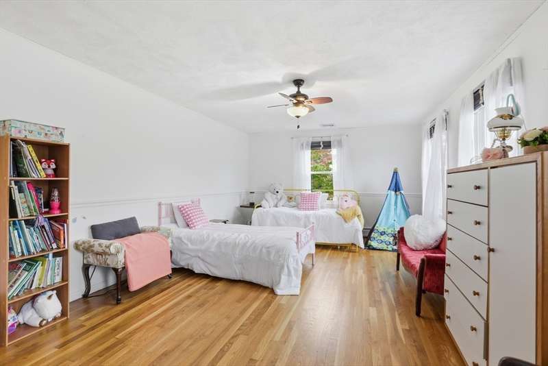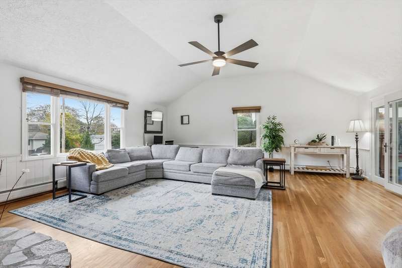 Welcome home to this picture-perfect 3-bedroom, 3-bath home that truly has it all! Step inside to find beautiful hardwood floors, a spacious family room with vaulted ceilings and a cozy wood-burning fireplace, and an eat-in kitchen perfect for family meals. The main level also offers a formal dining room, bright home office, and a half bath with laundry. A stunning sunroom overlooks your own backyard retreat — complete with a heated inground pool, relaxing spa, and covered patio with skylights, recessed lighting, and ceiling fans. Enjoy the cabana, playground, basketball court, chicken coop, and lush landscaping. Upstairs features three generous bedrooms, including a large primary suite with walk-in closet and private bath, plus a full hallway bath. The finished basement adds even more space for play, hobbies, or guests, and a two-car garage completes this beautiful home!