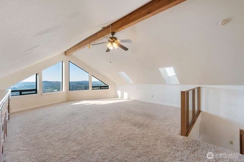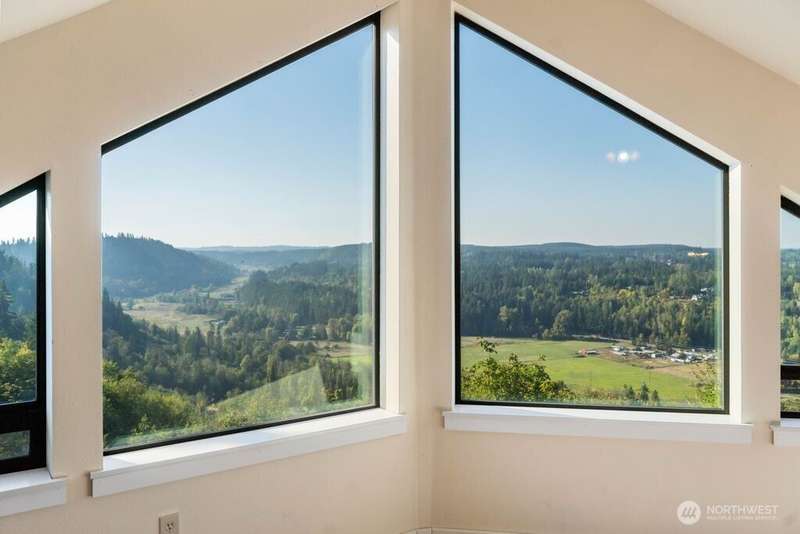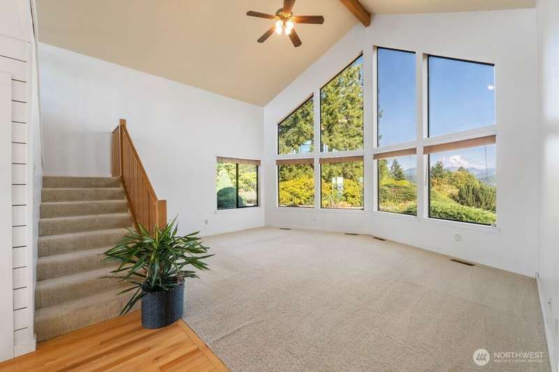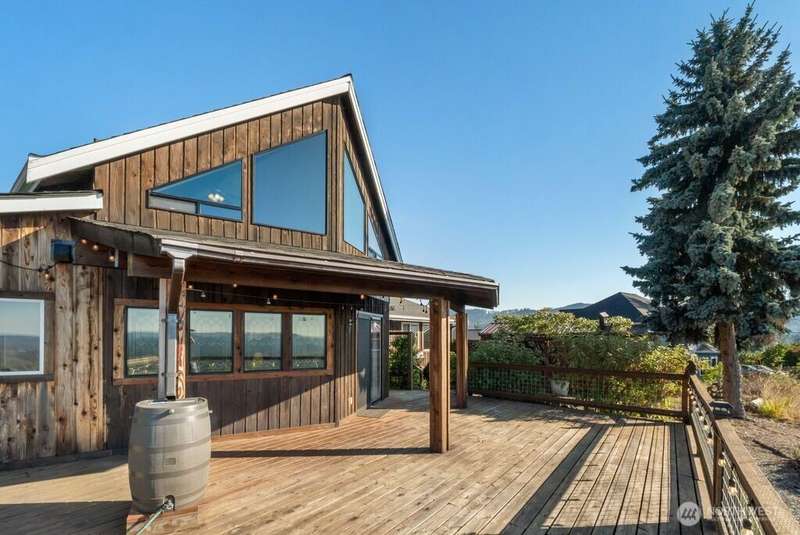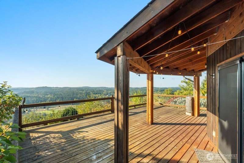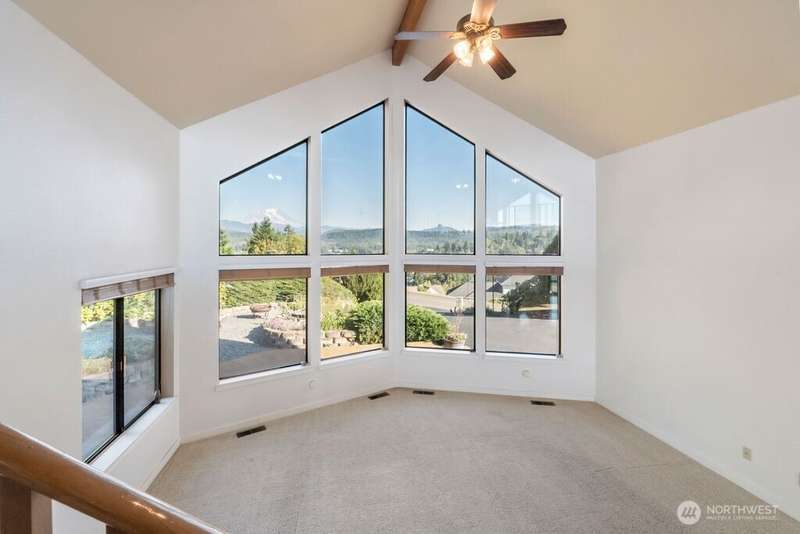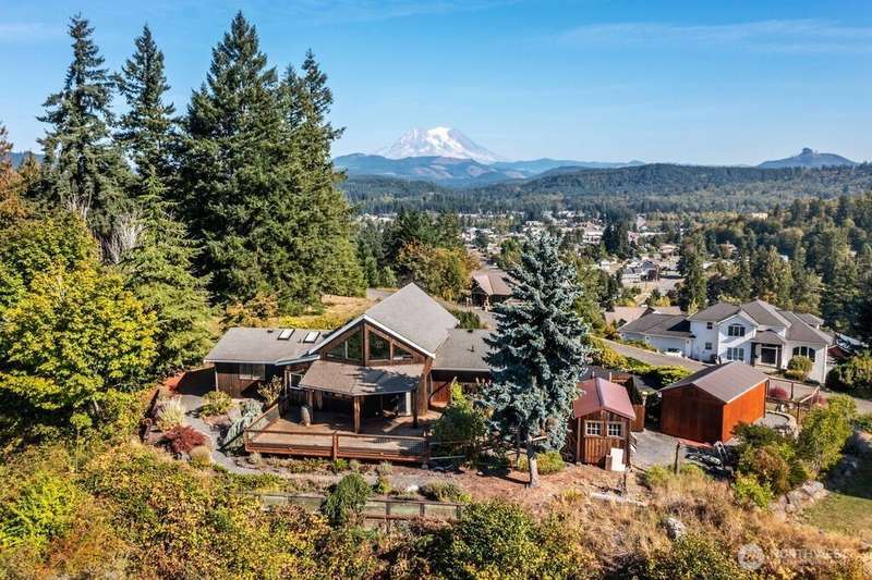 This mountain retreat home is so unique. It was built and positioned on the lot to capture each sunrise and sunset from inside windows. Year-round natural light throughout home. Has a panoramic view of Mt. Rainier in front w/ equally amazing views in back (territorial, valley & Ohop Lake in the winter). Primary bedroom on main level w/ updated bath, newer tile and countertop. Updated kitchen. A loft, wood flooring, a secluded patio, two large wood sheds, garden space, RV parking, heat pump, mature landscaping w/water feature. Has a one bedroom attached dwelling that would be perfect for generational living or an airbnd. The beauty that surrounds this home year-round is breathtaking, a must See!!