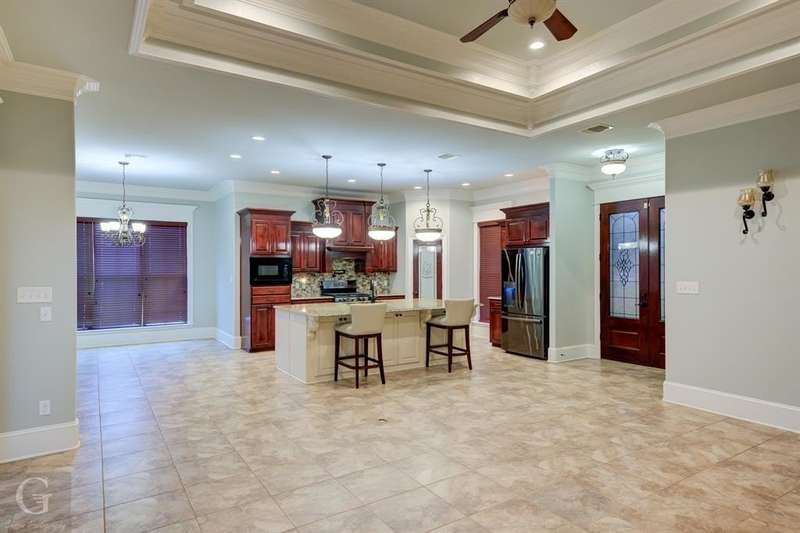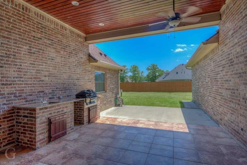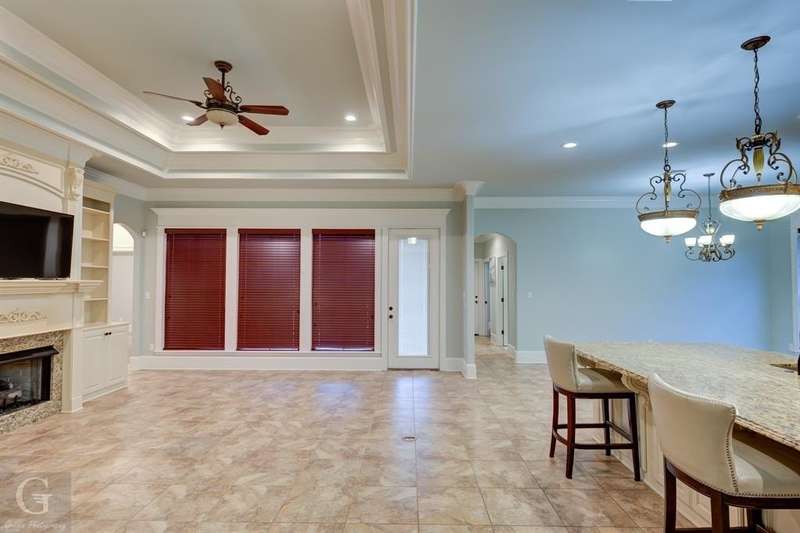 New Price, Move In Ready! Situated in a gated community, this standout home features a soaring open floor plan accentuated by crown molding, unique ceiling treatments, and quality built-ins throughout. Anchored by a striking fireplace with built-in bookshelves, the living area seamlessly connects to the kitchen, ideal for effortless entertaining. Boasting granite countertops, newer appliances, a colossal island seating eight, and an eat-in layout. Adjoined by an expansive dining room perfect for gatherings. The primary suite on the main floor includes dual vanities, a jetted tub, a separate shower, and a walk-in closet. Upstairs, a private retreat or 4th bedroom (approx. 24×19) features its own full bath, built-in desk, and dual closets. A spacious (32×17) covered back patio with a built-in outdoor kitchen and grill, a privacy-fenced yard perfect for family gatherings, or a new pool. Additional features: 2-car heated and cooled garage with half-bath, massive driveway (room for 12 cars), zoned HVAC, foam insulation throughout attic, filtration system, ceiling fans throughout, hardwired video cameras and audio, fold-in windows for easy cleaning, under-cabinet lighting in kitchen, ample storage, walk-in pantry. This stunning custom-built home truly has it all: exceptional craftsmanship and versatile living spaces. Whether hosting large gatherings or enjoying quiet family moments, this property offers comfort, elegance, and convenience. Interested in seeing it in person? Reach out to schedule a tour. Homes like this don’t stay on the market long.