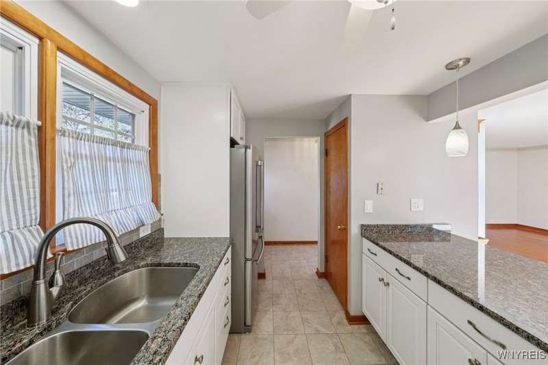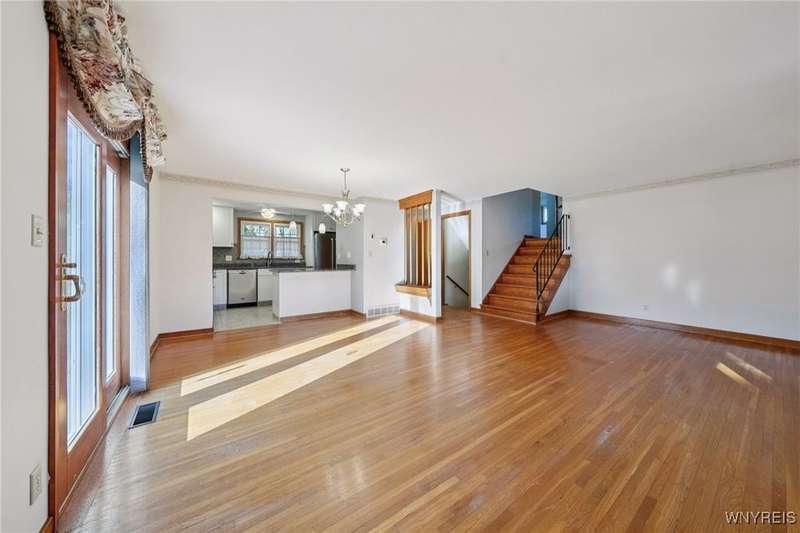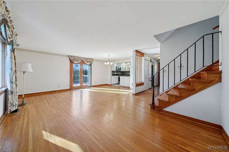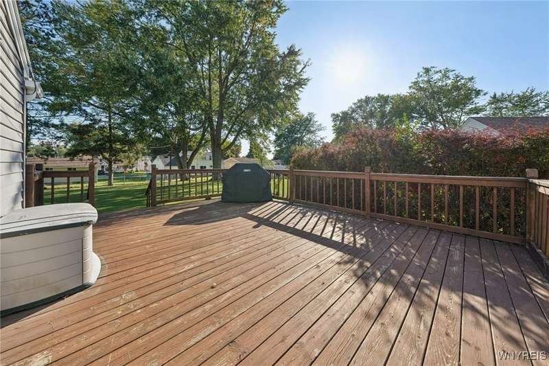 Wonderful space, comfort, and location come together in this beautifully maintained split-level home, perfectly situated on a quiet cul-de-sac in Hamburg. The home offers abundant living space with solid oak hardwood flooring throughout much of the interior, creating a warm and timeless feel. The main level features an expansive open-concept living and dining area with sliding glass doors leading to a large deck that overlooks the fully fenced backyard?ideal for entertaining, gardening, or simply relaxing outdoors. The completely updated kitchen is a true highlight, boasting granite countertops, a breakfast bar, sleek newer appliances, and ample cabinetry that combines style with functionality.Upstairs, you'll find three bright, comfortable bedrooms?all with hardwood floors?and a nicely finished full bath. The lower level offers exceptional flexibility, with brand new carpet, a convenient kitchenette, two additional bedrooms, and another full bath, making it perfect for guests, in-laws, or a home office setup. From this level, walk out directly to a sidewalk leading to the front or, from another exit, a covered patio that provides a cozy spot to enjoy the backyard in any weather. The lowest level, the basement, houses sound mechanical systems along with washer and dryer connections, offering extra storage and utility space.When it comes to community, Hamburg truly shines. Known for its small-town warmth and big-town amenities, it's filled with local history, creative energy, unique shops, plazas, and an impressive selection of restaurants and markets. The location is ideal?less than 25 minutes from the Buffalo Niagara International Airport and less than 20 minutes to downtown Buffalo?offering easy access to the best of Western New York. The region blends scenic countryside with rich cultural attractions such as the AKG Art Gallery and the Buffalo Philharmonic Orchestra. Sports fans will love being near the home teams?the Buffalo Bills and Buffalo Sabres?while outdoor enthusiasts can explore the natural wonder of Niagara Falls or enjoy skiing at Kissing Bridge or Holiday Valley, less than an hour's drive. Delayed negotiations until Thursday, October 23, Noon.