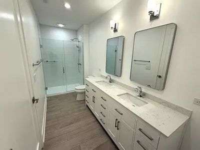 **Available NOW - Brand new construction in the heart of downtown Naperville!** Just **7 blocks to the Metra station**, this upper unit** combines modern farmhouse style with urban convenience. Perfectly located within acclaimed District 203 schools and steps from Centennial Beach, the Riverwalk, shopping, and award-winning restaurants, this home makes downtown living effortless. Inside, you'll find soaring 9-foot ceilings, Marvin windows with built-in blinds, and durable wide-plank luxury vinyl floors throughout. The open-concept great room flows seamlessly to a **22' x 10' covered patio**, perfect for entertaining or relaxing. The chef's kitchen boasts stainless steel appliances including a side-by-side refrigerator, LG dishwasher, 5-burner LG gas range with hood, garbage disposal, and a large entertainment island with storage. Soft-close cabinets and drawers complete this stylish, functional space. The spacious primary suite offers floor-to-ceiling windows, a ceiling fan, walk-in closet, and spa-inspired bath with dual vanity and oversized walk-in shower. Two additional bedrooms (or one bedroom plus flex office) and a second full bath with dual vanity and tub/shower combo provide versatility for modern living. A convenient powder room, in-suite washer and gas dryer, and abundant storage add to everyday comfort. Additional highlights - central air, gas heat, 50-gallon hot water heater, a brick and stucco exterior, and cable-ready connections. The attached 2-car garage is EV-ready with a Level 2 charging outlet. Two-year lease preferred. Monthly rent to be paid via electronic transfer/direct deposit. Tenant responsible for all utilities and internet. Rent includes lawncare and snow removal. No smoking permitted on premises.