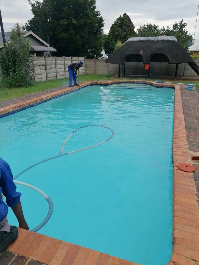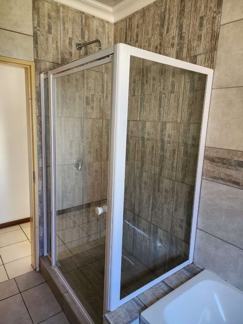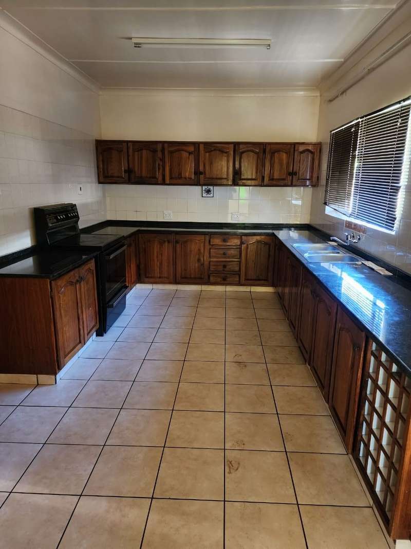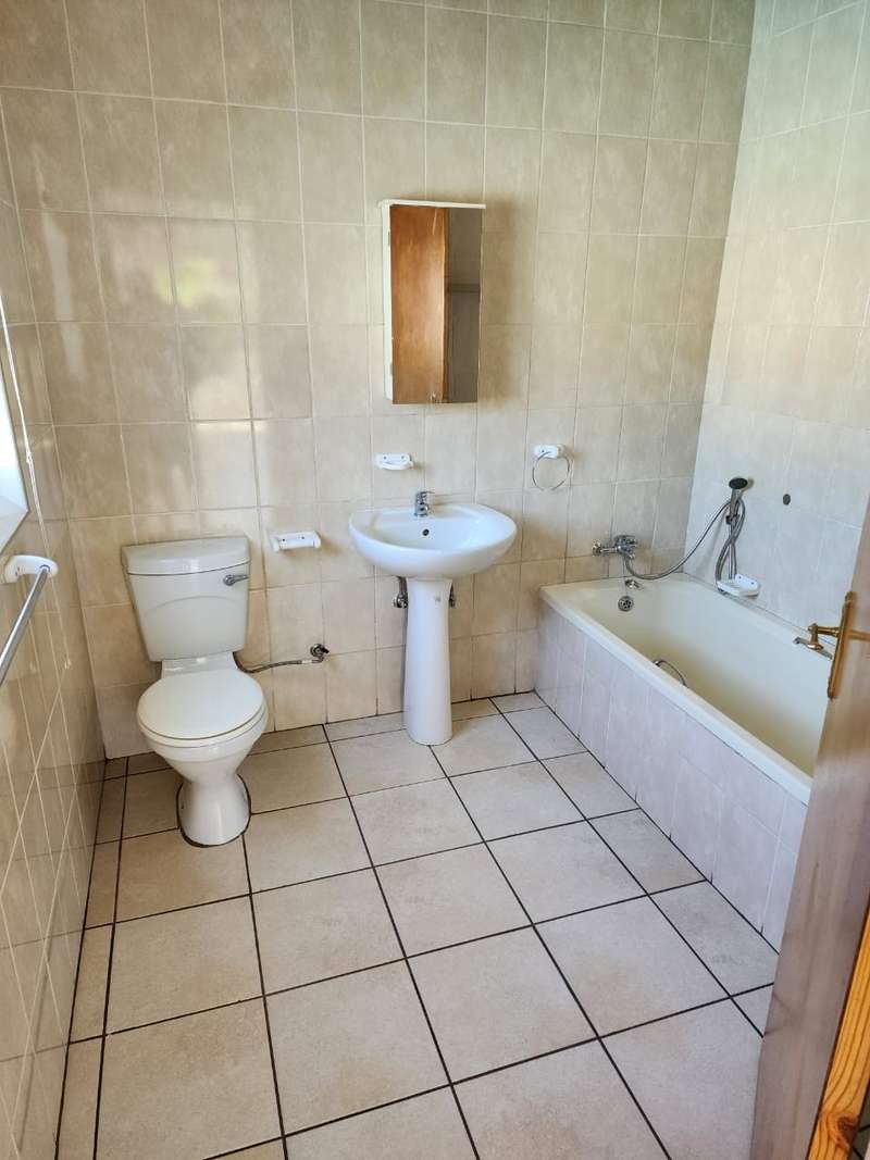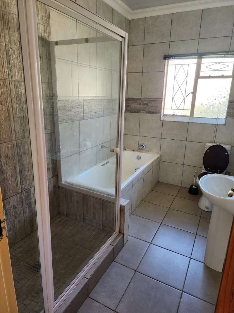 Spacious 4 bedroom house with cupboards tiled floors Two bathrooms guest bathroom and The main bedroom bath room en - suite newly renovated full bathroom with shower, bath, basin, toilet lounge dining room a study Spacious kitchen with cupboards granite tops and a laundry Double garage and double car port with space for 2 cars Outside room with toilet Lapa Pool garden Prepaid electricity