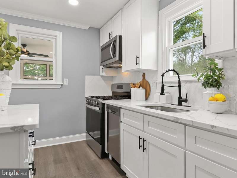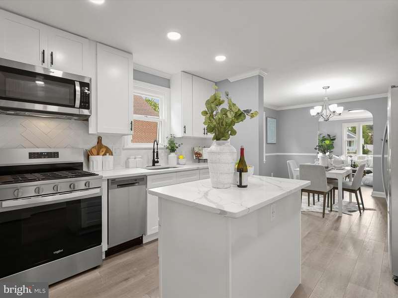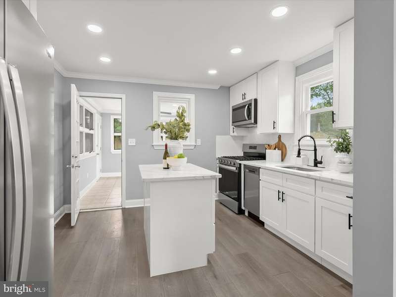 Introducing this fully updated home offering four bedrooms and two full bathrooms spread across three finished levels of thoughtfully designed living space. An inviting covered front porch sets a warm tone upon arrival. Renovated throughout, this home showcases modern upgrades paired with a neutral color palette. The open-concept main level features crown molding, luxury vinyl plank flooring, and a welcoming living room with a gas fireplace, flowing seamlessly into the dining area. A stylish kitchen boasts stainless steel appliances, quartz countertops, an island, herringbone tile backsplash, and soft-close shaker cabinets. Just beyond, the sunroom overlooks the backyard and provides a versatile space ideal for a den or home office. Two bedrooms and a full bathroom with a tile-surround tub shower complete this level. Upstairs, a private third bedroom offers a quiet retreat. The finished lower level includes a recreation room, fourth bedroom, and a full bathroom with a frameless glass door walk-in shower. Outdoor living is enhanced by a fully fenced backyard with a covered patio, complemented by a storage shed and a driveway accommodating at least three vehicles. Some images have been virtually staged.
