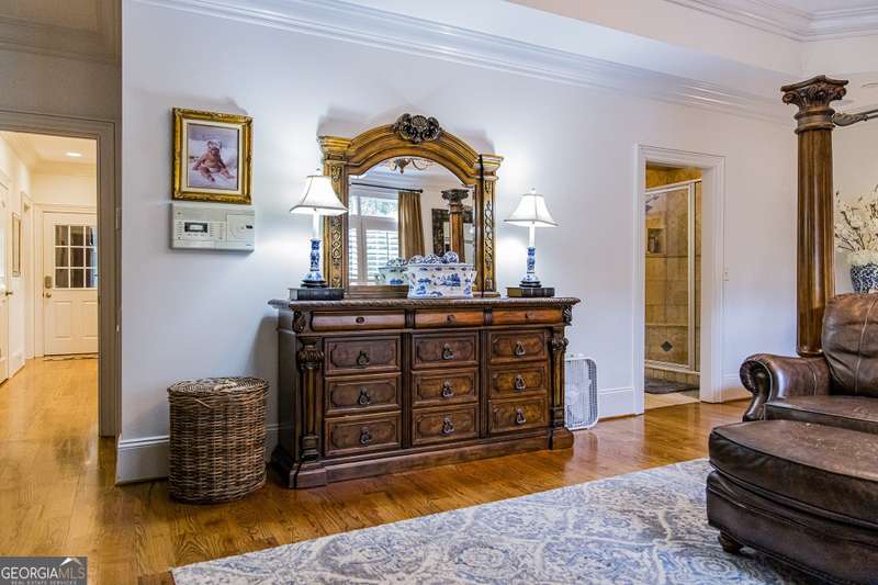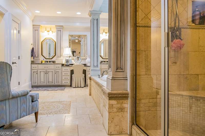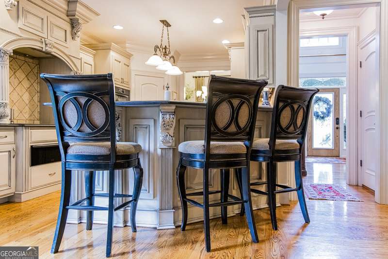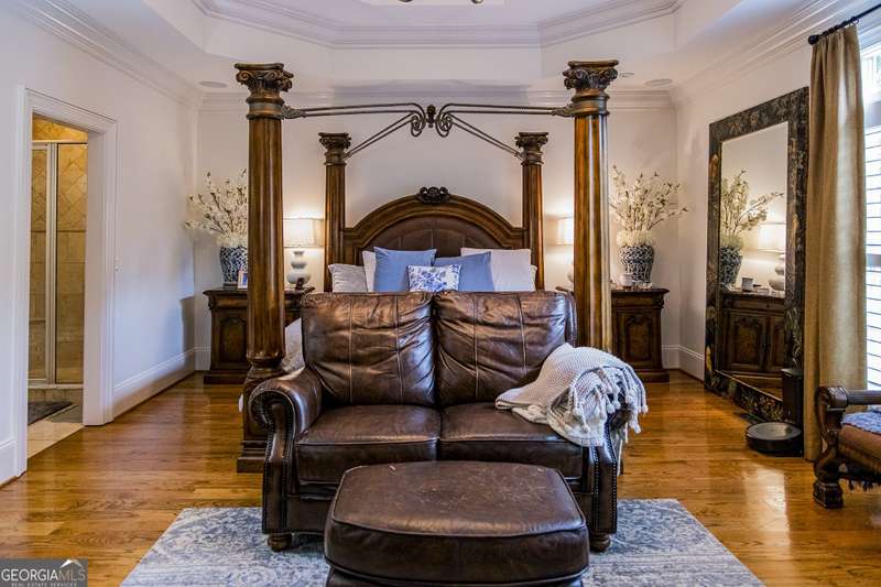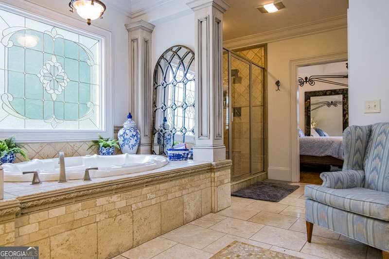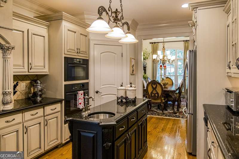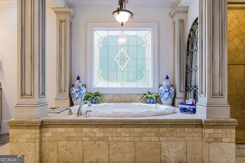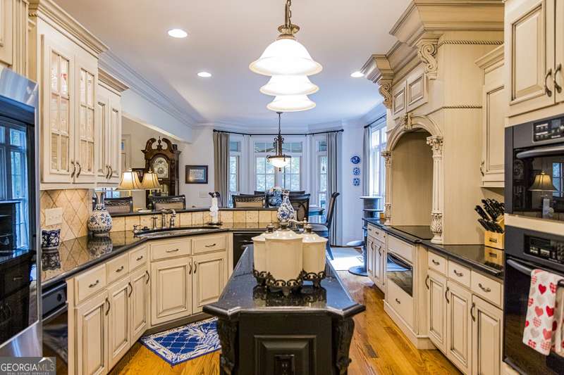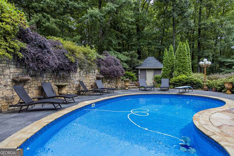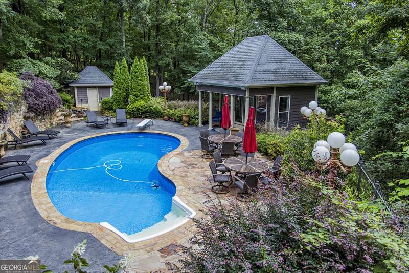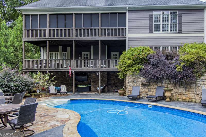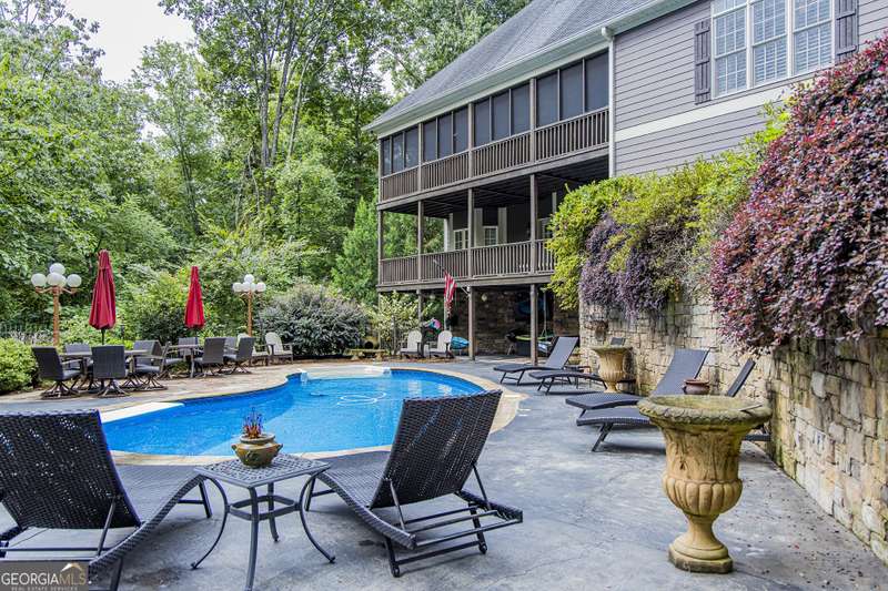 Welcome to your dream home in the tranquil Edenfield Estates subdivision - a stunning, custom-built residence offering 5 bedrooms, 4.5 bathrooms, and 6,813 square feet of refined living space. Designed with luxury, functionality, and timeless elegance in mind, this property delivers comfort and sophistication at every turn. Step inside to a grand foyer that introduces the home's upscale finishes and exceptional attention to detail. Expansive living areas feature tall ceilings, abundant natural light, and custom millwork, making the space perfect for both entertaining and everyday life. The kitchen is a chef's dream - outfitted with premium appliances, custom cabinetry, and generous counter and storage space, it effortlessly blends style and practicality for both gourmet meals and casual cooking. The main-level primary suite offers a true sanctuary, complete with a spa-inspired bathroom featuring a soaking tub, walk-in shower, dual vanities, and a spacious walk-in closet. Four additional bedrooms are generously sized, and the remaining 4.5 bathrooms are equally well-appointed to ensure comfort for guests and family alike. Beyond the bedrooms, you'll find thoughtfully designed bonus spaces including a formal dining room, dedicated home office, and a fully finished basement that expands your living options. The basement boasts a home theater, second kitchen, second porch overlooking the pool, and a private bedroom and full bath, along with an attached third garage - perfect for use as an in-law suite or guest quarters. Outdoor living is just as impressive. The beautifully landscaped backyard features a resort-style stone-lined pool and a two-story, 198 sq ft pool house with a mini bar and full bath - ideal for entertaining or relaxing in your personal oasis. Don't miss this rare opportunity to own this custom home with every amenity thoughtfully included. Schedule your private showing today and experience this exceptional property firsthand!