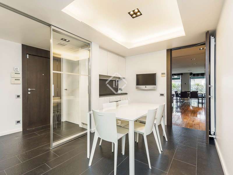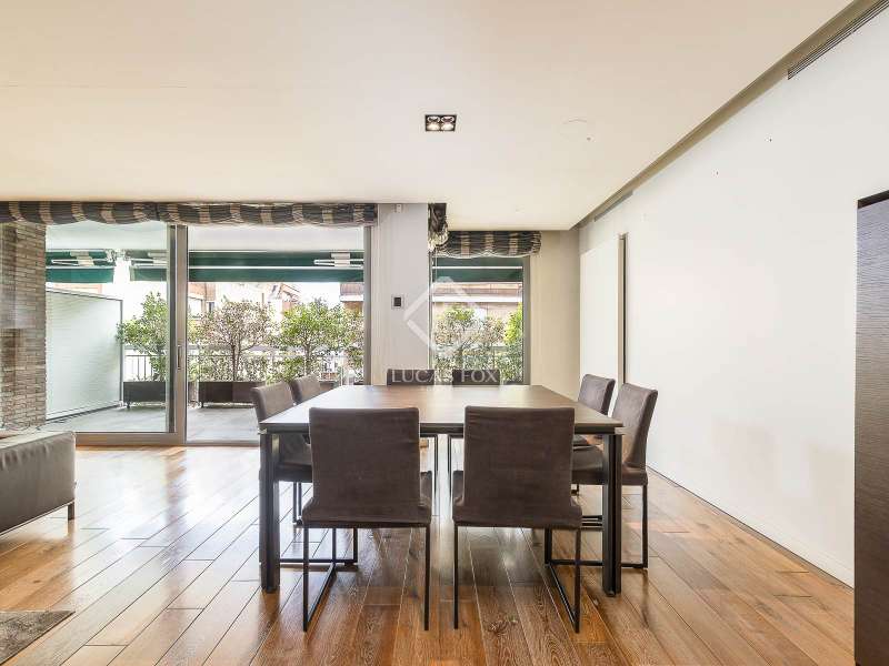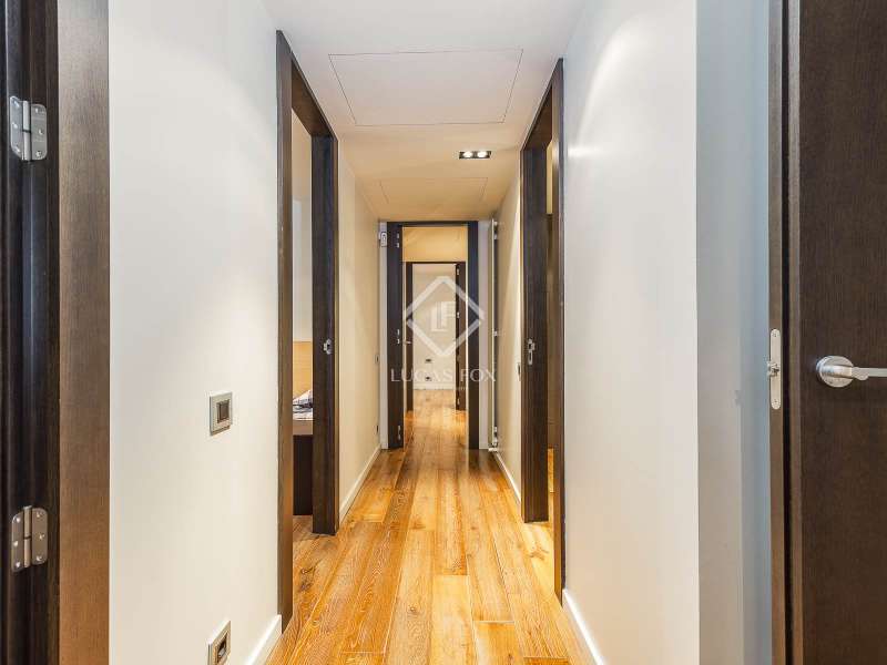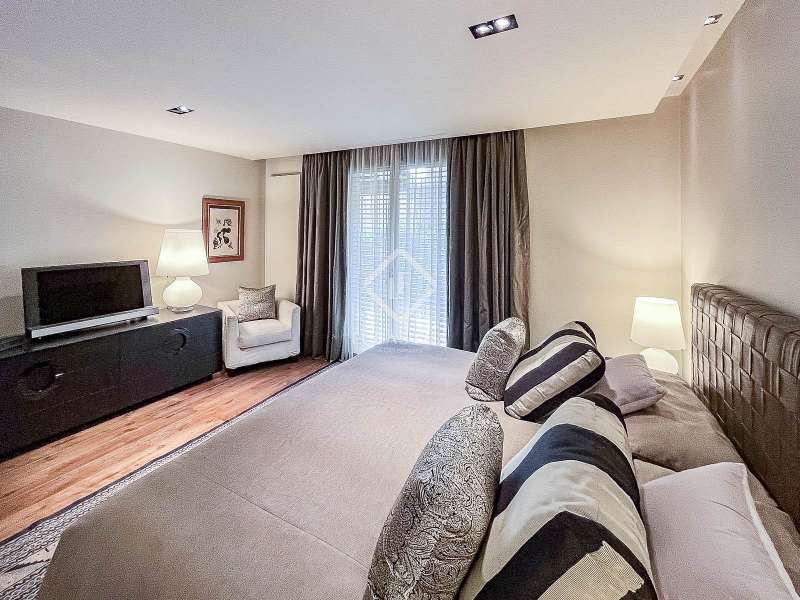 On the third floor of an impeccably maintained 1970s building with a concierge service, lies this approximately 220 m² property . The property stands out for its spaciousness, clear layout , and excellent state of preservation. Upon entering, a hall gracefully organizes the spaces. To the left, a nearly 50 m² living room opens its floor-to-ceiling windows to a 30 m² terrace, creating a seamless flow between the interior and exterior , providing light and a pleasant sense of spaciousness. Opposite, the perfectly designed kitchen, equipped with Gaggenau appliances , combines functionality and elegance. Adjoining this space are a service area and a separate utility room room with a Miele washer and dryer. The maid's room has its own bathroom and shower. The night area features an en -suite bedroom with a dressing room and private bathroom, also access onto the terrace. Two double bedrooms, located in the centre, share a full bathroom , while at the rear is another suite with its own bathroom . All bedrooms are exterior, providing natural light and cross-ventilation throughout the day. Natural wood wooden floors run throughout the property, reinforcing its warm and timeless character. It features ducted air conditioning with independent regulation in each room and central heating. The property is completed with two parking spaces on La Finca, a private storage room , and a shared one. The renovation, carried out several years ago with skill and taste, has respected the elegance of the original construction, thus offering a spacious, well-balanced, and perfectly maintained apartment.