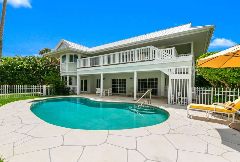 Beach house with sweeping ocean views and a rare 50' deeded ocean front beach parcel. Recently renovated four bedroom, 3.1 bath home with Pool and Elevator. Two story home with First floor featuring 2 bedrooms, bathroom and large family room guest quarters overlooking the pool. Second floor with 2 en-suite bedrooms, dining area, kitchen and large family room plus wrap around deck overlooking the ocean.