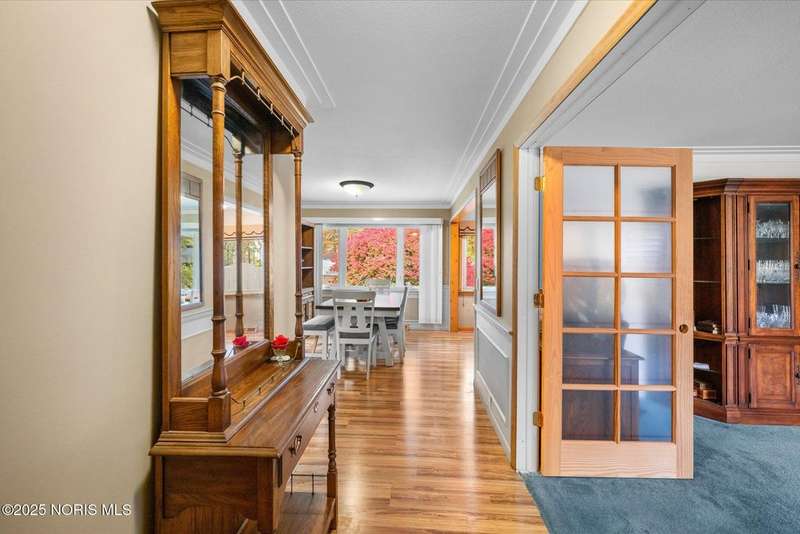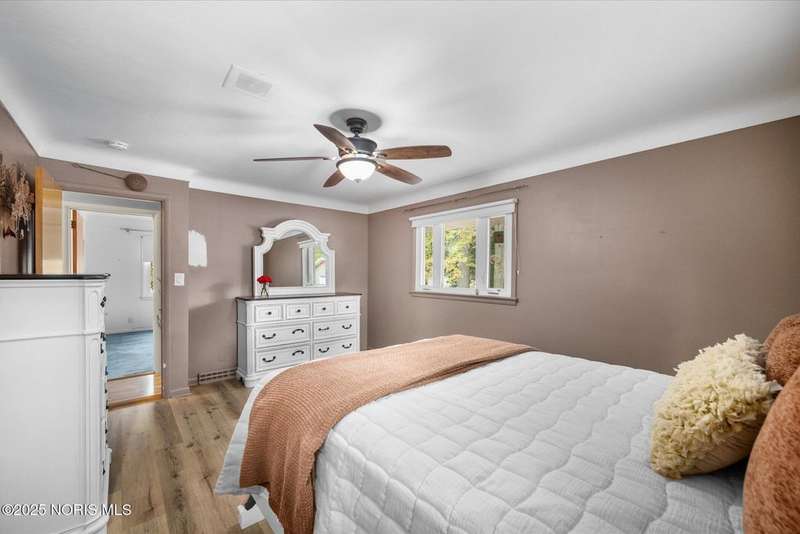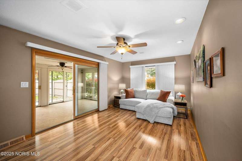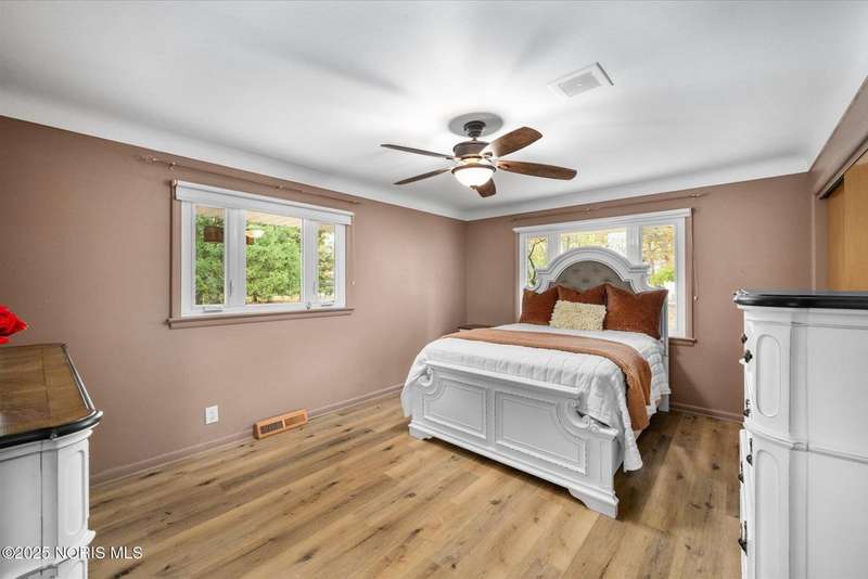 Charming brick ranch located in one of Swanton's most desirable neighborhoods, situated nearly on an acre of beautifully landscaped land. This well-maintained home features 3. beds and 2 baths, offering comfortable living. Enjoy the 10 x 15 patio enclosure, perfect for relaxing. The property boast a small orchard with 13 fruit trees including apple, cherry, plum, peach, nectarine, pear and one chestnut tree. Additional highlights include new windows, second garage, and spacious yard. This rare find combines country charm with convenient proximity to town. Must see!