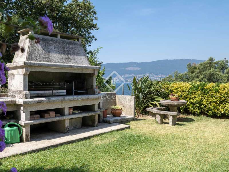 On the peaceful and evocative coast of Rande, just 15 minutes from Vigo Airport and perfectly connected to the Redondela AVE station, lies this architectural gem of over 400 square metres, spread over three floors and surrounded by a history that permeates every stone. With privileged views of the magical island of San Simón and the Vigo Estuary, this property is truly unique. Built with Galician stone over 50 years ago, its façade has stood the test of time, a testament to its solidity and character. Surrounded by Mediterranean gardens and relaxation areas, a pool stands out, visually blending with the blue sea, creating a contrast that is as striking as it is relaxing. Upon entering, the foyer leads us to a spacious and bright living room, where the panoramic view of the sea enters through the windows as if it were part of the furniture. On each of its three floors, the rooms open onto the ocean, offering increasingly impressive views. One of the most special corners of this home is its large covered porch, where we find an outdoor dining area accompanied by a traditional barbecue grill. Imagine long summer after-dinner conversations with friends, with the aroma of the sea mingling with that of grilled seafood, while the sun sets over the estuary and dyes the sky golden. This space, more than an extension of the house, is an invitation to live slowly, outdoors, and surrounded by beauty. Ideal as a family residence or as a retirement home with a Galician essence, this property combines history, location, and landscape. Please contact us for further information.