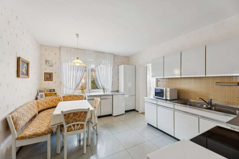 This well-kept two-family house from 1958 stands on a plot of 887 m² and offers a wide range of potential uses. With a living space of around 165 m² and six rooms, the property is suitable for families as well as for prospective buyers who would like to use the property flexibly as a detached or semi-detached house. The house has been continuously extended and modernized over the past decades. In addition to the original construction year of 1958, an extension was added in 1965, which was supplemented by an additional storey in 1975. These measures have created a well thought-out space that can be optimally adapted to different needs. The last fundamental modernization was carried out in 2002, with the gas central heating in particular being replaced. The façade, which was painted in 2018, ensures an attractive exterior appearance. The room concept extends over two levels and comprises three rooms, a kitchen and a bathroom on each floor. The house has a full basement and therefore offers additional usable space. The quality of the fittings is of a solid standard and offers a reliable basis for individual design ideas. The spacious garden plot is a particular highlight. Whether as a play area, for relaxation or for garden lovers - the entire outdoor area can be used in a variety of ways. The double garage not only offers space for two vehicles, but also additional storage space for bicycles, garden tools or other personal items. Overall, the house makes a very well-kept impression. The combination of constant maintenance and regular modernization creates a pleasant living ambience. The property is in good condition and is available immediately. Thanks to its design and layout, it can be used as a spacious detached house or divided into two separate residential units. The location is characterized by an attractive location with easy access to important facilities such as shops, schools and public transport.