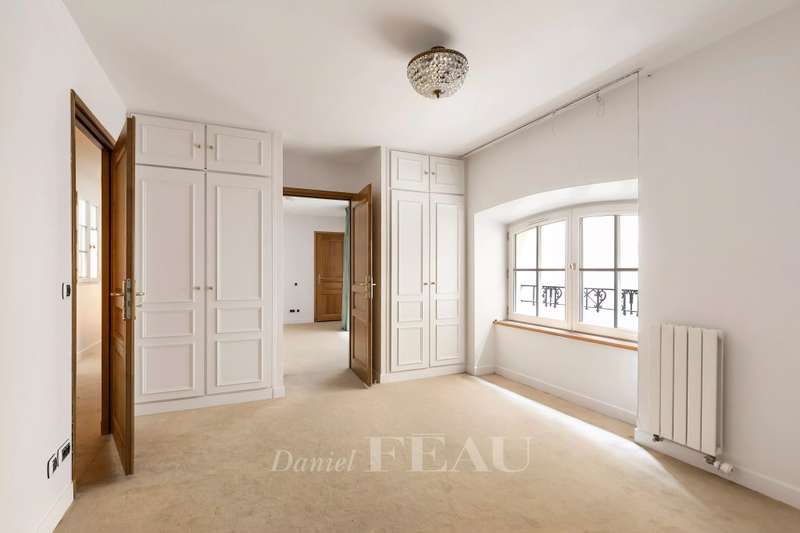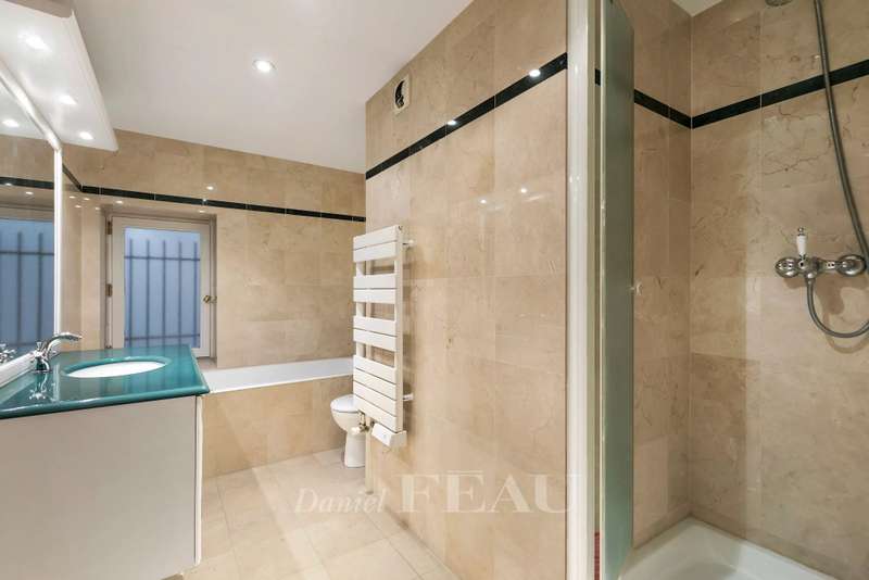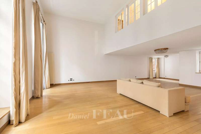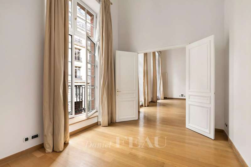 This beautiful split-level apartment in very good condition is on the 2nd floor of a revamped late 19th century building with a caretaker and a lift located between avenue Matignon, Faubourg Saint-Honoré and Place Beauvau. Offering 230 sqm of living space and overlooking a landscaped garden, it includes a 73 sqm living/reception room featuring 5-metre high ceilings, a dining room or study, a separate kitchen and a guest wc. The upper floor comprises three suites with bath or shower rooms and dressing rooms, a utility room and a storage room. With two cellars. Three basement parking spaces may be acquired for a further 70000€ each.