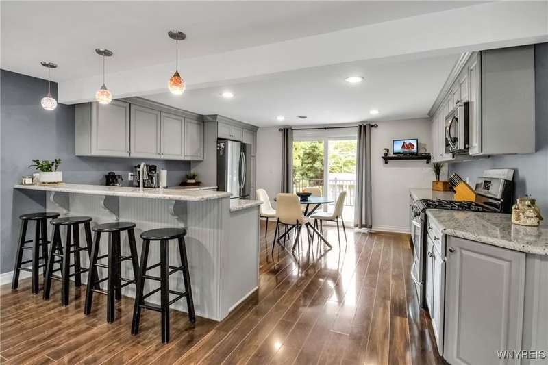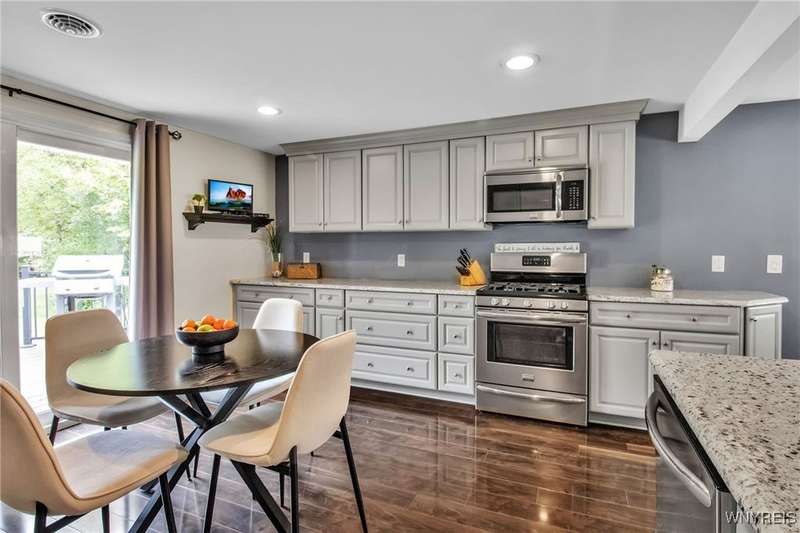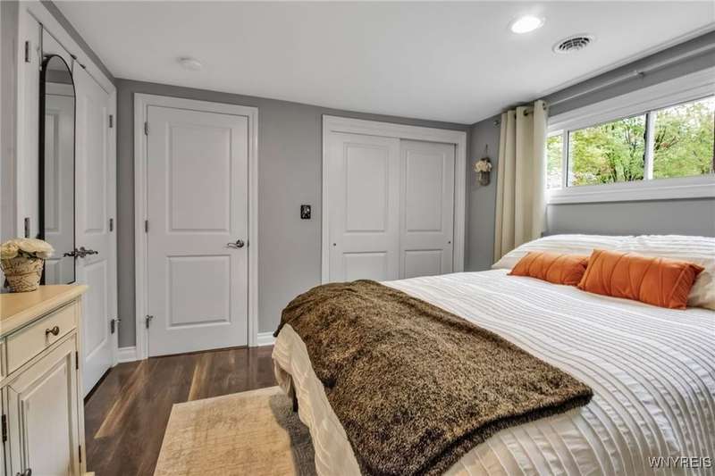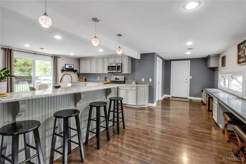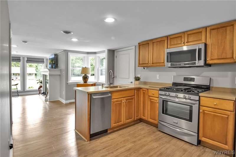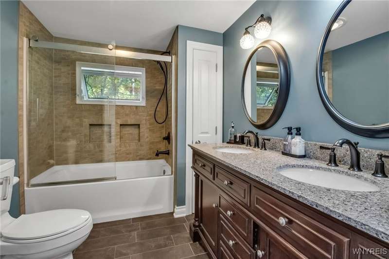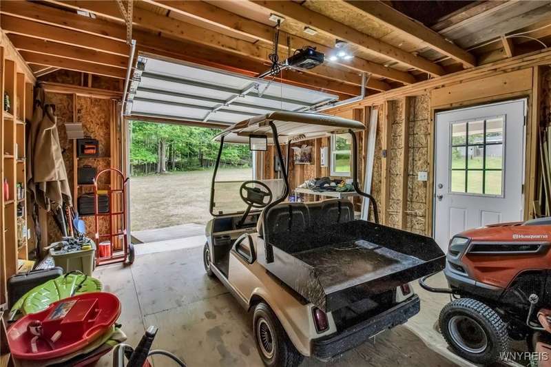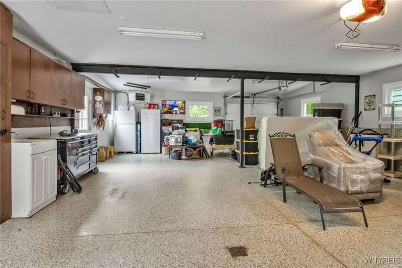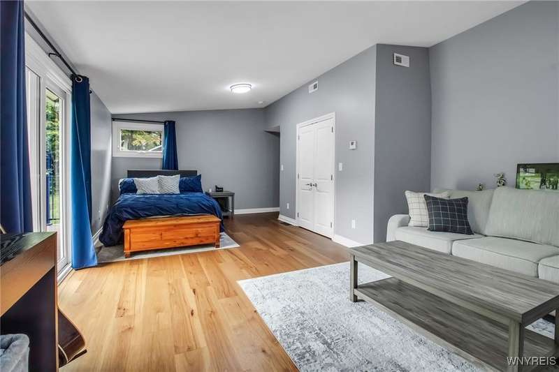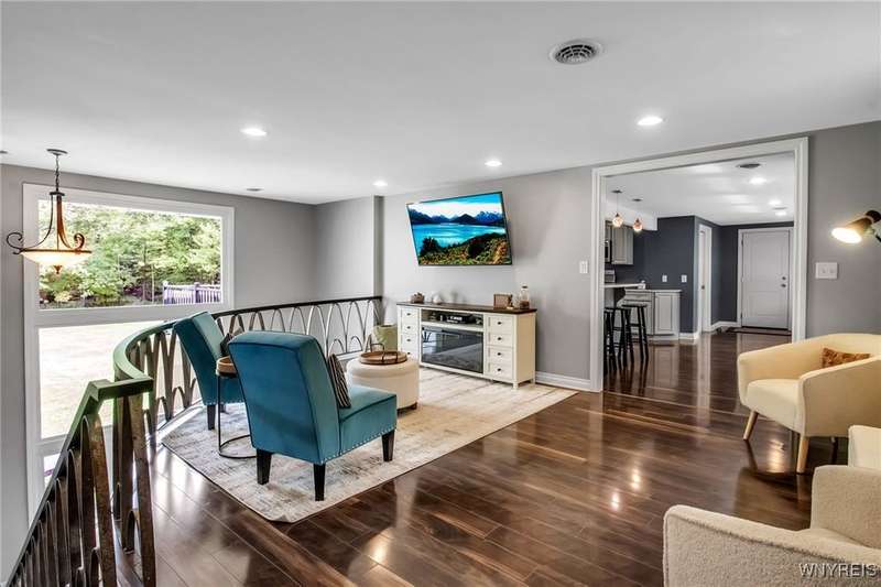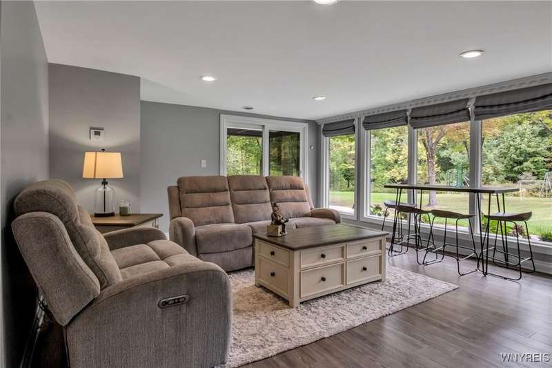This home is as unique as it is beautiful! It's full of surprises, each one better than the last. You simply must see it to believe it! Privately set on a sprawling 2.7 tree-lined acreage at the end of a dead-end road, it offers a rare combination of peaceful seclusion and everyday convenience, just minutes from Route 219 and the village of Orchard Park.Step inside and you're greeted by a bright, welcoming main level filled with natural light from large windows and sliding glass doors. The layout includes three comfortable bedrooms and two full baths, plus a spacious eat-in kitchen, with newer appliances, that opens to a charming deck?perfect for morning coffee or evening meals. The primary bedroom boasts a private porch as well, offering an ideal place to unwind and take in the views.Downstairs, the fully finished lower level has been thoughtfully designed as a complete in-law suite, with its own entrance, bedroom, full bath, and generous living space. On the lower level, you'll find two gas fireplaces that add warmth and character, and a third set of sliding doors that open to a covered patio?ideal for guests, BBQ, or simply spreading out.Additional features include central air conditioning, first-floor laundry, plus a second laundry area on the lower level. You'll also find an oversized 4-car attached garage with electric, water, and heater, as well as a versatile shed equipped with water, electric, and a garage door opener?ideal for a workshop, studio, or extra storage. There are a multitude of updates throughout including newer roof, water purifier, leaf gutters and more!From the natural light throughout to the private wooded setting, this is a home that truly has it all.Delayed negotiations begin 9/29 at 3 PM.