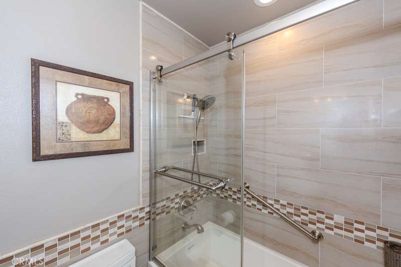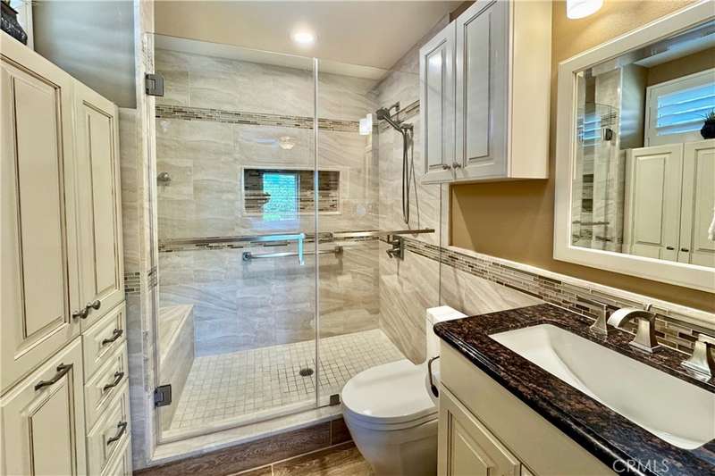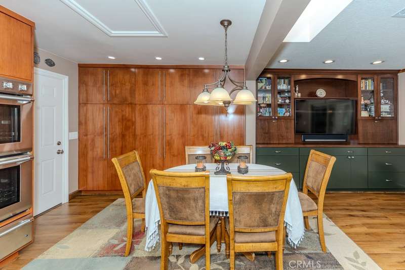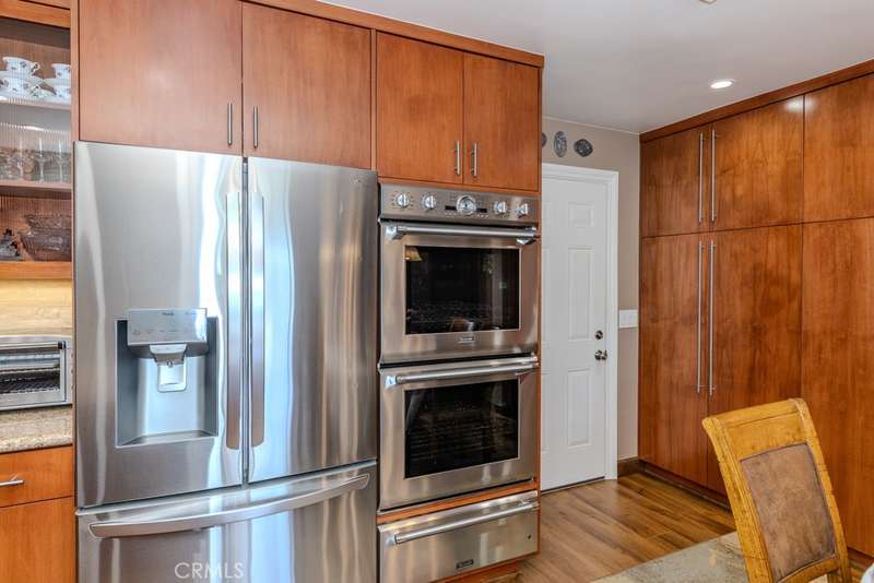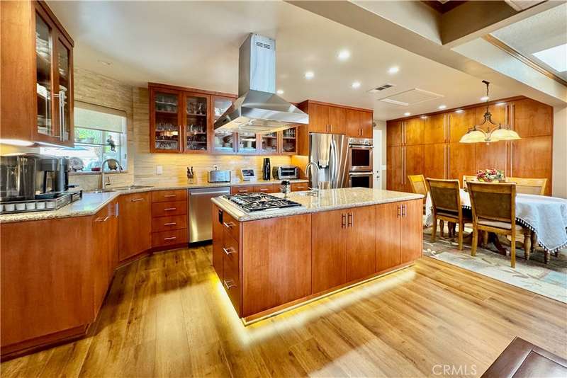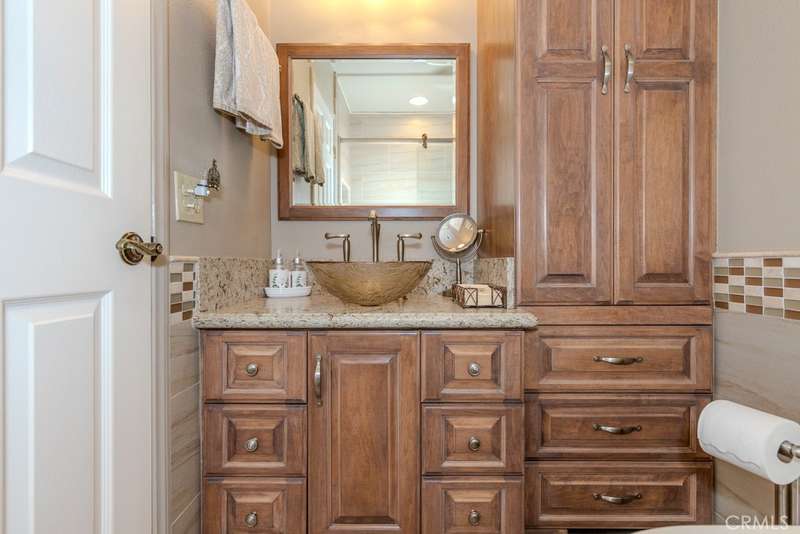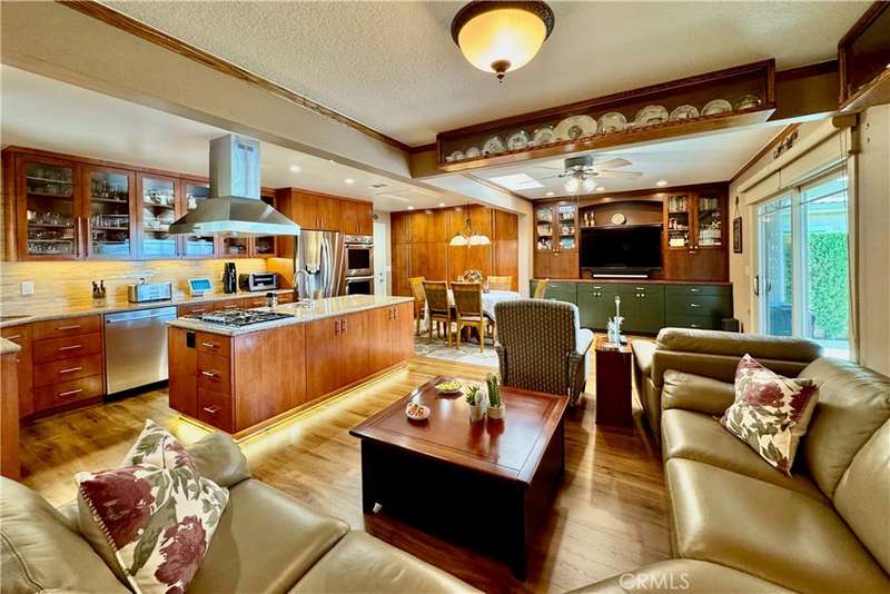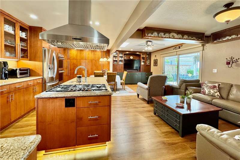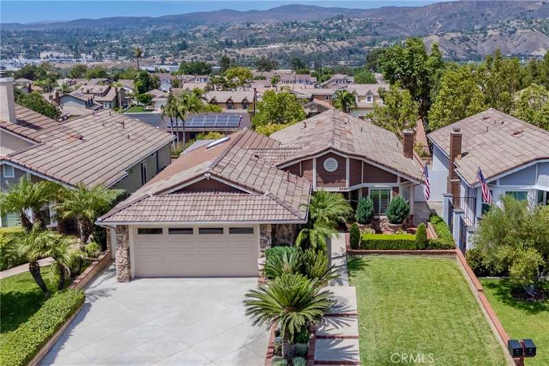 Beautiful single-story home in Anaheim Hills. Wonderful curb appeal, luxurious upgrades throughout and city lights and hillside views. Spanning over 1,500 square feet, the three-bedroom, two-bath layout has been thoughtfully expanded to create an open and inviting floor plan. At the heart of the home is a true gourmet kitchen featuring a custom island with prep sink, five-burner gas cooktop, and abundant storage. Included are Thermador double ovens, warming drawer, microwave, French door refrigerator, and a brand-new Bosch dishwasher. A dining nook and lots of additional pantry space complete the kitchen, which seamlessly flows into the spacious great room. The great room includes custom built-ins with a TV. The patio door highlights the view. The living room showcases a marble-tiled fireplace and opens to the formal dining area. Wide-plank flooring throughout, plantation shutters, upgraded dual-pane windows, and beautifully remodeled baths elevate the interior. Each bedroom includes a designer closet with custom built-ins, adding both function and style. The home also comes with a new washer and dryer, new water softener, garage cabinets, a newer A/C and furnace, and a whole-house fan. Set on a quiet street, this home also offers a two-car attached garage with insulated door, low HOA dues of $77 per month, and a low property tax rate of approximately 1.05%. Conveniently close to shopping and dining, this residence is move-in ready and represents Anaheim Hills living at its finest.