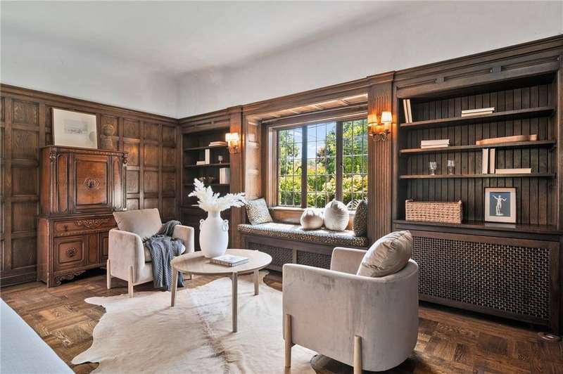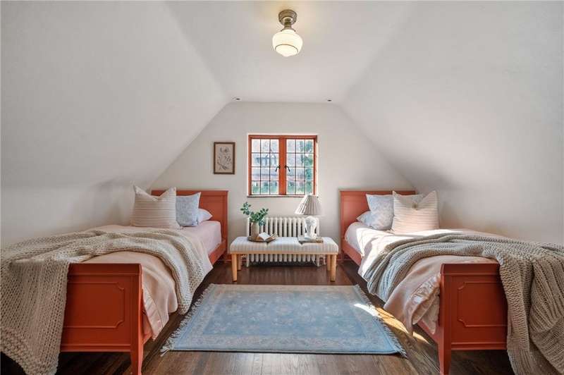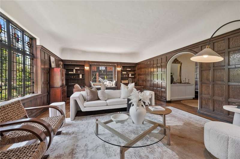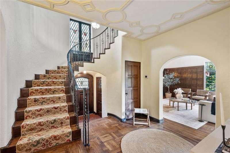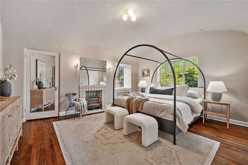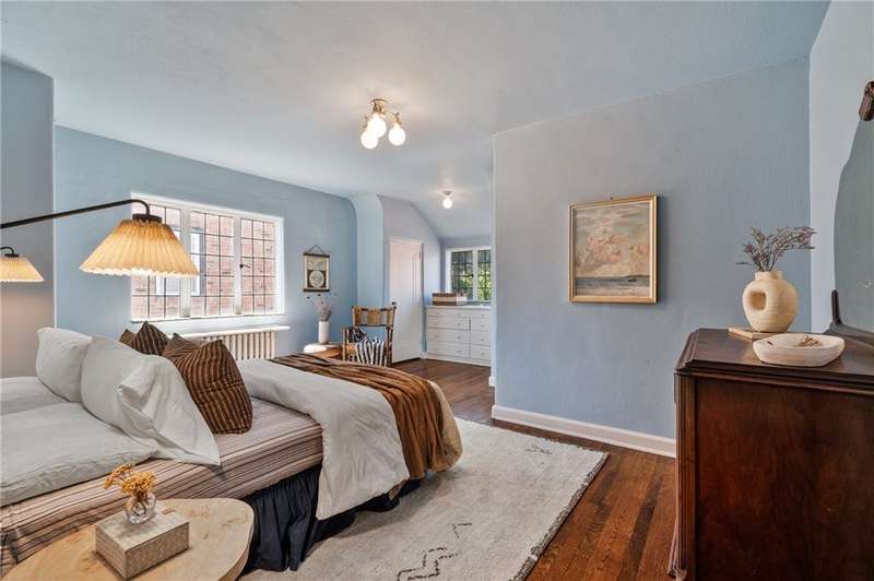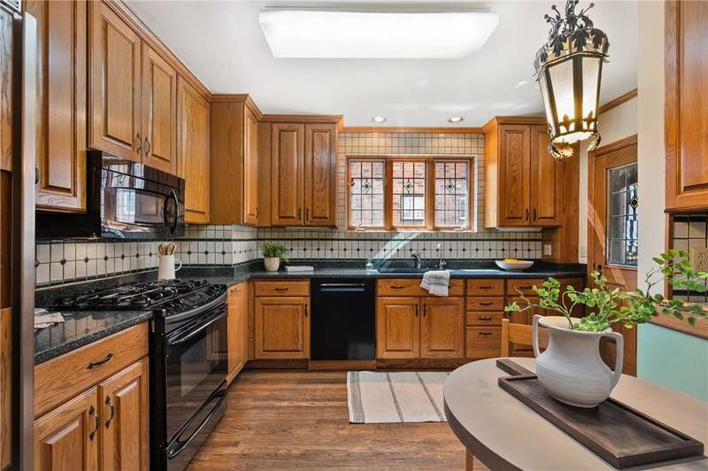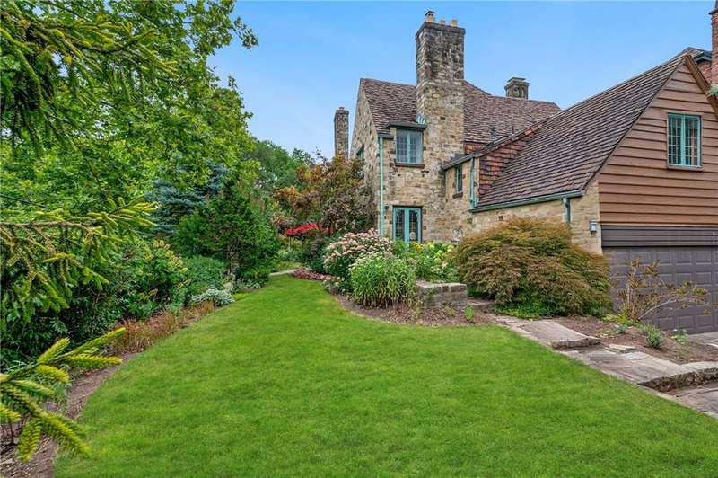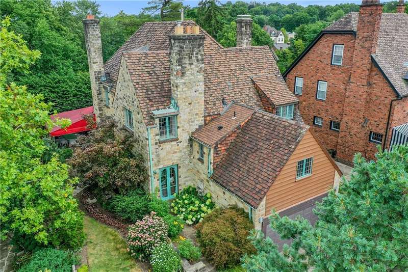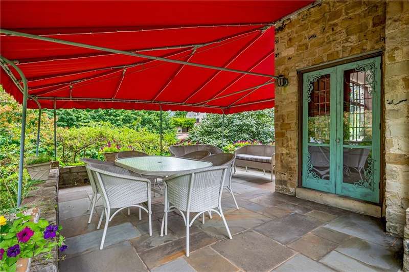 Discover this stunning stone residence located on one of Pittsburgh's most desirable streets. The elegant entryway leads to a breathtaking foyer featuring a beautiful spiral staircase and soaring ceilings. The expansive living room boasts a charming fireplace, exquisite detailing, and double doors that open to a lovely private patio and backyard. On the first floor, you'll also find a formal dining room, updated gourmet kitchen, and a cozy den. The second floor offers five spacious bedrooms and two beautifully updated bathrooms, including a lovely primary suite with a walk-in closet and a luxurious en-suite bath. The third level provides additional versatile space perfect for an office, game room, or more. The spectacular outdoor gardens are a true private oasis. Additional amenities include stained glass windows, beautiful built-ins, incredible natural light, central air, a two-car garage, and so much more. Enjoy an ideal location just blocks away from Frick Park and Bakery Square.