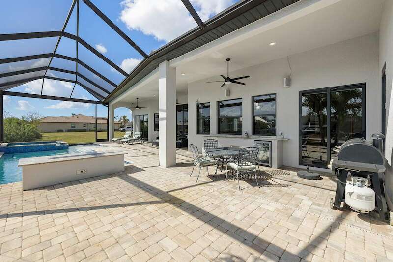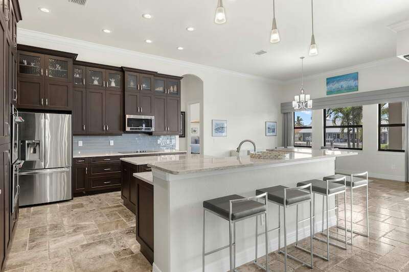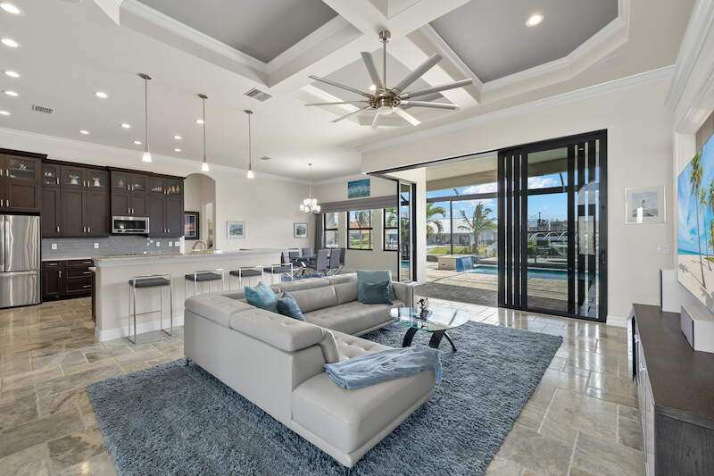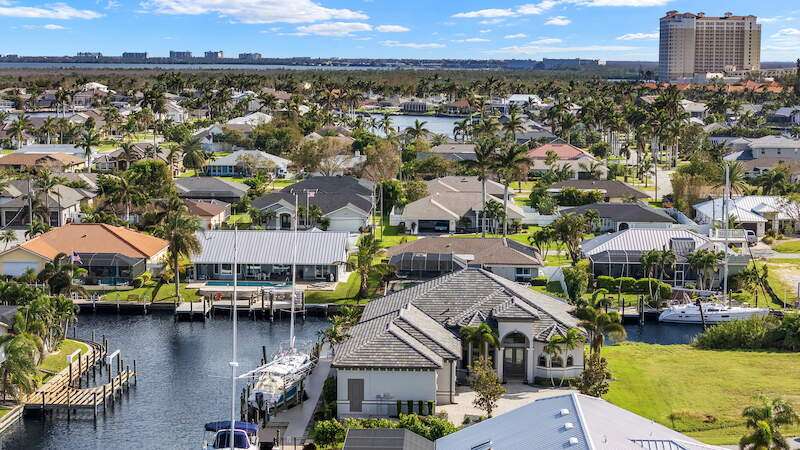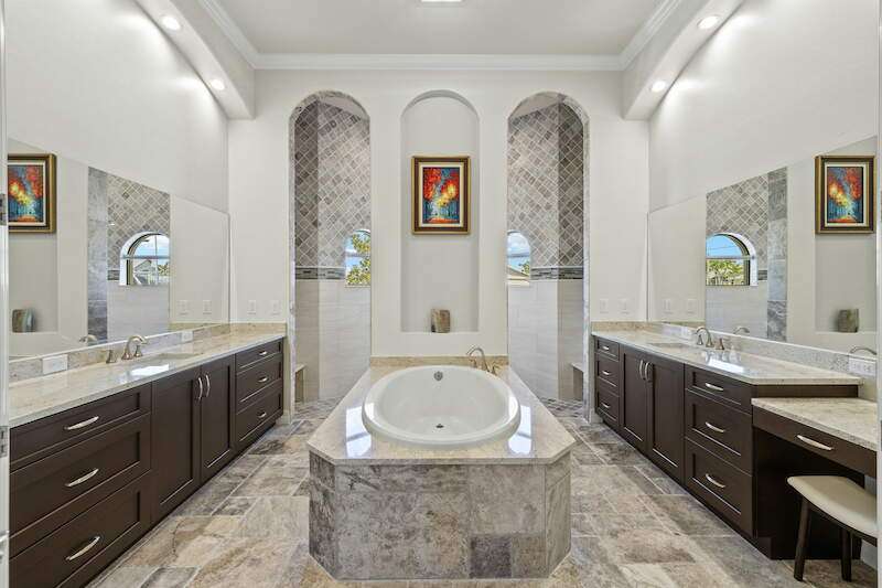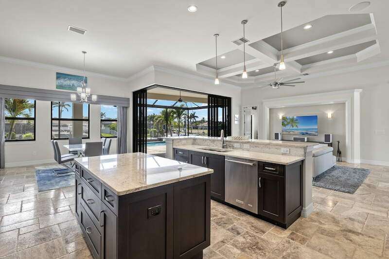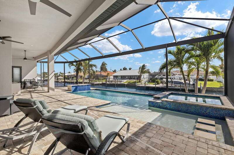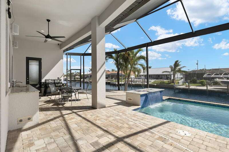 Introducing the exceptional Sinclair 2017 Builder's Showcase Home of the Year, a proud recipient of all nine awards in its category. This stunning custom-built Trinidad model boasts an impressive 12-foot ceiling height throughout, enhancing the sense of spaciousness and luxury. Set on a corner lot with 219 feet of seawall canal frontage, this residence is located on intersecting canals, providing direct access to the water without any bridges or locks. This prime location ensures unobstructed navigation, making it an ideal setting for boating enthusiasts. The gourmet kitchen features 11-foot handcrafted custom cabinets, two large islands with under-counter storage, and a two-level outer island equipped with a double sink and dishwasher. The raised bar top seats six and is complemented by a stylish wet bar with a new wine cooler and double oven. The primary bedroom is a luxurious retreat, featuring 8-foot sliders that open to the lanai, a coffered ceiling, dual walk-in closets by Design Closets, a walk-through shower, a six-foot soaking tub, and large dual vanities. The luxurious mother-in-law suite provides convenient access from both the garage and the main part of the house. This versatile space includes a living room and is equipped with kitchen cabinets, a countertop, sink, and refrigerator-ideal for independent living. The bedroom features a spacious walk-in closet, and the attached bathroom boasts a wide entry and a walk-in shower for ease of access. Key features of this home also include silver travertine flooring throughout, level 3 granite, a 17-foot ceiling in the entry study, two new AC units, and triple-pane, argon-filled hurricane windows and impact-resistant doors.The outdoor space is a breathtaking retreat, enhanced by expansive 90-degree, 10-foot sliding doors that create a seamless transition between indoor and outdoor living. The generously sized lanai was thoughtfully designed to minimize columns, offering unobstructed views of the tranquil canal. It features a luxurious custom saltwater pool, an eight-seat spa with stunning fire and waterfall elements, and elegant designer pavers that add sophistication. Additionally, the lanai includes a convenient food preparation countertop with a sink and bar refrigerator, along with an outdoor shower for ultimate relaxation and enjoyment.This award-winning home includes a slip for a large sailboat, a 44-foot, 12,000 lb Synergy boat lift, a 32-foot canopy, and a lower dock for kayaks. The spacious three-car garage features a dedicated workshop area, a second electric box for expansion, a generator hookup, and a Tesla EV charging station. Hurricane impact insulated garage doors enhance security. A pull-down ladder and Versa Lift System offer easy access to an additional 580 sq. ft. of attic space, accommodating up to 250 lb boxes.Arrange your exclusive showing of this exceptional dream home today-this opportunity won't last long!