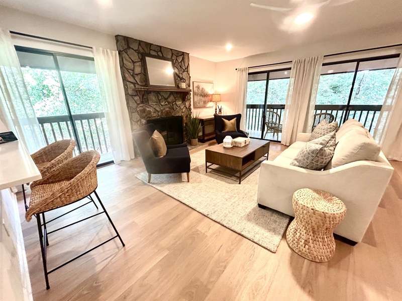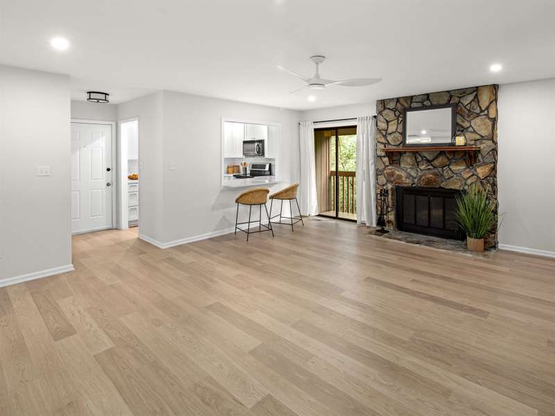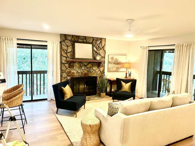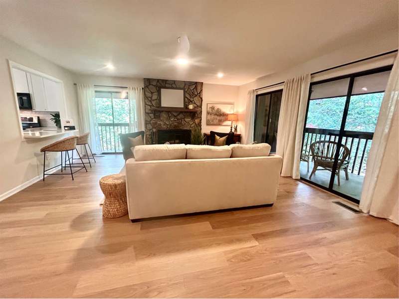 REDUCED & READY TO SELL! Completely remodeled & ready to impress! This brand new feeling 2 bed, 2 bath top floor end unit condo offers easy, stylish mountain living just minutes from Biltmore Park and Lake Julian. A bright, open layout with fresh flooring & paint and show stopper kitchen?new cabinets, appliances and a sleek breakfast bar?perfect for casual meals or entertaining. The spacious living area flows effortlessly to a peaceful back porch?ideal for morning coffee, catching seasonal breezes or curling up with a book. Being an Upper and End Unit also allows for a second balcony off the living room which is a nice feature! Both generously sized bedrooms include ample storage. The primary suite features a renovated ensuite bath with shiplap, new double vanity, beautiful custom mirrors & tasteful fixtures. With a cozy wood burning fireplace and in unit laundry, this turnkey gem blends comfort and convenience. HOA maintains exterior grounds and covers lawn care. Minutes to dining, movies, airport access, and top rated schools, this one of a kind condo is perfect for full time living or a serene weekend retreat! This can be a rental/investment property.