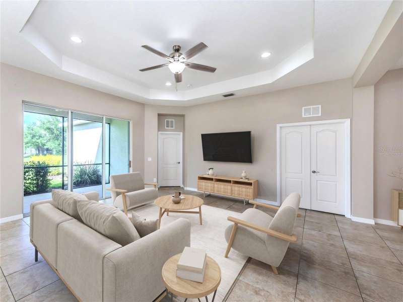 One or more photo(s) has been virtually staged. Tenant in place until Feb. 2026. Flexible closing options available if buyer requires additional time to close. *BRAND NEW A/C UNIT installed May, 2025*Community POOL* Maintenance FREE* Welcome to the highly sought-after, maintenance-free living community of Central Park in Lakewood Ranch. This immaculate 3-bedroom, 2-bathroom home, with an additional den, offers 2,148 square feet of thoughtfully designed open living space. Nestled on a peaceful cul-de-sac and a water view, this residence combines privacy with beauty. Upon entry, you are welcomed by an open-concept floor plan that seamlessly integrates elegance with functionality. The modern kitchen, featuring stainless steel appliances, granite countertops, and ample cabinetry, is designed for both the cooking enthusiasts and those who enjoy hosting. The master suite serves as a private retreat, offering spacious walk-in closets and a en-suite bathroom complete with dual vanities. Two additional well-appointed bedrooms offer ample space for family, guests, and a large den for a home office. Step outside onto the screened lanai and enjoy the serene, private backyard with a tranquil water view – an ideal space for relaxation or outdoor activities. The cul-de-sac location ensures minimal traffic, making it a safer and more peaceful environment for families. As a resident of Central Park, you will have access to a wide range of community amenities, including (Heated swimming pool), two dog parks, playgrounds, a splash park, and picnic pavilions ideal for family gatherings. Enjoy tennis and pickleball courts, as well as baseball and soccer fields, all set amidst miles of scenic walking and biking trails. This home is centrally located within Lakewood Ranch, providing convenient access to top-rated schools, shopping, dining, and entertainment options. Don't miss the opportunity to own a home in one of the most desirable neighborhoods in Lakewood Ranch. Schedule a private tour today and discover the perfect combination of comfort, and community.