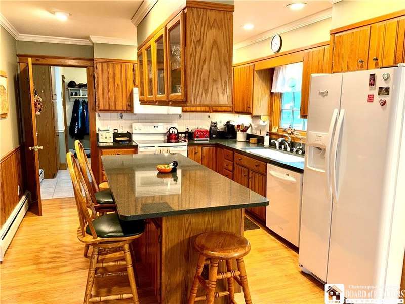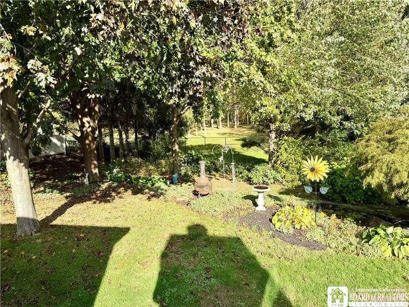 Beautifully Maintained Custom Home on One Acre!Custom-built 3-bedroom, 2.5-bath home situated on a beautifully landscaped one-acre lot featuring a decorative pond, custom shed, and partial fencing! The modern kitchen offers quartz countertops, a breakfast island, and a bright dinette bay area. Enjoy the cozy den just off the kitchen and the newly added, 225 sq ft, heated and air-conditioned Florida room that brings the outdoors in while overlooking the deep backyard and gardens.Gorgeous hardwood floors flow through the living room, dining room, hallway, and all three bedrooms. Elegant woodwork, cove moldings, and several pocket doors add warmth and charm throughout. The home also features a spacious formal dining room, a gas fireplace in the living room, a hallway cedar closet, and a convenient first-floor laundry with pantry and half bath. Primary bedroom with double closets and en suite bathroom! Full poured concrete basement with endless potential! Culligan Water Softener included!Additional updates include Andersen windows and doors, newer vinyl siding, and a circular concrete driveway. Roof replaced in 2010. A truly inviting home inside and out!
