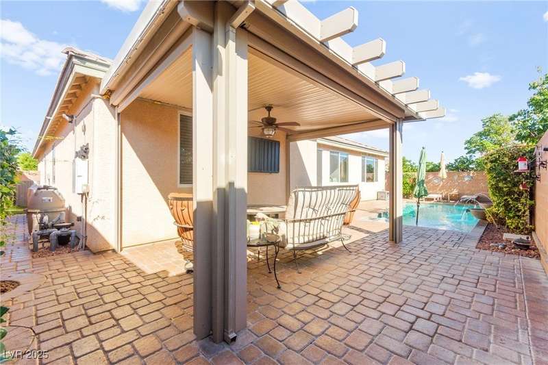 Welcome to this immaculately presented one story stunner with SIDs PAID OFF in the heart of Providence with 4 bedrooms (including a spacious primary suite as well as another JUNIOR ENSUITE offered), 3 FULL bathrooms, 3 car garage with EPOXY flooring and camera keypad at garage access. This home has a NEW HVAC SYSTEM installed in 2024, NEW water heater installed in 2024, NEW springs on garage door, NEW shades and NEW electric blinds. Smart light bulbs are also installed in the kitchen, dining and primary suite. The yard is a quiet oasis with a dazzling pool and covered patio with electric shades. This absolute TURNKEY property will also include all of the appliances as well as water softener for a ready to move in home!
