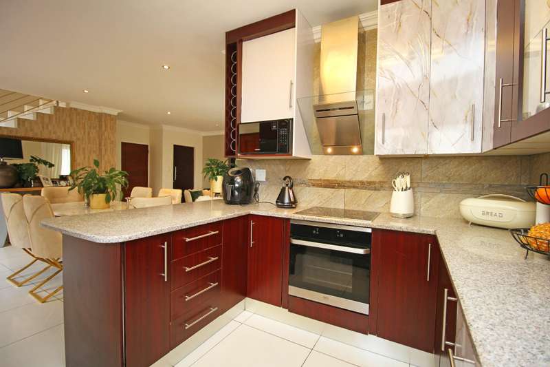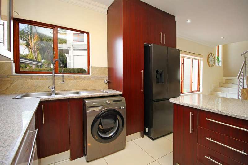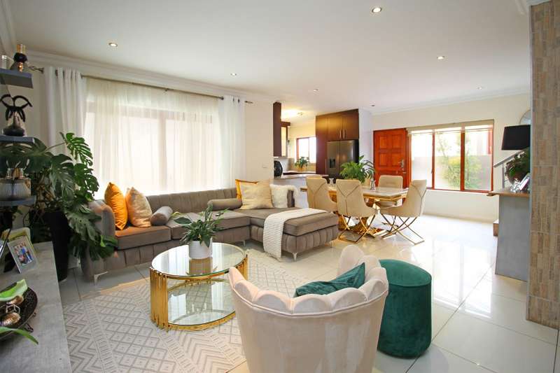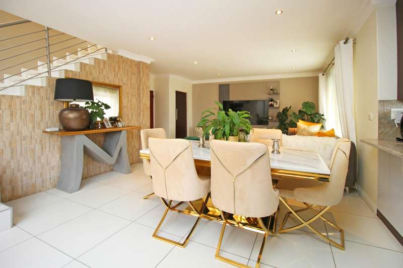 Stylish 4-Bedroom Townhouse with Private Garden and Pool in Secure Complex in Amorosa Step into comfort with this modern classic double-storey townhouse, perfectly situated in a secure, pet-friendly complex. An Elegant, Sophisticated Designer Home Showcasing: Upstairs: Four beautiful bedrooms, including a luxurious main bedroom with ensuite bathroom and balcony, a second spacious guest bedroom also ensuite, and a third full bathroom to service the remaining two bedrooms - ideal for singles or couples for modern family living. Downstairs: A welcoming elegant open-plan living area and design kitchen for cozy and comfortable modern family living. A compact kitchen designed to optimize space to deliver full functionality, cooking, cleaning, and storage, within a limited footprint. The living area opens onto a covered patio through wooden sliding doors overlooking the sparkling pool and expansive garden, creating the perfect setting for relaxed family time or effortless entertaining. Additional Highlights: ?Çó Double automated garage ?Çó Extra parking space for either a trailer or guests ?Çó 4 Good sized bedrooms ?Çó 3 Bathrooms (2 ensuite) plus guest toilet neatly tucked away under the staircase ?Çó Covered patio ?Çó Extra storage room ?Çó Pet-friendly estate living ?Çó Secure and tranquil environment with electric fencing, access gate and guard ?Çó Prime Amorosa location This home offers the perfect balance of comfort, convenience, and lifestyle ?Çö ready for you to move in and enjoy.