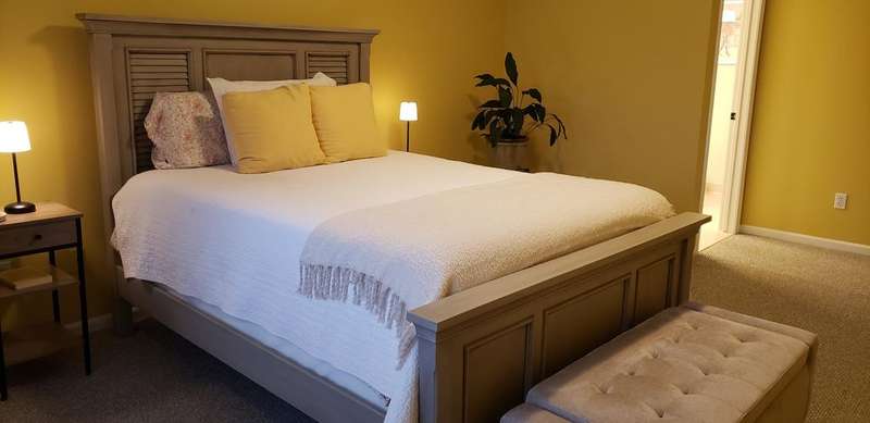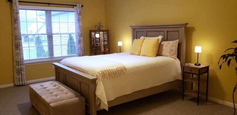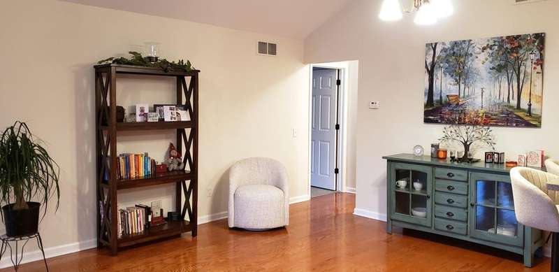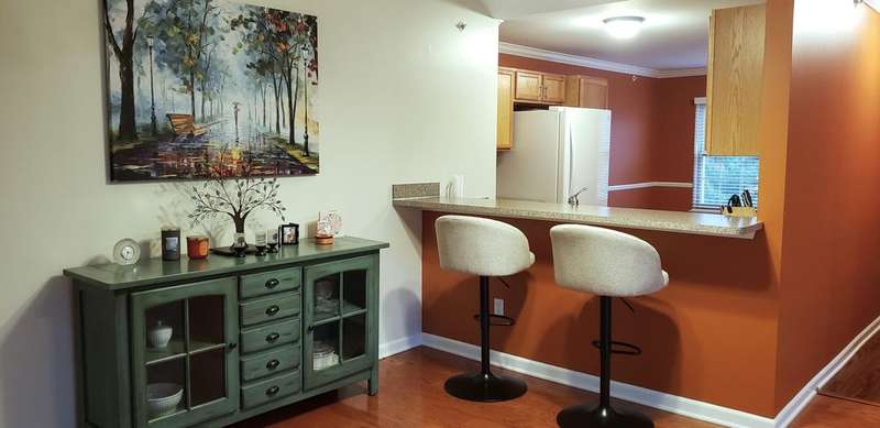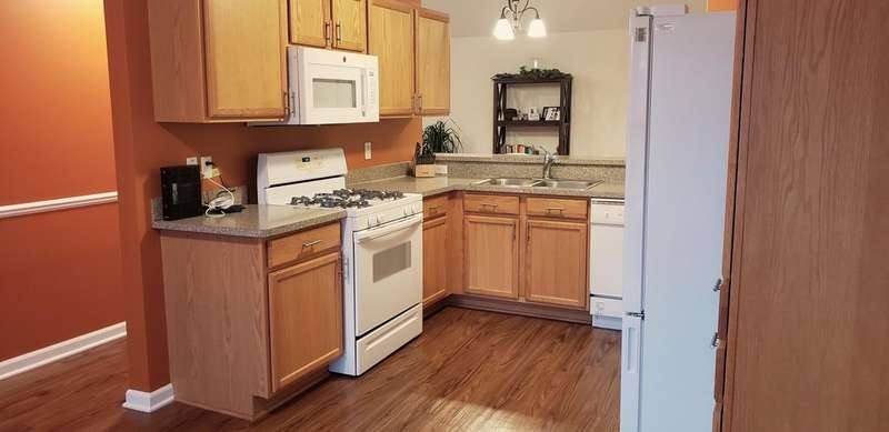 Super sharp end unit upper ranch style condo with private entrance & attached 1 car garage. Bright & airy, this open concept condo has vaulted ceilings in great room with large windows, gas fireplace, combination dining area along with snack bar counter. Breakfast nook in kitchen as well. New in 2024, microwave, Trek deck, Quartz countertops/faucets in both baths. Fresh interior paint, new interior door handles, hinges, switch plates & light fixtures in 2021. New in 2020, windows & plantation style blinds. Hardwood flooring in great room. Master bedroom is 19x12 with walk in closet & ensuite bath. Second bedroom is 15x12 currently being used as an office with lovely view. Association fee includes water. Low Van Buren Twp taxes. Lots of walkways to enjoy. Auxillary /guest parking across from garage. Beautiful trees throughout the complex.