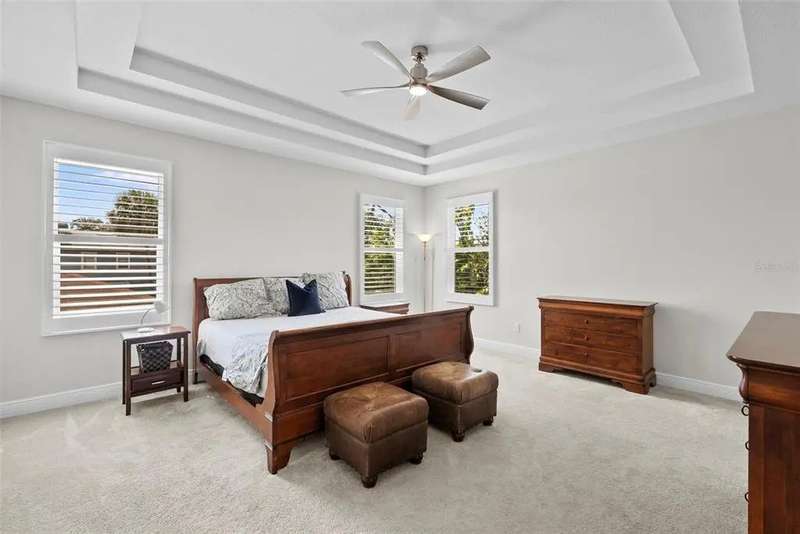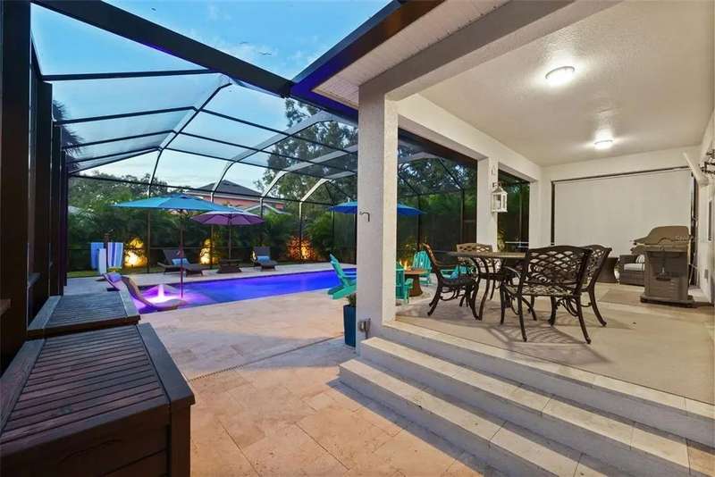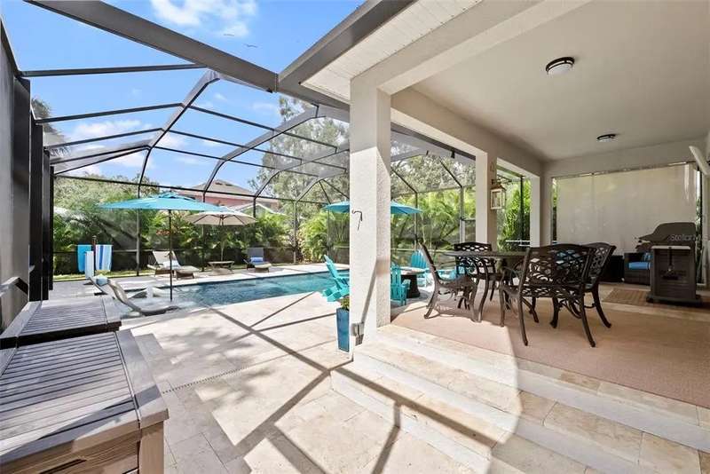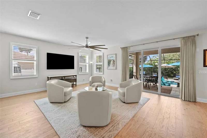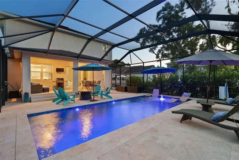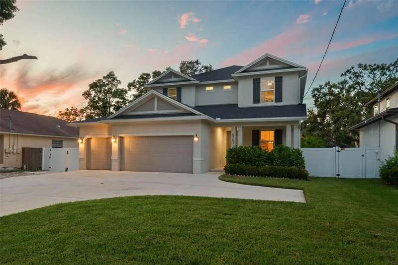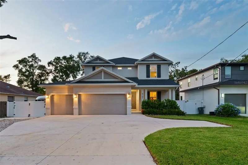Welcome to this impeccably built 2023 POOL home, perfectly situated on an oversized lot in a no-flood zone in the heart of South Tampa. Designed with modern luxury, energy efficiency, and everyday comfort in mind, this spacious residence truly stands out. Step inside to an open and inviting floor plan featuring 4 bedrooms, 3 full bathrooms, and a versatile bonus loft. The first-floor bedroom and bath are ideal for guests or multi-generational living. The gourmet kitchen is a chef’s dream with stone countertops, a stainless farmhouse sink, high-end appliances, and oversized pantry. The open-concept great room provides flexible space for dining, entertaining, or a home office, while the adjacent family room creates a cozy space for everyday living. Outside, enjoy your private backyard oasis with a covered lanai, beautifully designed pool, and large fenced yard—perfect for relaxing or entertaining. A full working shed adds extra utility, and there’s additional parking for a boat or RV. Upstairs, the primary suite offers a spacious retreat with a spa-like bath featuring a soaking tub, walk-in shower, and large custom closet. Two guest bedrooms share a stylish full bath, and the laundry room includes high-end washer and dryer for added convenience. Additional highlights include hardwood floors, plantation shutters, impact windows, and a 3-car garage with ample storage. Located just minutes from South Tampa’s favorite destinations—Westshore Marina District, Hula Bay, Cru Cellars—and offering easy access to Downtown Tampa and St. Petersburg, this home offers the perfect blend of luxury and lifestyle.