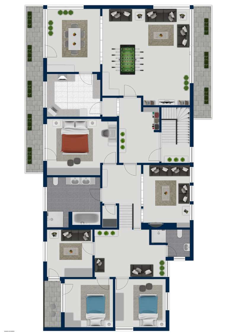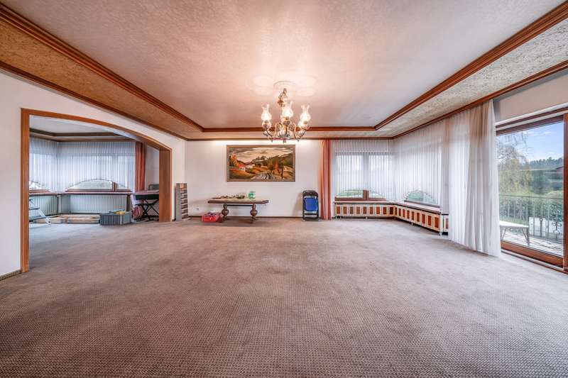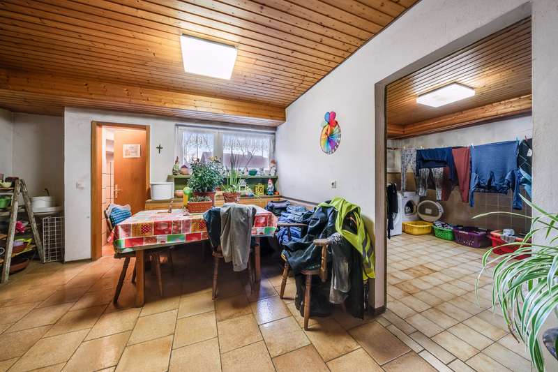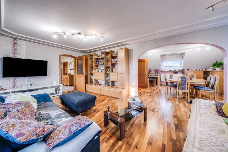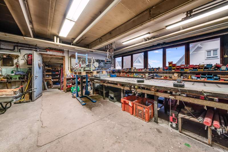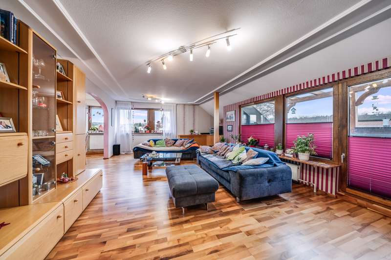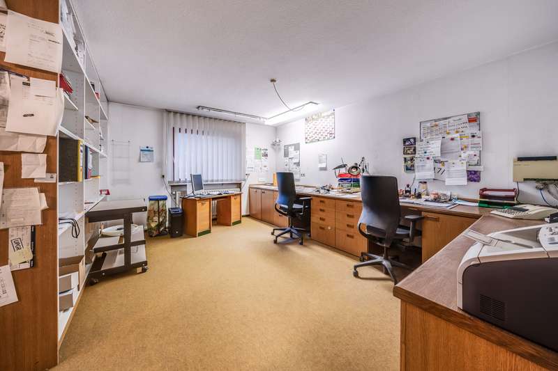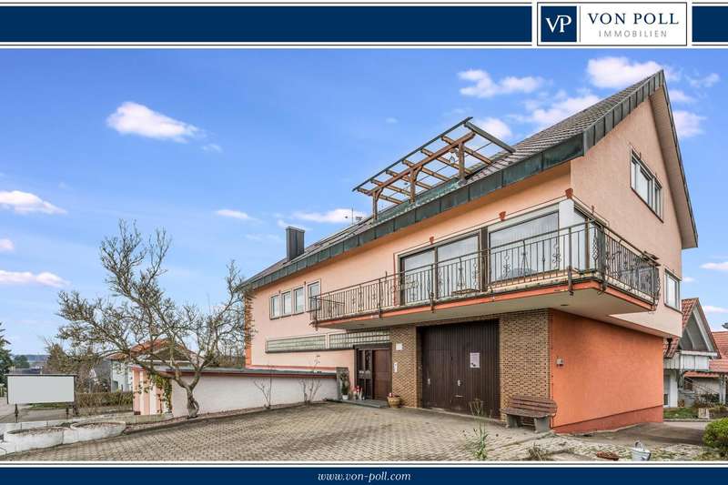 Living and working under one roof or real estate investment. We are very pleased to be able to offer you this residential and commercial building with plenty of potential for expansion and a total of approx. 360 m² of living space and approx. 260 m² of commercial space on a 683 m² plot for sale. It was built in solid construction in two sections, the commercial parts, i.e. both the first floor with approx. 200 m² and the mezzanine floor with approx. 62 m², were completed in 1972, while the living areas on the second floor with approx. 240 m² and the top floor with approx. 125 m² were added to the existing building in 1981. The property with two commercial and two residential units offers numerous opportunities for tradespeople, investors or property developers and anyone interested in multi-generational or working and living in a large space. The property was last partially renovated in 2014. As already mentioned, the property consists of several floors and areas, starting with the commercial, production-type space on the first floor, through the commercially used office space on the mezzanine floor, to a spacious apartment on the second floor and another spacious but somewhat smaller apartment on the top floor. There are a total of four rooms on the first floor. The staircase can be accessed via the house entrance, which is followed by a hallway on the first floor that provides access to the commercial areas. From the hallway, a door leads into the large production room, which makes up the majority of the space on this floor. This in turn leads to an adjoining storage room, which provides access to a room used as a lounge, which in turn leads to a laundry room and a guest WC. The areas are designed for current commercial use, but can also be converted for possible residential use. The hallway on the first floor also provides access to a separate small staircase, which can be used to reach the office space on the mezzanine floor. These consist of two smaller rooms, which could also be converted into a small apartment depending on the overall use of the property. The basement of the building can be reached via the large main staircase located directly at the building entrance, which is characterized by extensive usable areas, some of which could be converted due to the daylight rooms. There is also a large area here that is currently used for garage parking spaces and heating technology. Furthermore, the living areas on the upper floors can be reached via the main staircase. On the second floor, an approximately 240 m² apartment adjoins the staircase, revealing a spacious entrance area upon entering. From here, the living and dining room, which is characterized by extensive window areas, and the kitchen can be entered in a circular route. This also provides access to a further anteroom which feeds a bedroom, a bathroom with natural light, double washbasin, bathtub and shower as well as a storage room and also boasts a lounge area with a cozy tiled stove. A small staircase leads to another connecting room for two further bedrooms, an office and a small additional bathroom. The main staircase then leads to the approx. 125 m² apartment on the top floor. Upon entering, this offers an entrance area with a connection to a spacious living and dining room, which leads back to the entrance area in a circular route via the kitchen. There is also another cozy dining and lounge area here. This is followed by a hallway with access to a bedroom, an office, a bathroom with natural light, double washbasin, bathtub and shower, a guest WC and a storage room. A small staircase leads to another bedroom, which in turn provides access to the attic with additional storage space. The property offers a garage on the first floor and three garages in the basement, two of which are fully usable. In addition, the driveway of the garage on the first floor can serve as a parking space for further vehicles. If there is interest, up to nine additional garages on the adjoining plot and their land can also be purchased for an additional €85,000. It would also be possible to purchase just three or six garages with the associated land. The property is heated by a gas central heating system from 2014, which is supplemented by a wood heating system (solid fuel heating) also installed in 2014. Solar panels on the roof, also installed in 2014, provide support for water heating. All radiators in the attic were also replaced in 2011 and a new parquet floor was laid. The furnishings of the house are considered normal. The condition of the property can be described as appropriate for its age, although there is a need for renovation and modernization as well as minor refurbishment, which, however, offers further potential for expansion. Thanks to the quiet location of the property on the outskirts of Pfullendorf, which nevertheless provides quick access to the town center and important surrounding infrastructure, as well as the expansion potential and the wide range of possible uses, this property is interesting for a wide variety of applications and interested parties. The property is particularly interesting for commercial enterprises such as craft businesses, medical practices, physiotherapists or investors and developers who want to expand their residential real estate portfolio sustainably in this advantageous location. See for yourself the diverse design options and the potential of this property. Arrange a viewing appointment today and get an impression of the expansion potential that this residential and commercial building has to offer. We look forward to hearing from you.