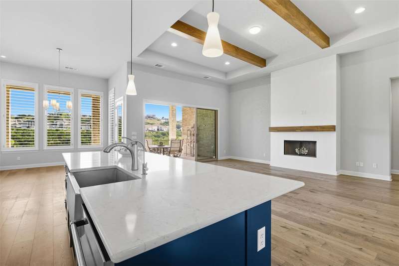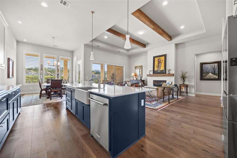 Sought after single story, one owner home meticulously cared for Lauren II floor plan built by Drees Homes. 4 bedrooms, 4 baths, game room, media and private study. This home is on a lot facing South West giving you morning sun and a shaded covered back patio to enjoy entertaining in the afternoons. This spectacular home offers a large kitchen with an equally large island open to the family room perfect for family gatherings with two dining areas, one private formal dining and an oversized breakfast area. The kitchen is complete with KitchenAid double ovens, 5 burner Schott Ceran electric cooktop, Bosch Refrigerator, KitchenAid dishwasher, butler's pantry and spacious walkin pantry. Beautiful laundry room with upgraded patterned tile floors. 100% brick, 3 car garage. Whole house water purifier, full gutters, plantation shutters, gas available on patio for grill, gas starter for fireplace. No back neighbor backs to canyon with wet weather creek(Sandy Creek). Enjoy Community Pools and parks offered in Travisso.