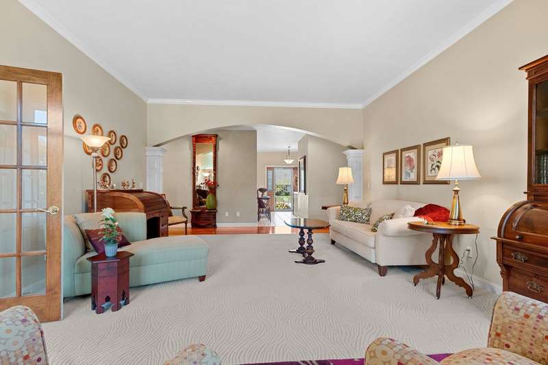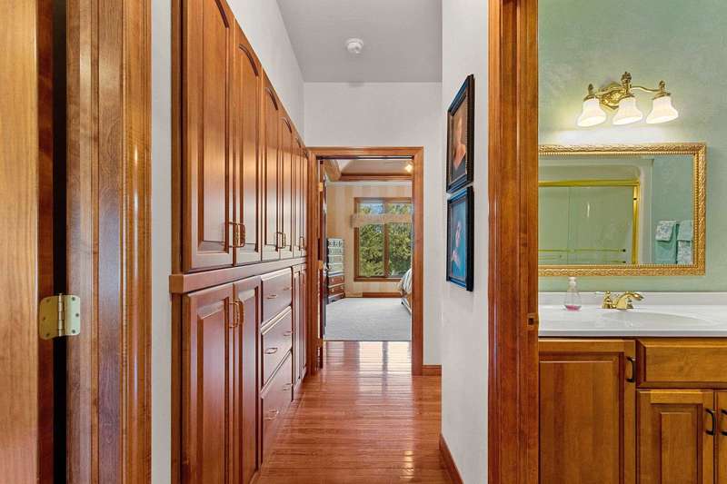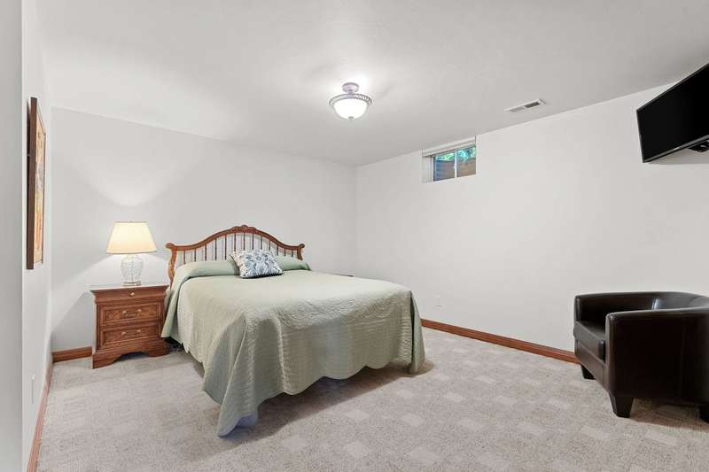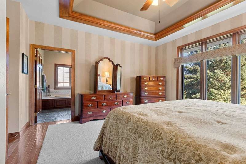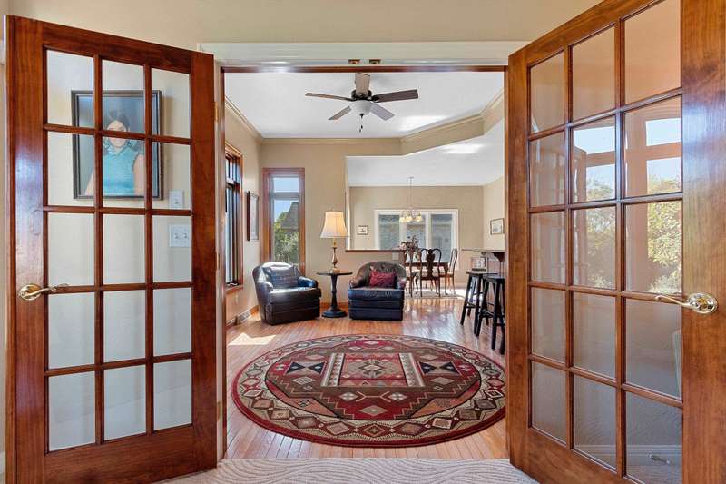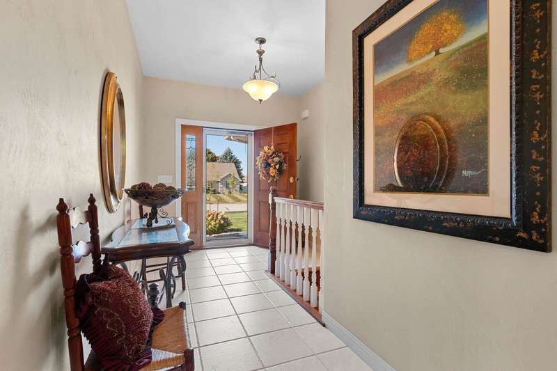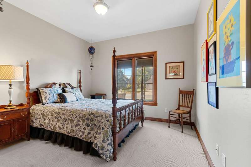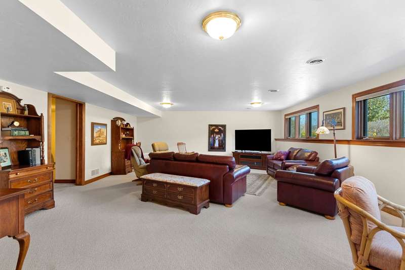 Spectacular custom ranch in a serene ravine setting! High-quality 3 bd, 3.5 bth home offers exceptional craftsmanship & thoughtful updates throughout. 3/4-brick exterior & stunning curb appeal set the tone for what’s inside. Enjoy major kitchen remodel featuring rsd pnl mpl cabinets, quartz c-tops, tile backsplash, cntr isl snack bar, all opening to cozy hearth rm w/cr molding & views of the beautiful over-1/2-acre ravine lot w/6 fruit trees. Living rm impresses w/10ft clgs & FP; primary suite boasts a tray clg, lrg cr molding, wk-in shwr, jetted tub & dbl sink vanity. Finished egress LL adds even more living space w/lrg rec rm, office/workout area, full bath. Adt’l highlights include 1st-flr lndry, some new windows & new ’23 roof. A spectacular, move-in-ready home with many more updates!