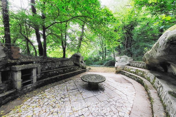 Tucked away around a corner, hidden from view, this private property is revealed, nestled in the heart of a magnificent wooded park of nearly 5 hectares. Here, nature reigns supreme. The trees and a few rocks typical of the Fontainebleau Forest offer a preserved setting, conducive to daydreaming as well as large-scale projects. This exceptional estate houses two independent houses to renovate, perfectly integrated into their environment, ideal for a main residence, a guest house or a shared living project. The main house, built in the 1970s on two levels, offers 228sqm of living space. From the entrance, a long corridor leads to large rooms bathed in light. The living room and dining room, with their comfortable proportions, invite conviviality. A second living room with a fireplace promises mild winter evenings. The separate, functional kitchen opens onto the outside. Two ground-level bedrooms, an office, a bathroom, two toilets, a laundry room, and a veranda opening onto the park complete this level. Upstairs, three additional bedrooms, a shower room, a separate toilet, and a large convertible attic offer even more beautiful perspectives. In the basement, a total compartmentalized space: a large garage, a boiler room, a cellar, and storage rooms. Ideal for accommodating a collection of vintage cars, or for creating a workshop, a gym, a wellness area, etc. The second single-story stone house offers 117sqm of living space. This detached house has a living room with a fireplace, four bedrooms, one of which has independent access, a bathroom, a shower room, and two toilets. A terrace extends the living space to the outdoors. The property also has 7 boxes, including 6 closed garages, perfect for exceptional vehicles, an independent workshop, and a cellar. A rare and confidential property, just a few minutes from Fontainebleau. ENERGY CLASS: F / CLIMATE CLASS: F Estimated average annual energy costs for standard use based on average energy prices indexed for the years 2021, 2022, and 2023, between EUR7,960 and EUR10,810.