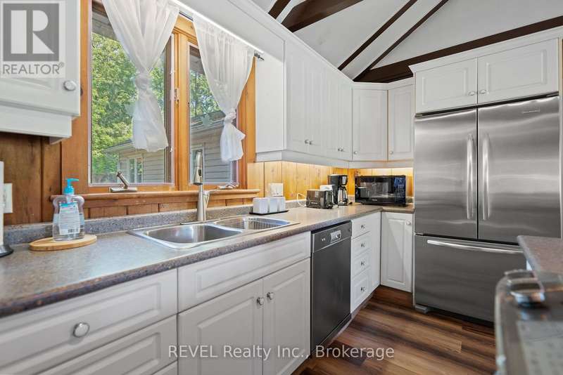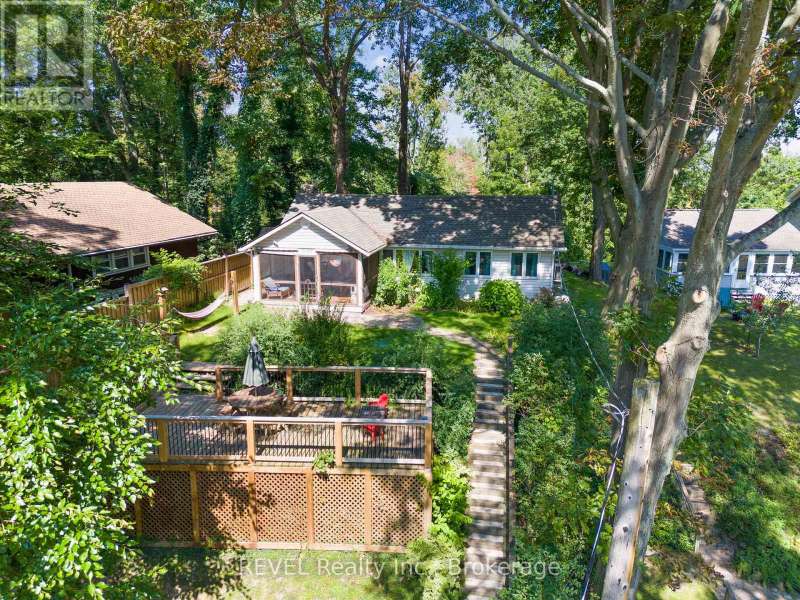 Tired of all that traffic to reach your cottage every weekend? Why don't you invest your time and money at Lake Erie. Welcome to this charming, three season cottage located at Silver Bay, on Lake Erie. Enjoy and escape to your get away on an elevated lot with deeded access to a private sandy beach. This three bedroom home is perfect for your own little getaway and also could be used as an income opportunity. Featuring a large open concept, kitchen, living and dining area with an enclosed porch. Relax and enjoy with access to a private sandy beach. This home has many features, including living room with a beautiful stone wood-burning fireplace and you will notice the vaulted ceilings in this open concept floor plan, also including new vinyl plank, flooring and newer appliances. It comes fully furnished with three bedrooms and one bathroom, and also has a large deck overlooking the lake to enjoy. Step outside and discover a quiet backyard with a flagstone walkway, fire pit and your own private outdoor shower overlooking a ravine, which gives you plenty of privacy, which is perfectly situated close to a path leading to a sandy beach with soft bottom making it ideal for families whether you're looking for a personal getaway or an income generating rental opportunity. The location is just 15 minute drive to the charming downtown areas of Port Colborne and Ridgeway where you will find many shops, boutiques and eateries.....additionally close to Sherkston, the Peace Bridge at Buffalo, the QEW, and Highway 406. Seasonal water is provided by Silver Bay Water Co. for approx. $400/year and Annual fees to the Silver Bay Landowners Association approx. $300/year (id:7434)
