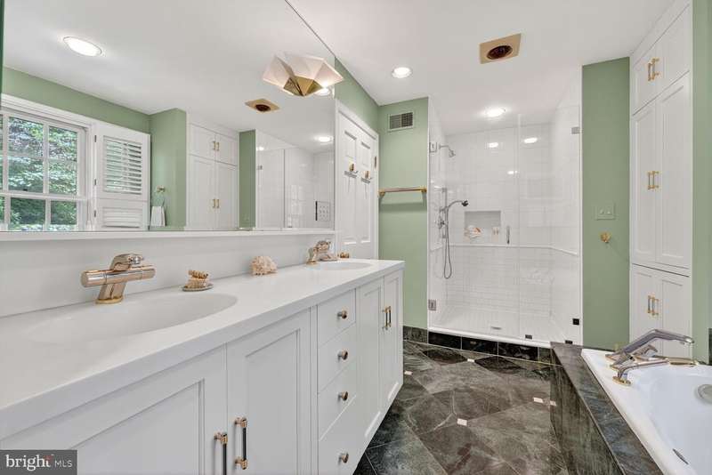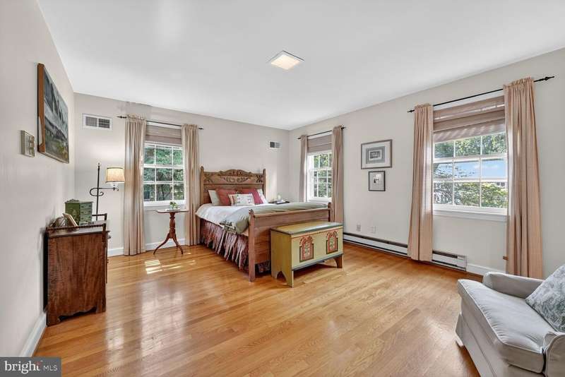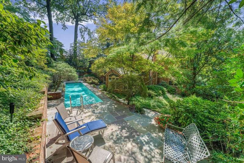 GREAT NEW PRICE ADJUSTMENT!! Fabulous opportunity to update and personalize this stately hillside home on a quiet drive in coveted Bannockburn Estates - an ideal property for entertaining on both a grand and intimate scale. The first level features a wide center-hall foyer, an elegant, embassy-sized living room, formal dining room, table-space kitchen, main-floor laundry, a large paneled family room with wet bar and powder room, plus a glass-enclosed sunroom with access to a flagstone patio, multi-level pool area and a wooded path with two more patios above. The second floor boasts four spacious bedrooms and three baths, including an expansive sitting area/office off the primary bedroom with built-ins and storage galore. The walk-out lower level offers a large paneled rec room, full bath and bonus room. With more than 6600 sf of living space, three fireplaces, slate & copper roofing, lush grounds, a double garage, extensive hardscaping, exterior lighting, an in-ground sprinkler system and more, all on a 20,000+ sf lot, this property is truly an oasis to call home.