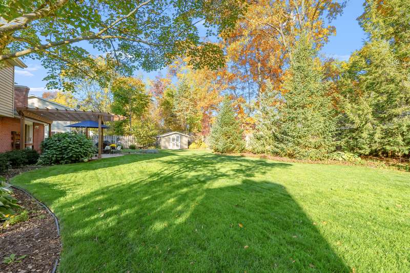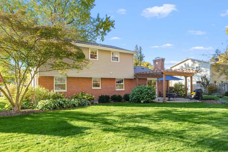 Every detail of this beautifully updated home reflects care, quality & timeless style. With nearly 3,000 sqft of finished living space, it features a granite kitchen w/ maple cabinetry, stone backsplash, pantry & stainless appliances. The main level offers two inviting living areas & formal dining room w/ hardwood flooring. The family room showcases Chelsea-plank hardwood floors w/ fireplace & slider to patio, while the living room features hardwood beneath the carpet. Upstairs, all bedrooms have hardwood floors w/ two currently carpeted for added comfort. Updated baths, large windows & tasteful finishes enhance the home's character throughout. A finished basement provides flex space for recreation & potential 5th bedroom w/ full bath. Step outside to a ''wow'' yard-lush garden beds, flowering trees, brick patio & pergola surrounded by gorgeous landscaping in a fully fenced setting. Optional pool membership, top-rated schools & nearby access to the Portage bike path. Move-in ready.