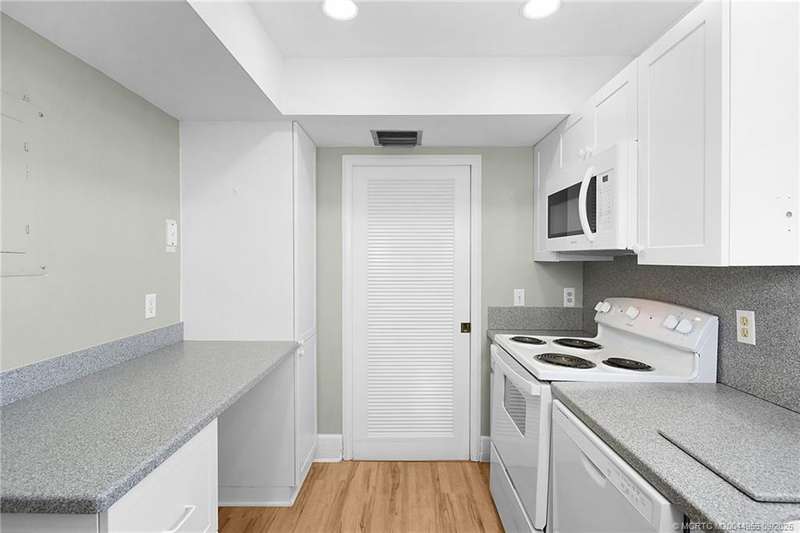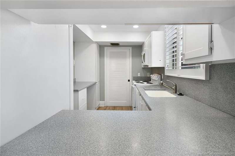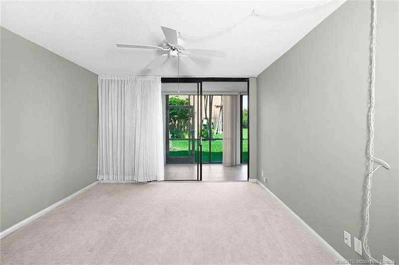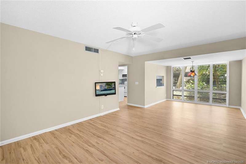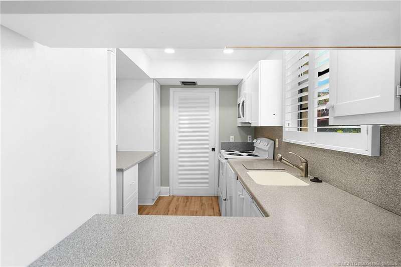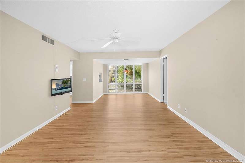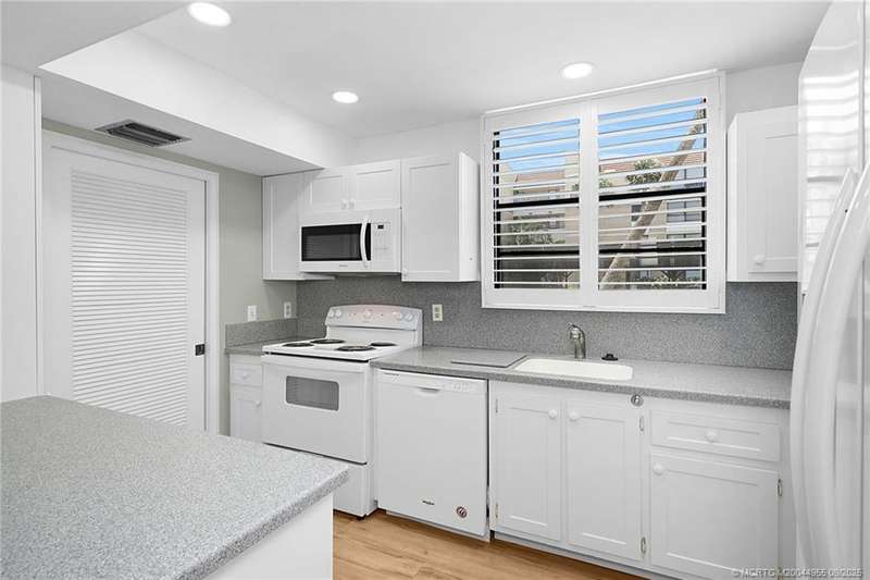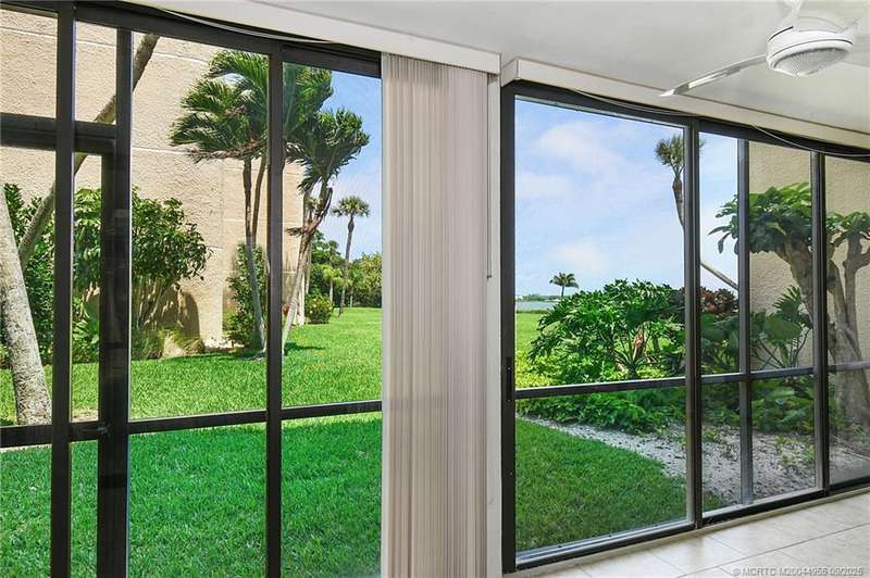Discover the serene riverside lifestyle you've been dreaming of with this 2-bedroom, 2-bathroom corner unit condo, ideally situated on the first floor. Revel in breathtaking water views from the comfort of your condo, amplified by a host of amenities designed for an active and engaging community. Enjoy friendly rounds of pickle ball, tennis, or indulge in some tranquil fishing, all just a half-mile journey from the pristine beach. The heart of the community, the clubhouse, welcomes you with a well-stocked library, pool table, fitness center, full kitchen, and ample space for hosting events. Outside, two sparkling pools beckon for a refreshing dip, while a picturesque walking path along the river provides a serene escape into nature. Inside your new condo, modern living awaits with an updated kitchen featuring efficient LED lighting, and sleek plantation shutters. Your private lanai invites you to step out and immerse yourself in the riverside ambiance.