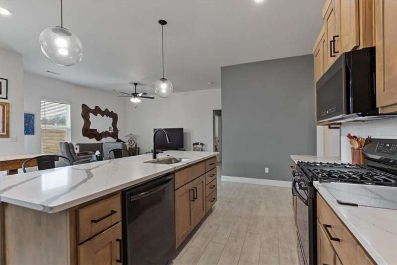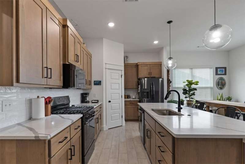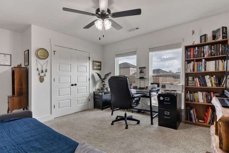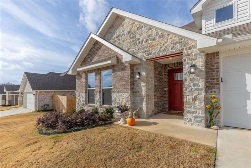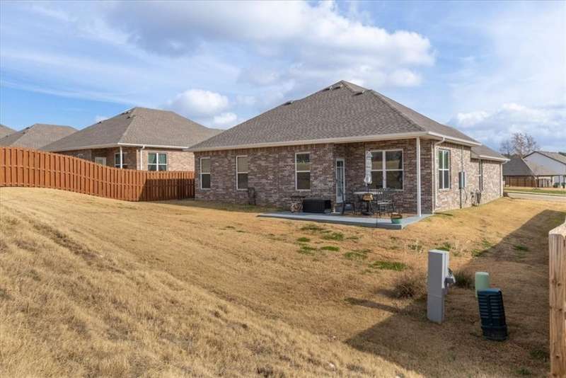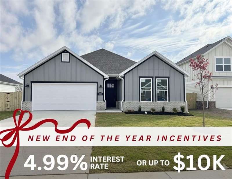 Here is where you get the extras! Additional value with extended patio, sprinklers, landscaping, blinds, matching fridge, & automatic whole house emergency generator! Craftsmanship throughout this Shuber Mitchell build with no other home directly in front of you, giving you a beautiful view of the neighborhood & tree line on the horizon. 10ft ceilings in your open concept living space. Your kitchen has gorgeous quartz countertops, & a walk-in pantry. Plus, a matching high-end appliance package including a gas range, & the refrigerator stays! Your split floor plan has two large bedrooms at the front of your home, & your spacious primary bedroom in the rear, complete with dual walk-in closets. Your front yard has been upgraded with sprinklers & professional landscaping, & your back patio has been extended. An automatic whole house generator has been added, giving you peace of mind for you & your family. Don't miss your opportunity to be here in the heart of NWA, where the growth is thriving & quality of living rules.