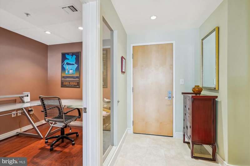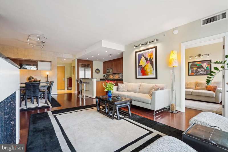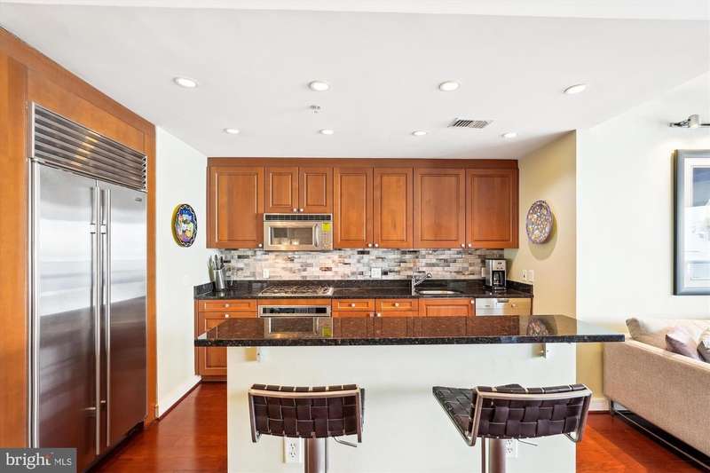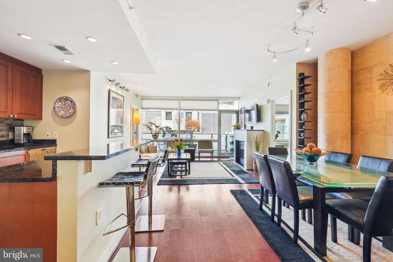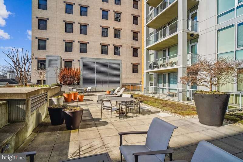 Welcome to The ADAGIO, a luxurious boutique condominium where elegance and functionality merge in the heart of Bethesda! Featuring expansive outdoor space, this exceptional 2 Bedroom/Den, 2.5 Bath condo is truly a rare find! Entertain your family & friends on the spacious patio that includes a gated access to the adjacent Community Terrace, complete with beautiful gardens and ample seating. This unique 2nd floor unit is one of only four condos in the building to have direct access to the Community Terrace on the back side of the building where you can absorb the tranquility of nature. Lovingly cared for and updated by the original owner, this condo features floor to ceiling windows, a dreamy Chef's Kitchen with top-of-the line stainless steel appliances, Poggenpohl cabinets, granite countertops, glass block backsplash and breakfast bar complete with bar stools that convey. An inviting and airy living room and dining room combination seamlessly flows from the open kitchen to the entire wall of windows with a peaceful view of the spacious terrace. The gas fireplace serves as a focal point of the living area, offering both beauty and ease. The Owner's Suite showcases 3 custom closets, ceiling fan, Marble En-Suite bath with separate shower, soaking tub, double vanity with granite countertop and private water closet. The second bedroom suite offers multiple closets, full bath with large ceramic shower and a single vanity with granite countertop. A thoughtfully situated Den/Office is located just off the marble foyer ensuring privacy & seclusion, as well as access to the powder room and private laundry room with full size washer/dryer. Conveniently located on the 2nd floor close to the mail room, 24 hour fitness center, a guest suite which cost only $100/per night and the management office. The recent renovations to the Adagio Lobby and hallways radiate a contemporary sense of sophistication and style. This lovely unit conveys with two separately deed parking spaces B5 -28 & B5- 29 (not tandem) and a storage closet located at B5- #1. Enjoy the perfect blend of urban convenience and the serenity of nature at your doorstep. Trader Joe's is located across the street for groceries and explore the many restaurants, shopping areas and nightlife of Bethesda that are just a blocks away. Very conveniently located near the Capital Crescent Trail for walking, jogging, cycling in nature. Friendship Heights/Chevy Chase is only a mile away and another vibrant city to explore.