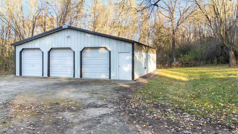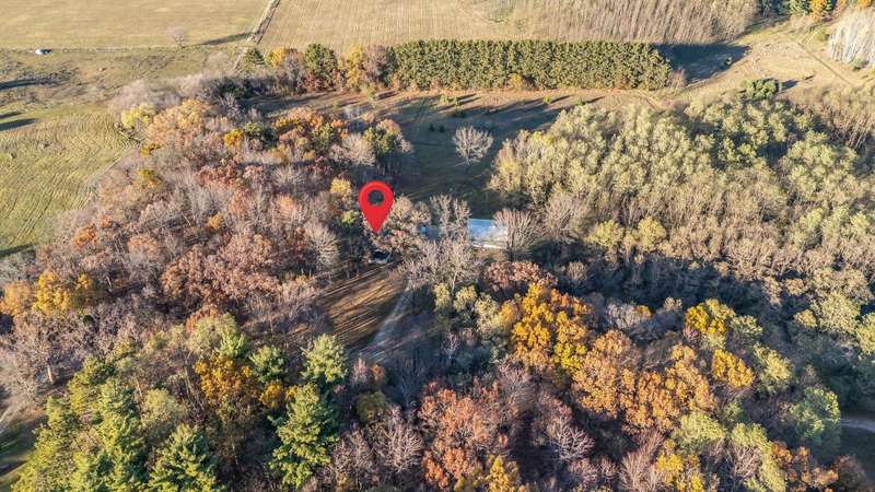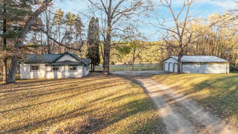 Peace and serenity await you! Enjoy country living on 9 acres of land in scenic Waushara County. You'll love the large, country kitchen, cozy living room and family room/office area. Bath has been updated. Bedrooms have great closet space. The back porch could be converted into additional living space. Full basement with lots of storage. Electrical has breakers but may need some updating. Huge storage building can house cars, boats and recreational toys. The shed has additional storage. Steel roof on home. Professional photos added on 11/4/25