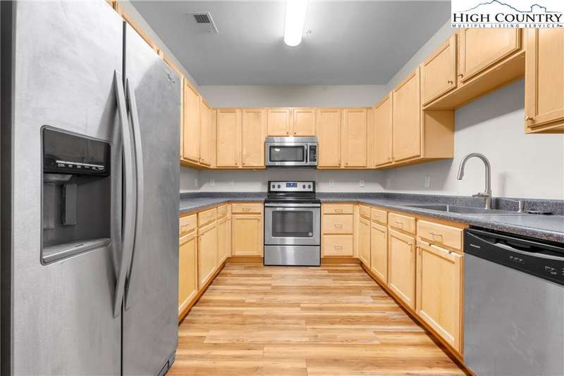 This well-maintained, first-floor condo offers the exquisite blend of comfort and convenience with its functional layout and low-maintenance lifestyle. Ideally situated with easy access to the heart of Boone, Appalachian State University, and a nearby AppalCart stop, you'll be just minutes from local shopping, outdoor activities, and all the vibrant amenities the area has to offer.Step inside to find luxury vinyl plank (LVP) flooring throughout, creating a sleek, modern feel. The spacious foyer leads to a seamless open floor plan, where the dining and living areas flow effortlessly together to a kitchen with ample storage. The condo features two generously sized bedrooms, each with convenient access to a full bathroom. The primary bedroom boasts its own en-suite bath and a large walk-in closet, offering both privacy and space.Enjoy the outdoors from your own patio, just off the main living area ? an impeccable spot for relaxing and watching the sunset. The building also includes a fenced-in dog park, great for pet lovers, as well as a spacious parking lot for added convenience. Whether you're seeking a comfortable place to call home or a convenient investment property, this condo offers a welcoming living experience in an unbeatable location.Broker Interest