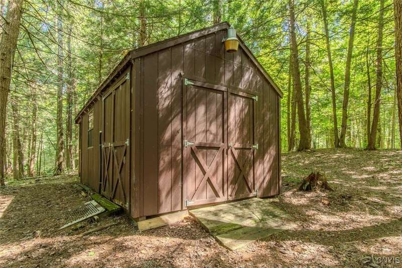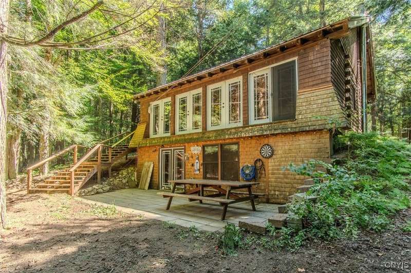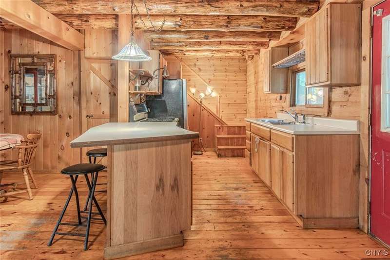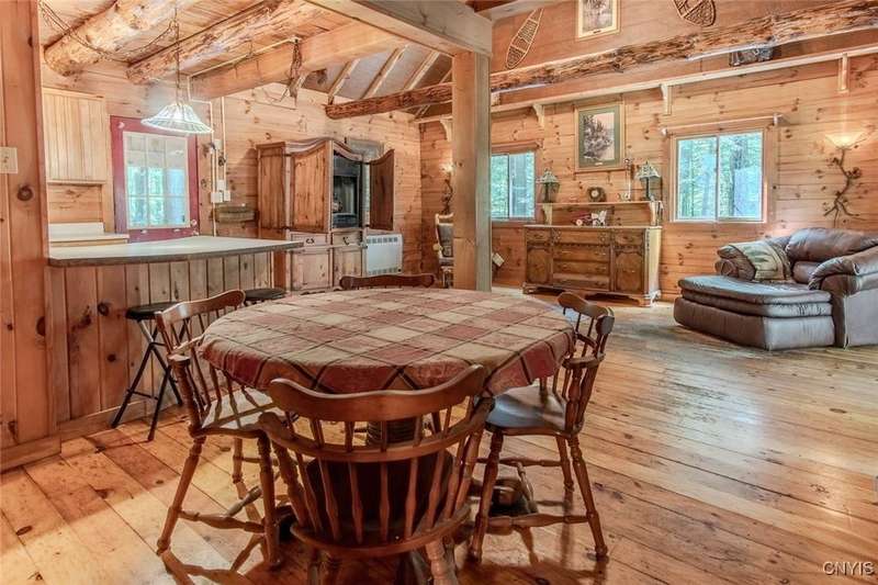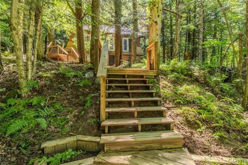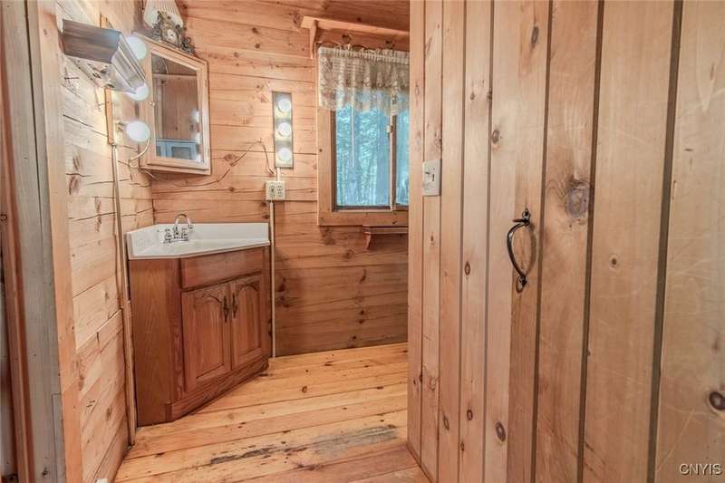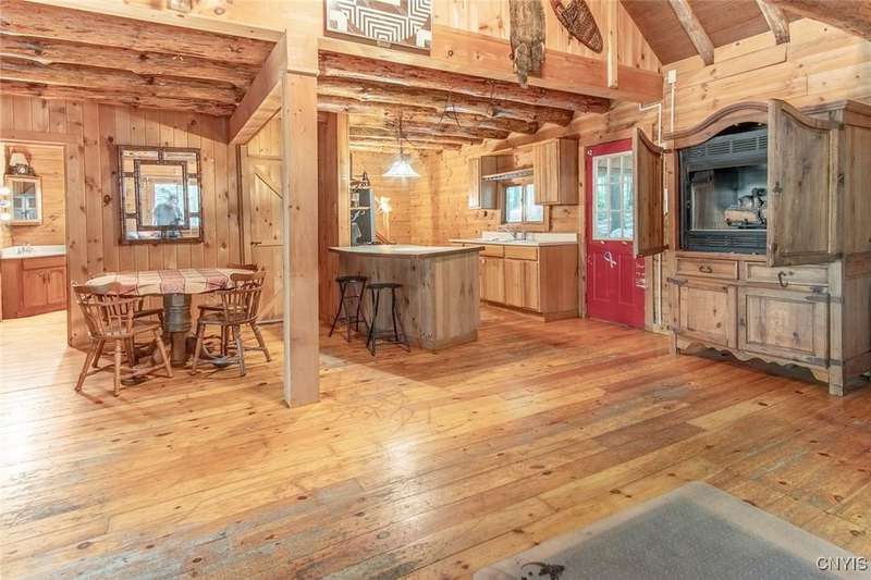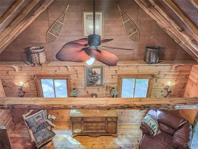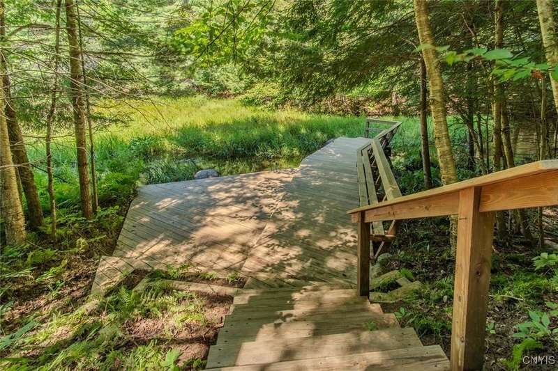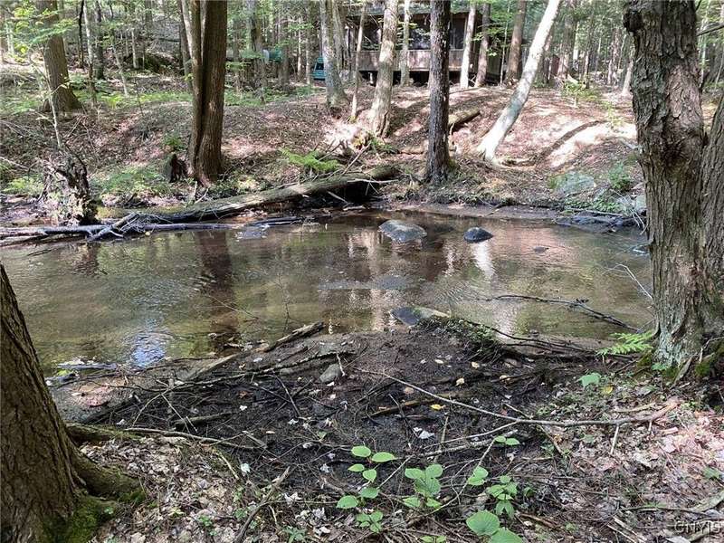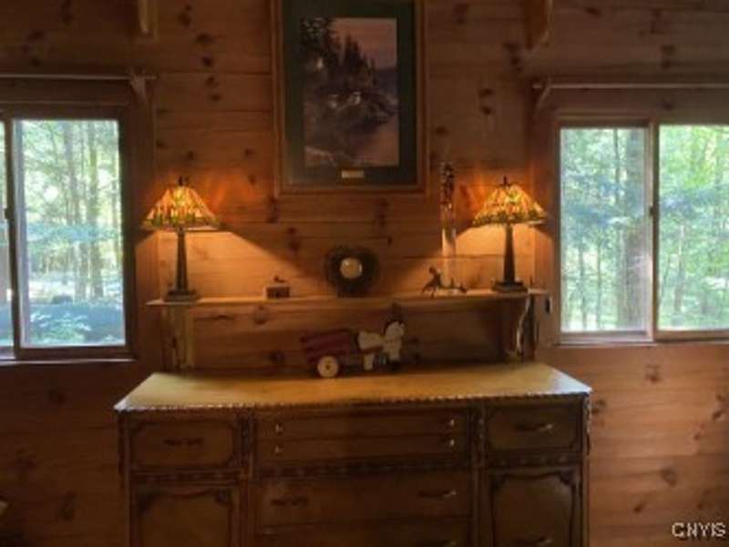 Discover the perfect blend of rustic charm and modern comfort in this stunning log home tucked away in the woods, complete with a separate guest outbuilding. Whether you're looking for a peaceful retreat or a year-round residence, this property offers the privacy, beauty, and tranquility you've been dreaming of.Just minutes from both the Adirondack Park and Tug Hill, you'll have easy access to year-round recreation and natural beauty. Enjoy endless outdoor adventure with direct access to miles of snowmobile, ATV, and horseback riding trails all found nearby. Spend your days exploring nearby Chase Lake, Brantingham Lake, Otter Creek State Forest, and the Independence & Black Rivers, or the dramatic Whetstone Gulf?each offering its own unique charm and outdoor experiences.Step out onto the spacious wood deck overlooking a serene pond and stream, where you can relax to the sound of rushing water and birdsong. Inside, the open-concept kitchen features a breakfast bar and flows seamlessly into the expansive living area, highlighted by a vaulted ceiling and exposed log beams. With a wood stove added to the electric and propane heating systems, this home stays warm and inviting all winter long, making it truly enjoyable in every season.The full walk-out basement provides plenty of room to expand?ideal for creating additional sleeping quarters, a workshop, or additional entertaining space. The property also includes a cozy, furnished outbuilding for guests or hobbies. While the property feels private and tucked away, you're never far from convenience. The nearby towns of Lowville and Lyons Falls provide shopping and dining so you can enjoy both the quiet of the woods and the comforts of community.The road name says it best?you'll want to linger long at this one-of-a-kind log home. Don't miss the chance to experience it for yourself. Call today to schedule a showing!