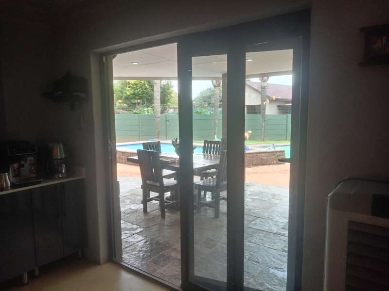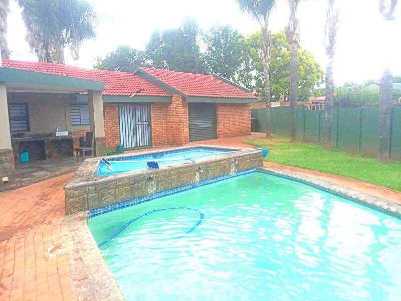 Step into this stunning face-brick/ and plaster home, designed for elegance and low-maintenance living. The home boasts 3 spacious bedrooms, including air-conditioned in main bedroom, with open plan an suit, ample cupboard space The heart of the home is the beautiful kitchen, featuring exquisite finishes, gas stove as well as modern aga stove abundant cupboard space. The bedrooms overlooking the lush garden. Enjoy indoor leisure in the TV room with a bar and Jacuzzi A landscaped garden, built-in fountain, and included blinds enhance the home’s charm. Additional features like a guest toilet and full laundry add to its practicality. Fitted with a Jet master, and wood stove to warm the whole house, also an anthracite stove Store room Servant’s room with shower and toilet Nestled in a secure boomed-off area, this property ensures peace of mind for families. It’s perfect for entertaining with its pizza oven and braai, creating a haven for social gatherings. The large patio fitted with basins and tabletops for preparing and serving, unwinding indoors hosting friends, as well as outdoors, this home delivers sophistication and comfort for modern living. 2 garages and enough parking space The large pool also fitted with a separate Jacuzzi will make you feel like holiday at your home The house is also fitted with Alarm Solar panels with an invertor. Please visit this lovely home to see the full picture