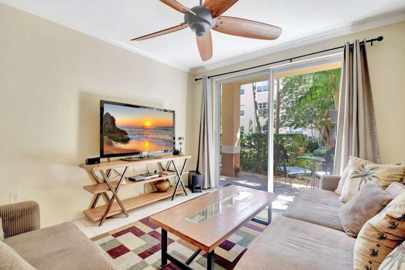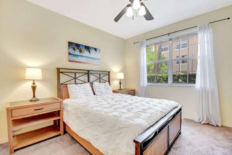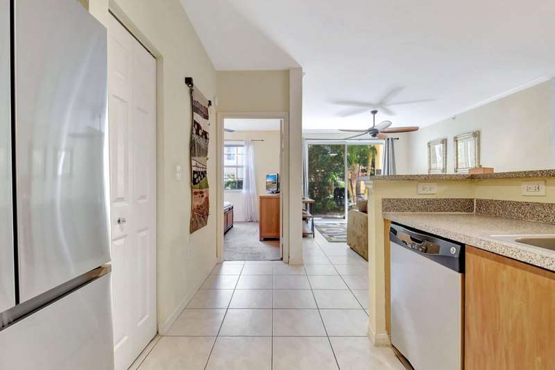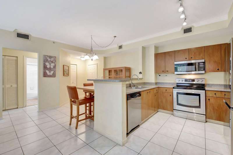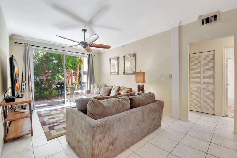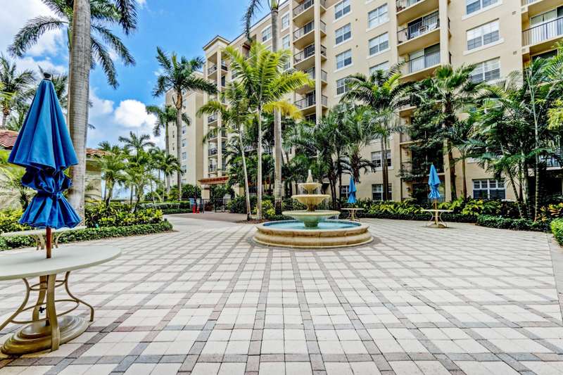 Investors Welcome- this unit can be rented right away and is sold furnished so you can start generating income! Luxurious resort style living awaits in this upscale gated community ideally located along the Intracoastal Waterway. This inviting first floor condo features a split bedroom floor plan, lush private patio, an open concept living/kitchen area, 2 bedrooms, 2 full baths, full size washer/dryer & 2 garage parking spaces. New AC & WH installed 2024! Minutes to the beach, downtown West Palm Beach, Palm Beach Island & convenient to PBI Airport, this deluxe all ages community offers concierge, 24 hour security, Olympic size pool with water views, party pavilion, fitness studio, sauna, clubroom, billiards, business center, grill plaza & dog park! 30 day rentals allowed.